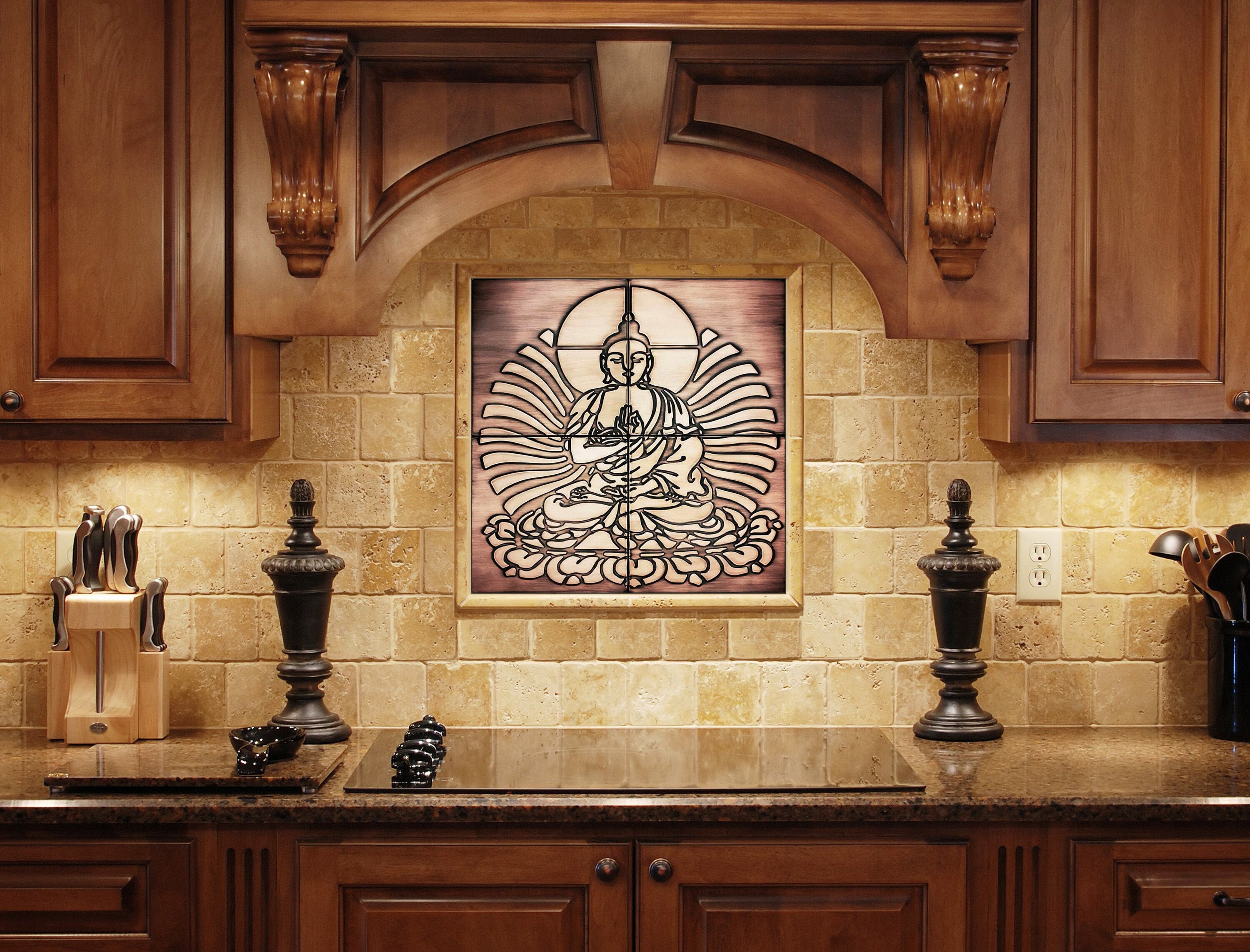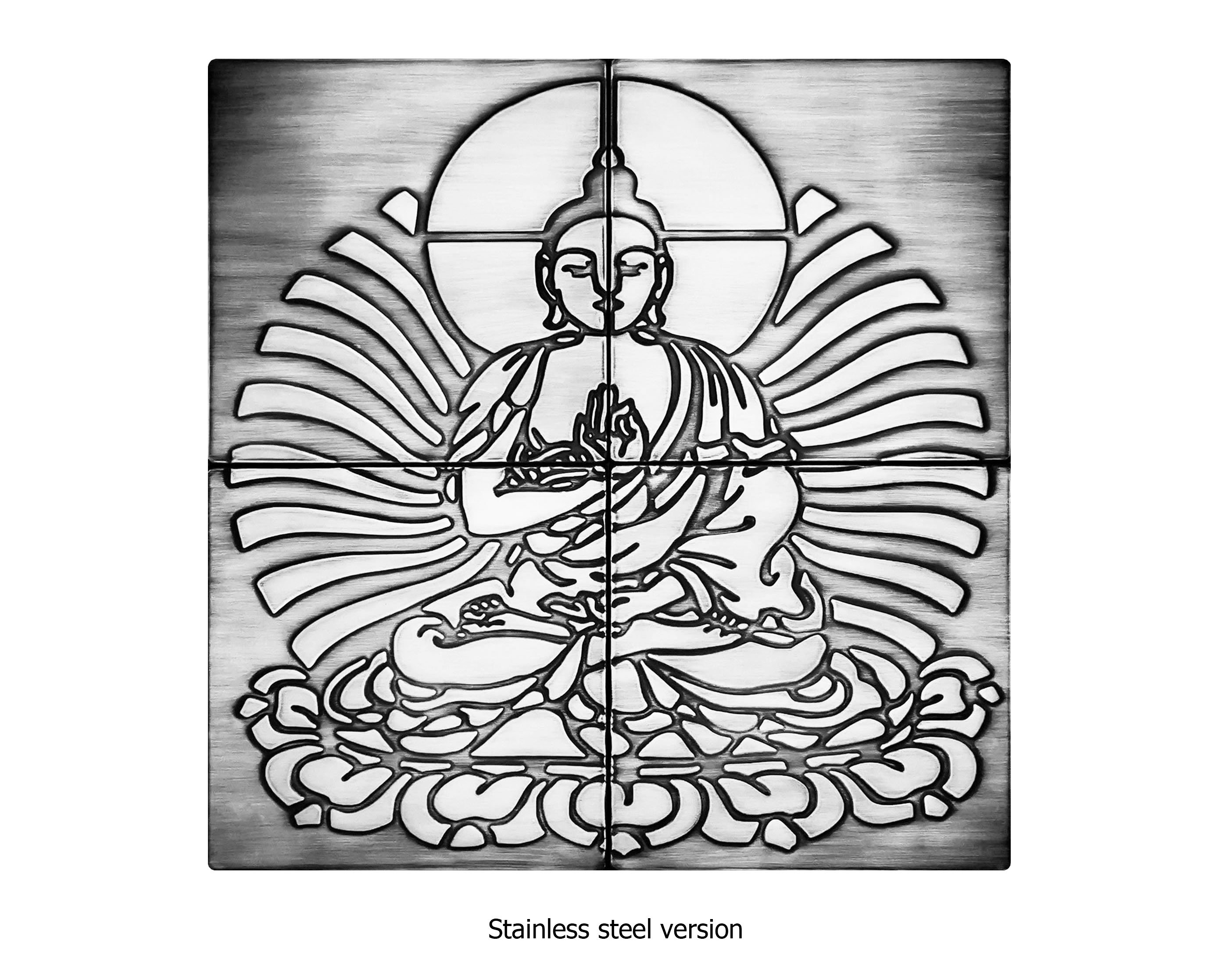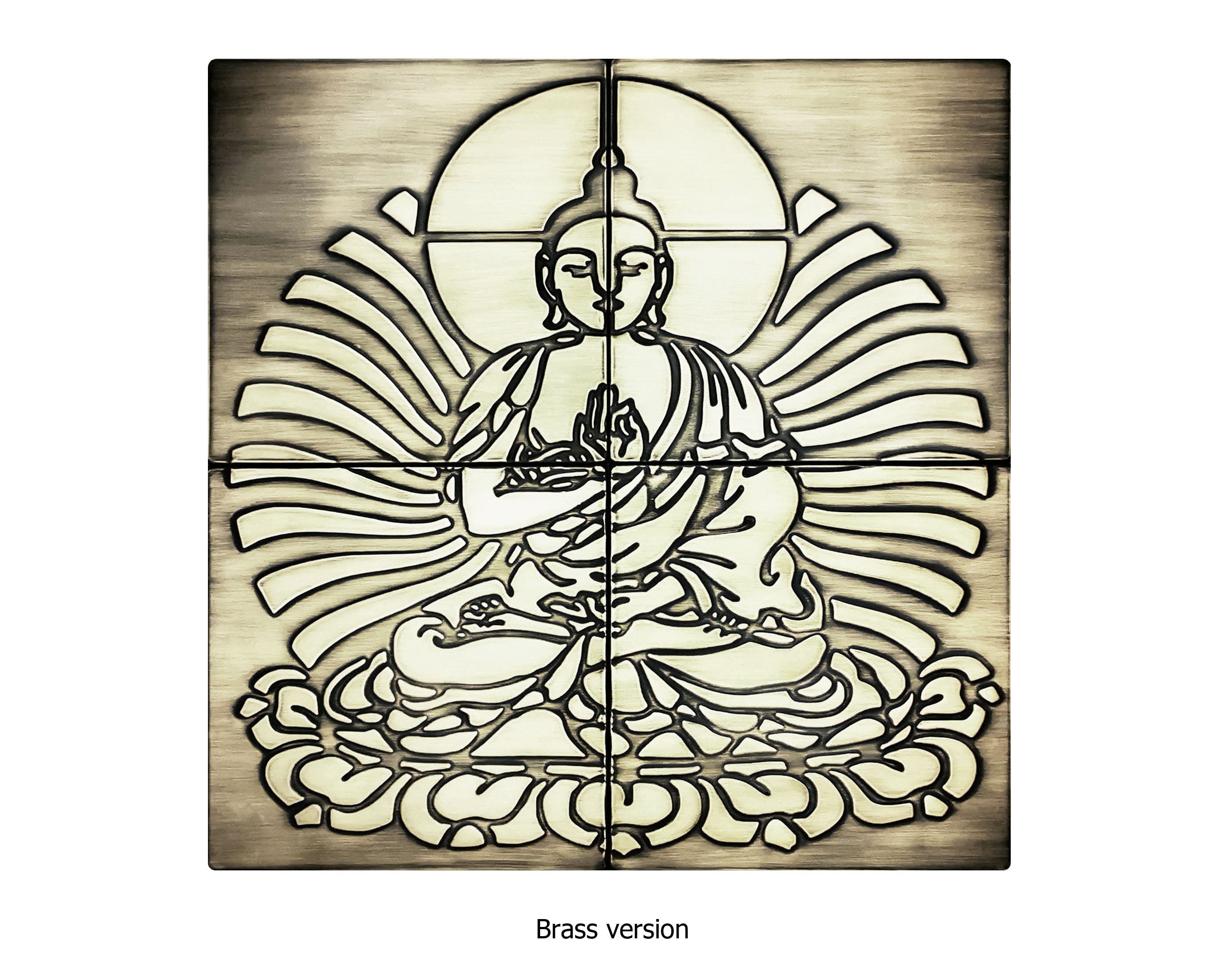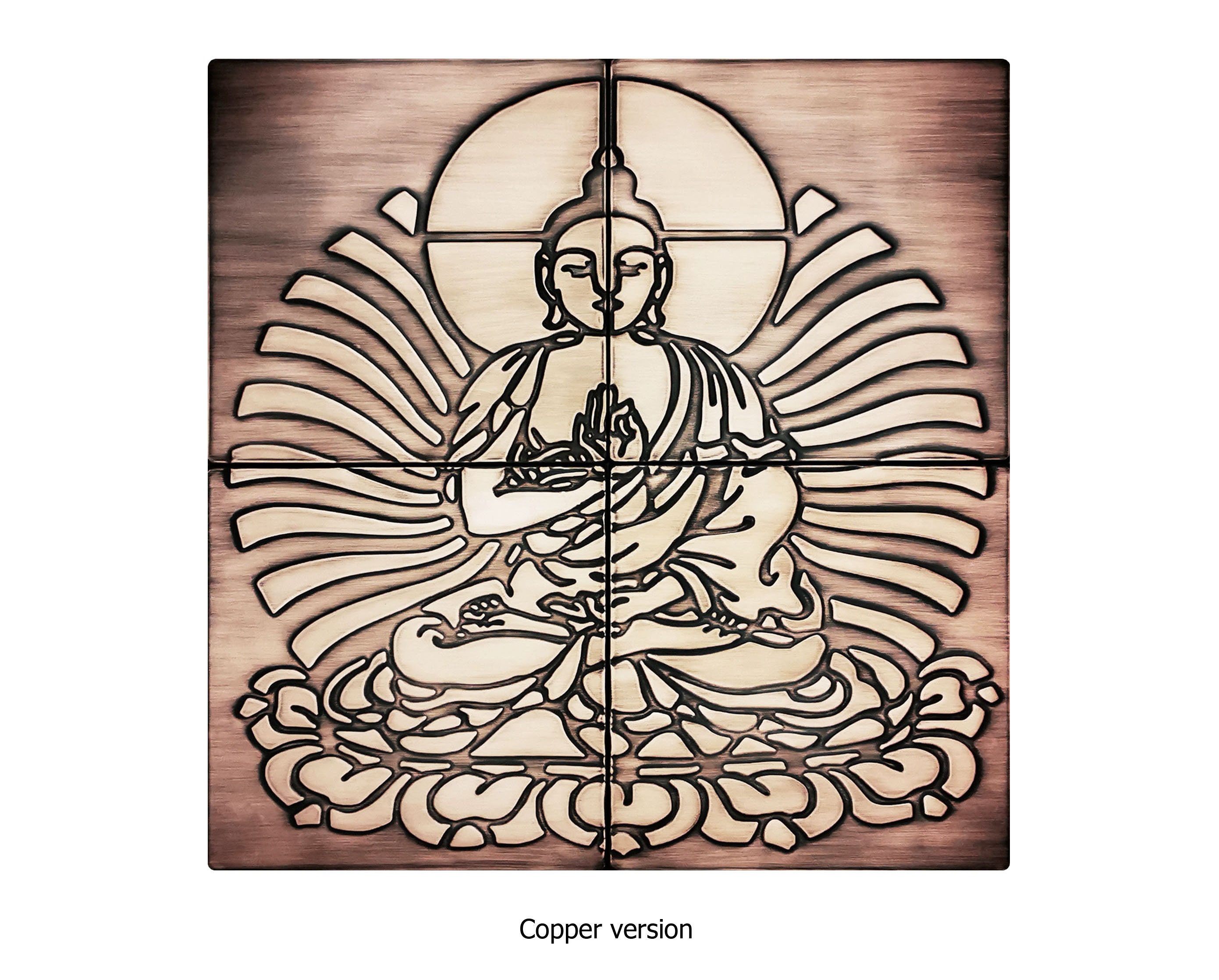 Buddha - Set of 4 Handmade tiles - 100% Brass, Copper or Stainless Steel.