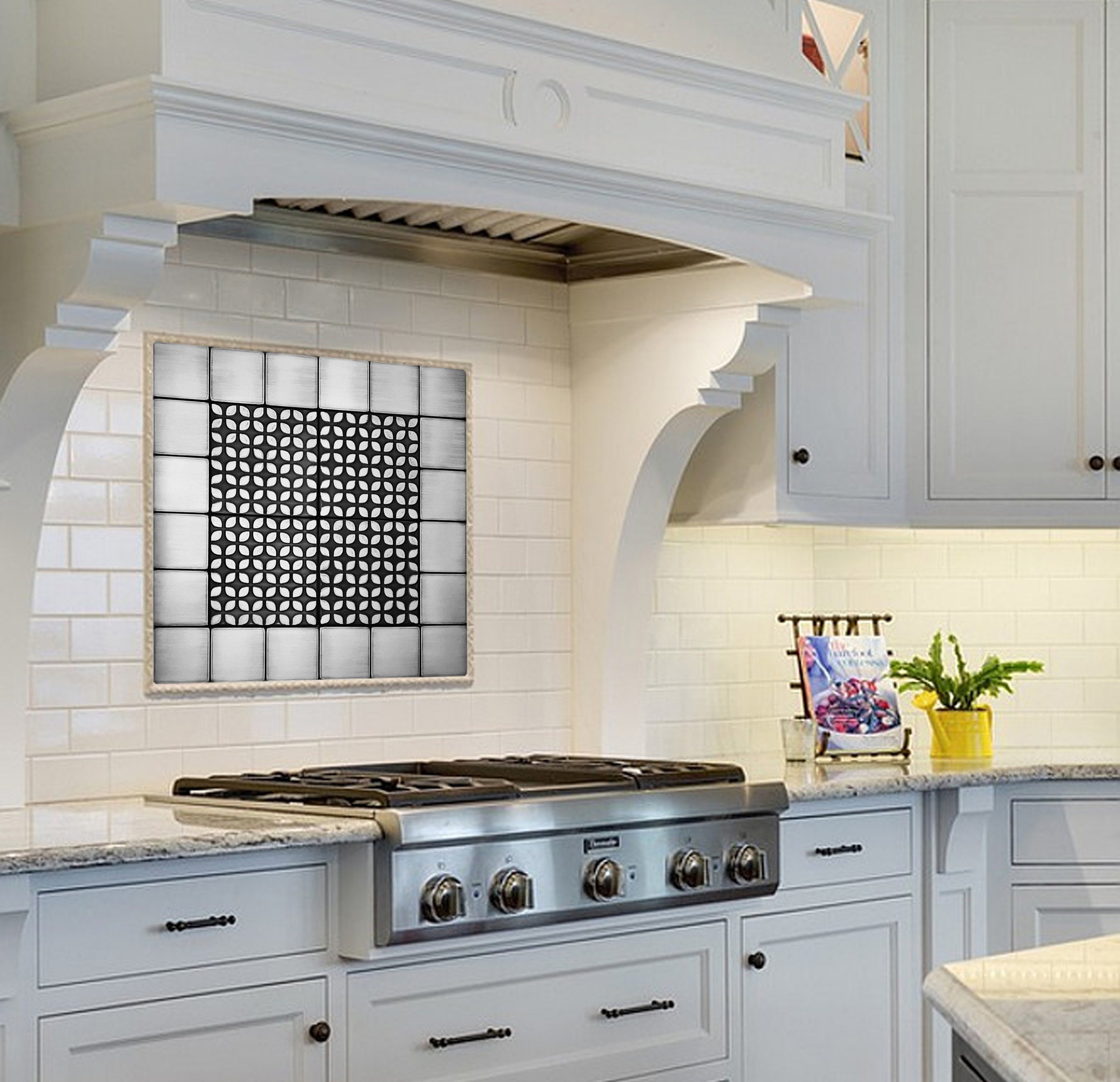 A beautiful, mosaic backsplash - Set of 24 Handmade tiles - 100% Copper, Stainless Steel or Brass.