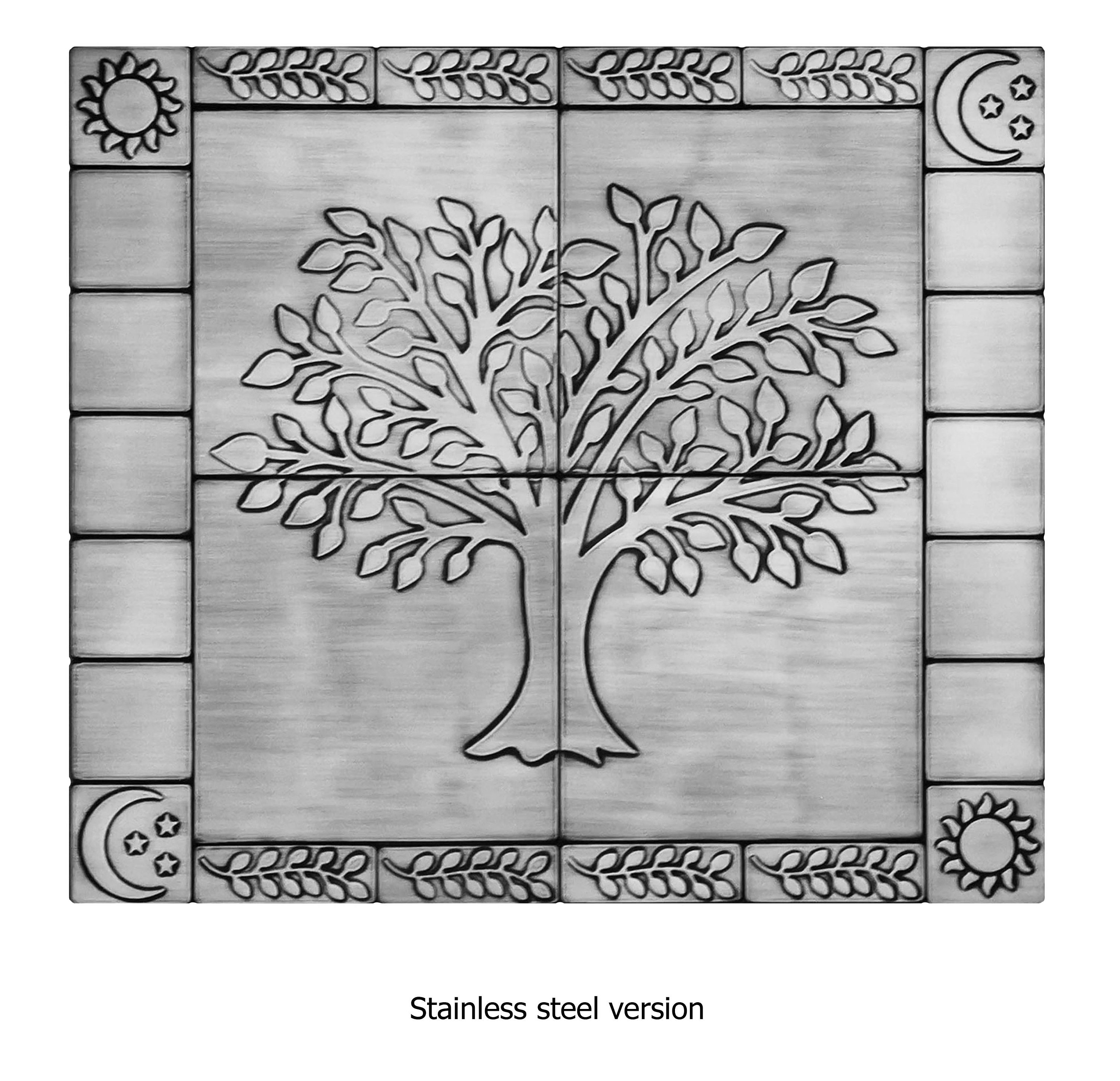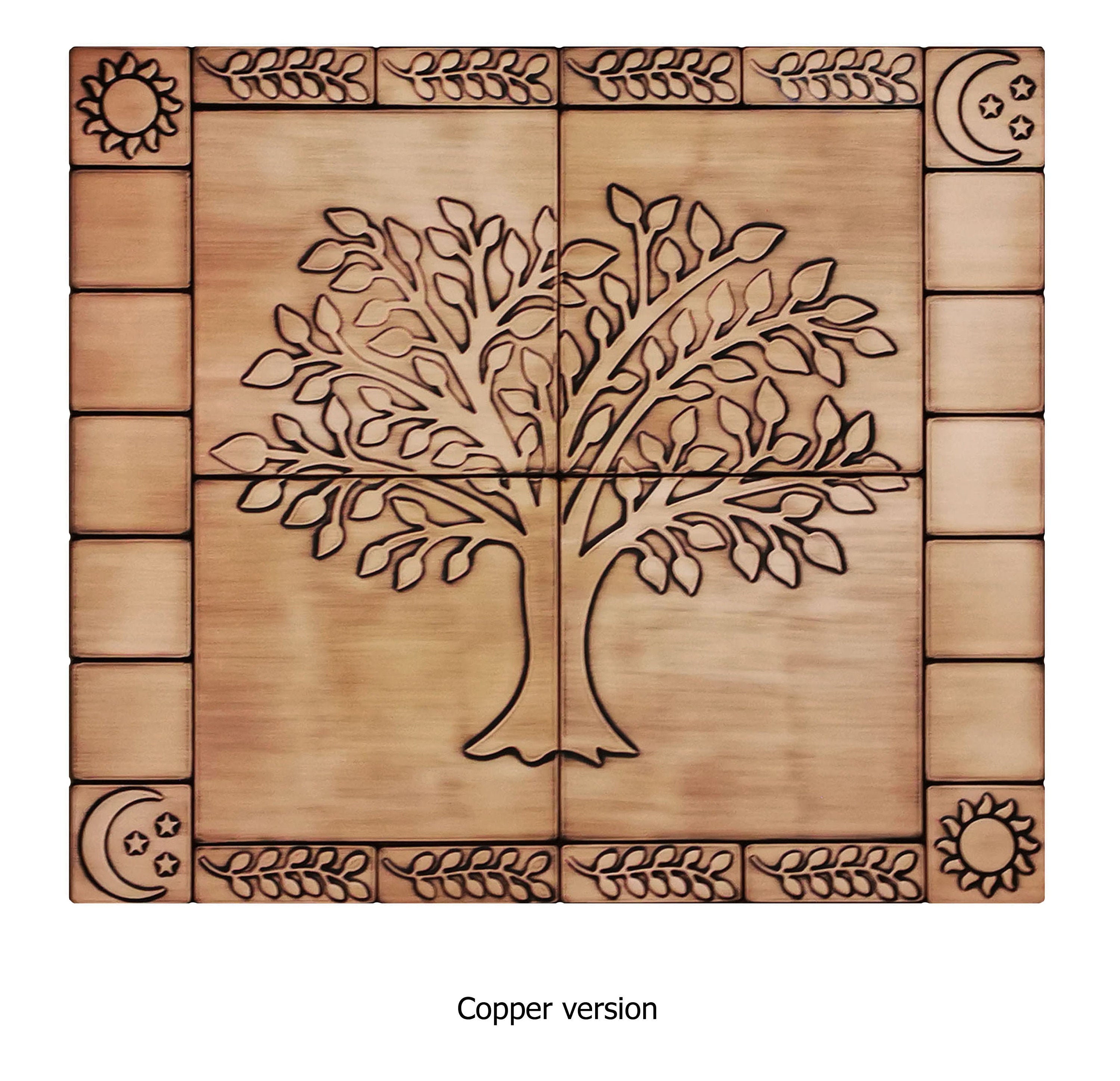 Beautiful Tree of life with olive branches, sun and moon, Set of 27 Handmade tiles - 100% Copper, Stainless Steel or Brass