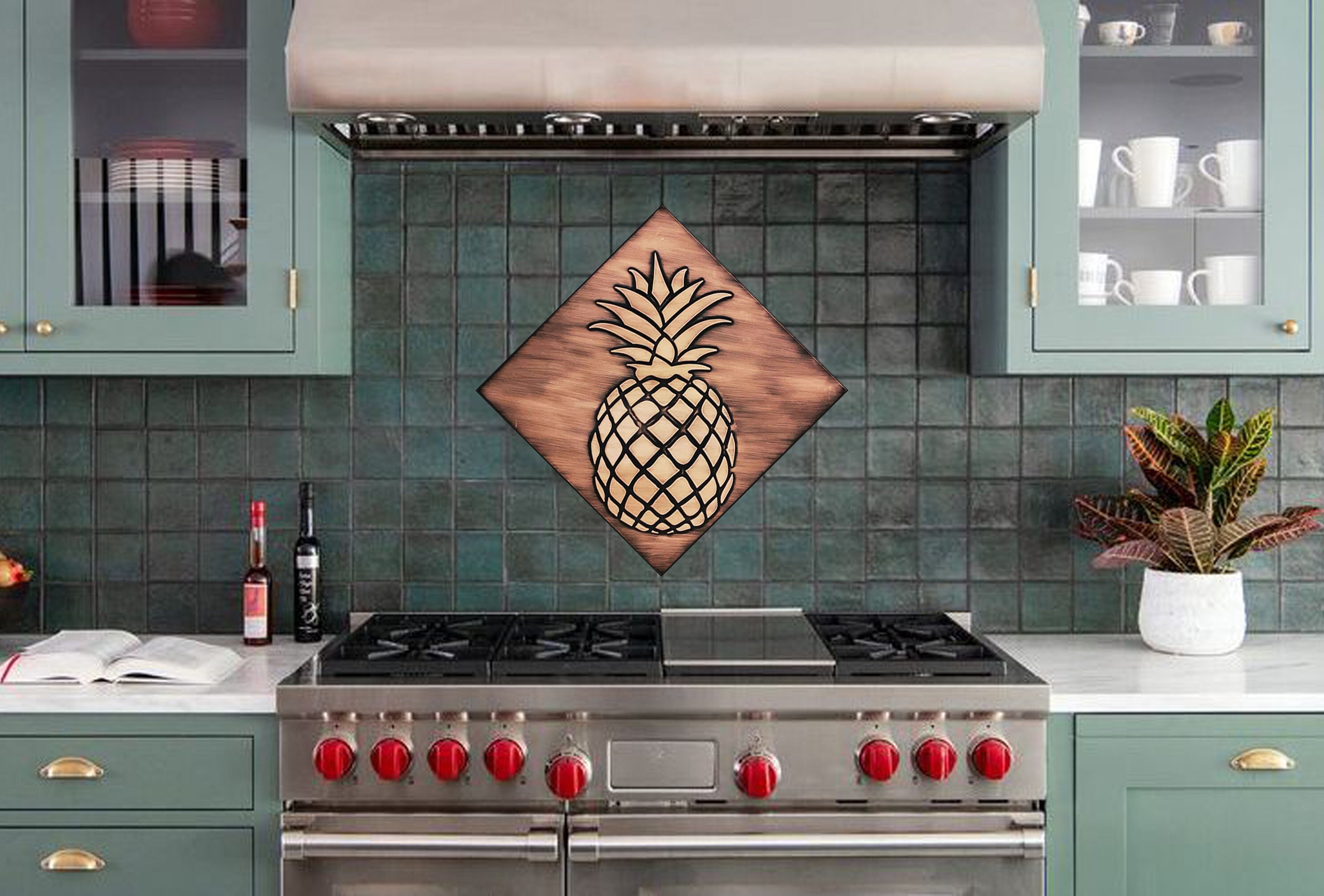 Designed to be mounted diagonally, this tile adds a unique spin to traditional decor, ensuring that the pineapple's charm is displayed prominently and elegantly.