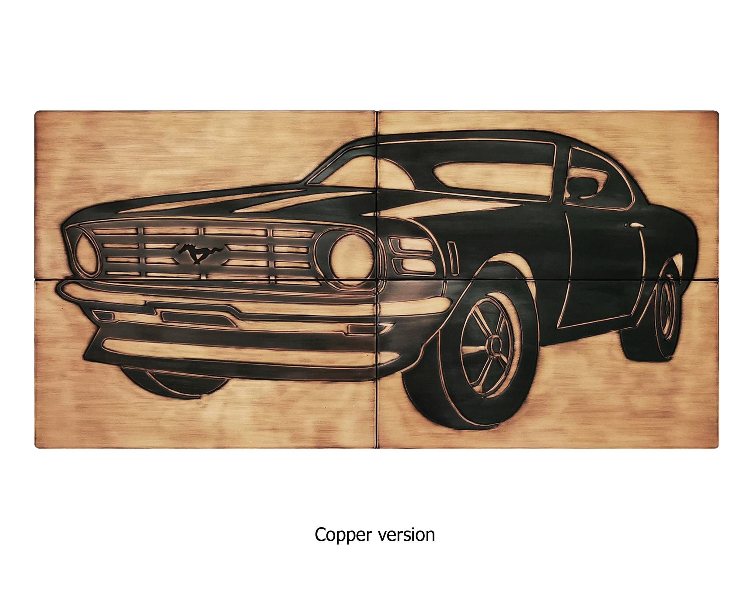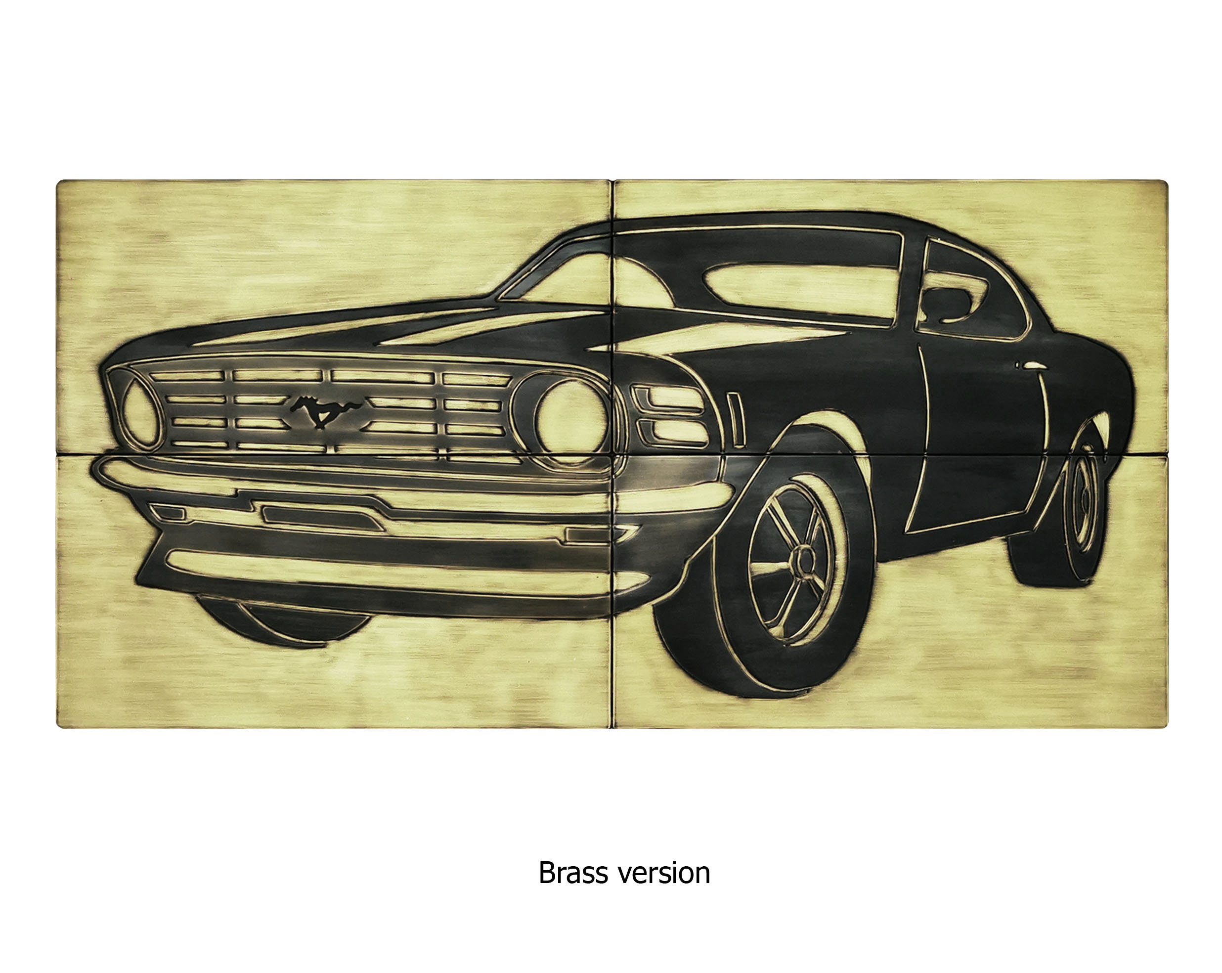 Ford mustang - Set of 4 Handmade tiles - 100% Brass, Copper or Stainless Steel. The perfect decor for Mustang Lovers