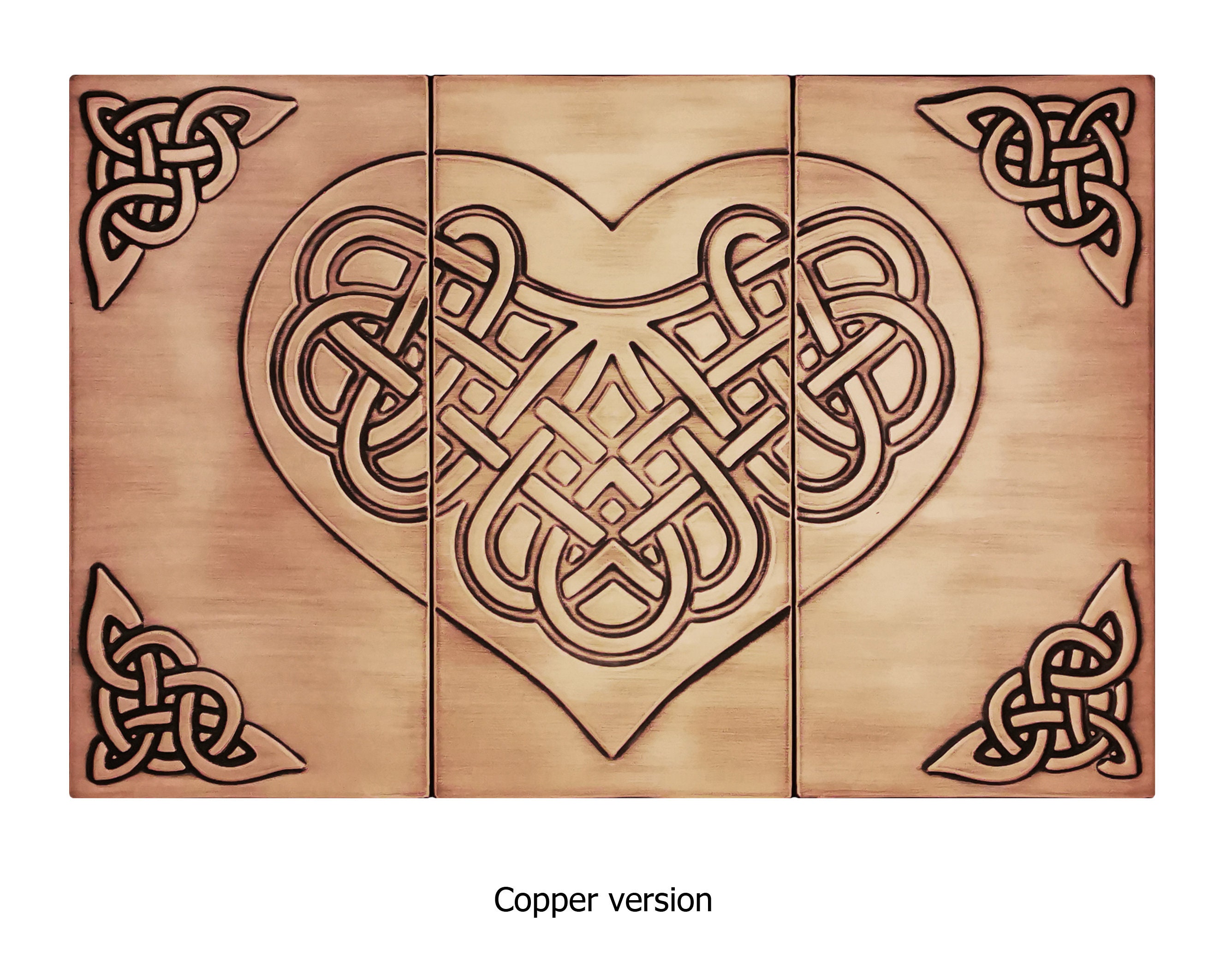 Beautiful celtic heart on 3 tiles. Available in 3 sizes. 100% Copper, Stainless Steel or Brass.