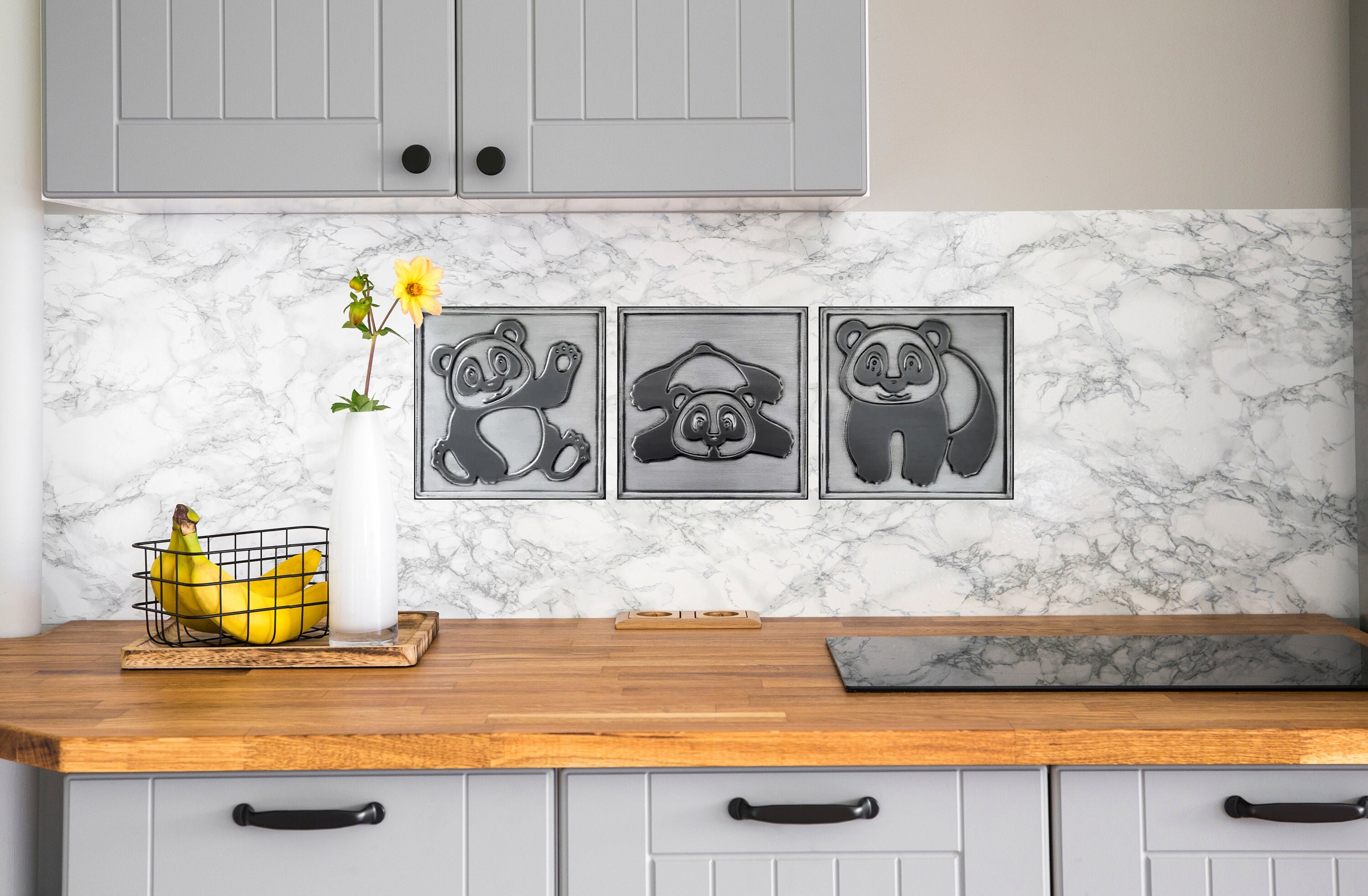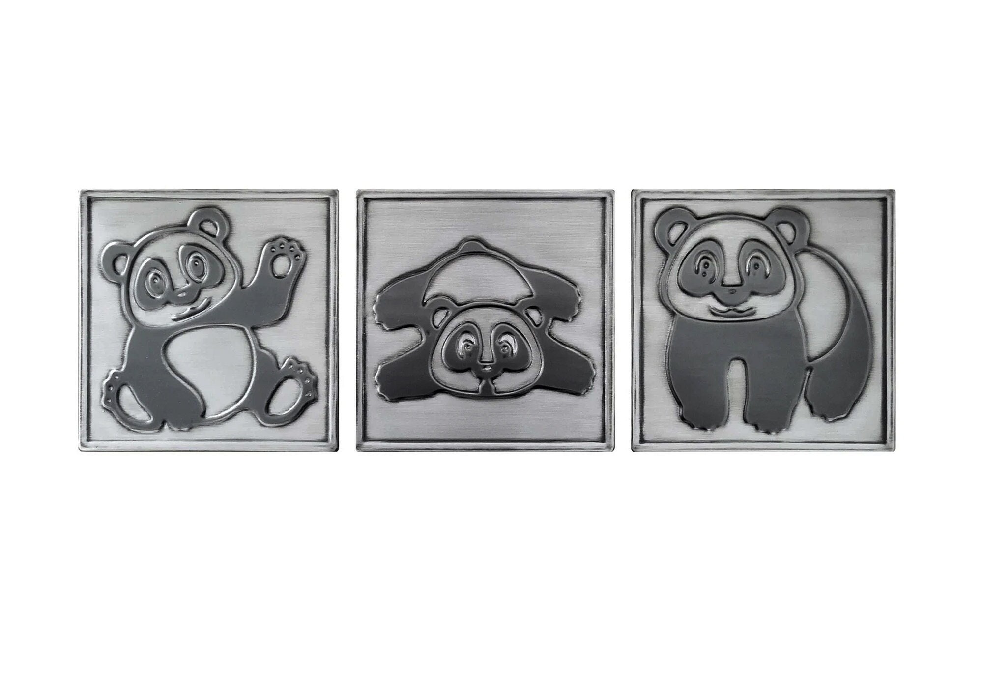 Cute pandas - Set of 3 Handmade tiles,- Copper, Brass or Stainless Steel.