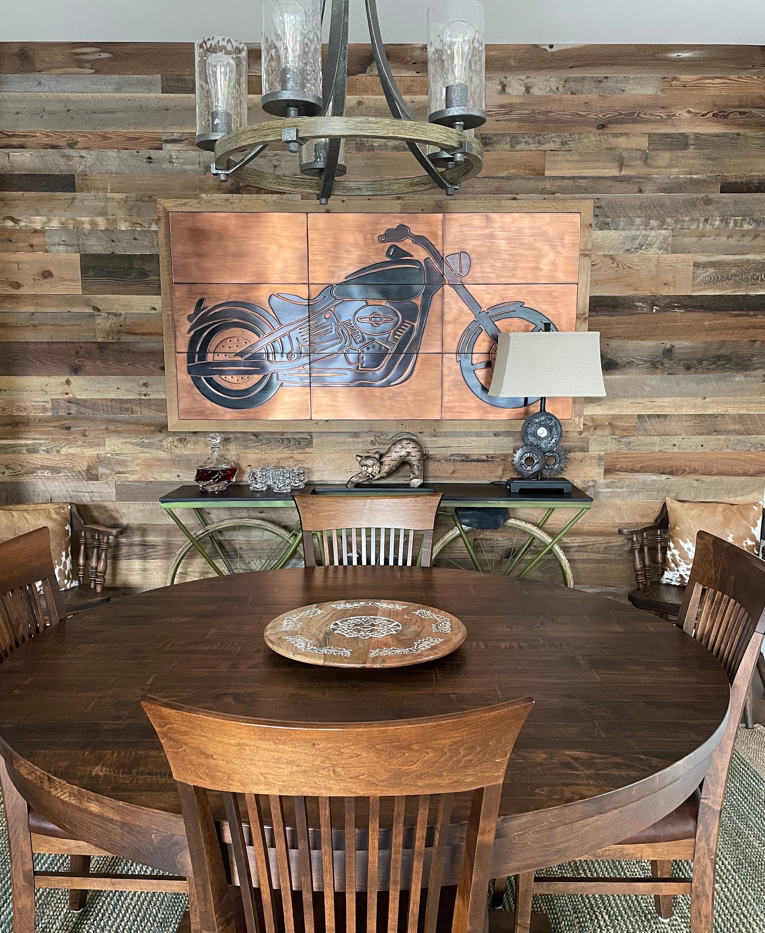 Leon's cruiser motorcycle mosaic isn't merely a decorative piece. It's a journey through time, a nod to the cultural significance of motorcycles, and a celebration of handcrafted artistry. Each tile resonates with the roar of the engine, the freedom of the open road, and the timeless allure of the cruiser, making it an exquisite addition to any space.