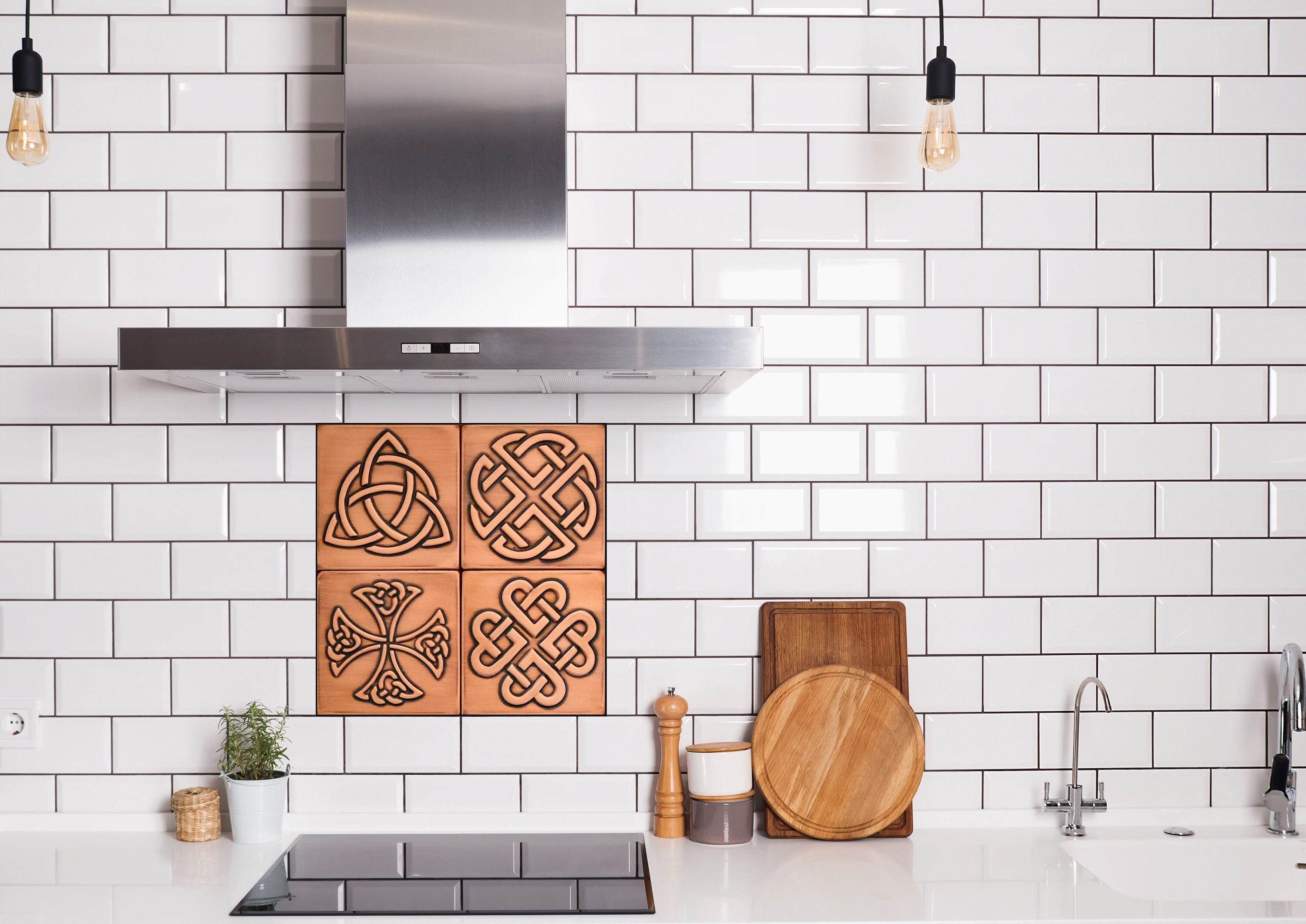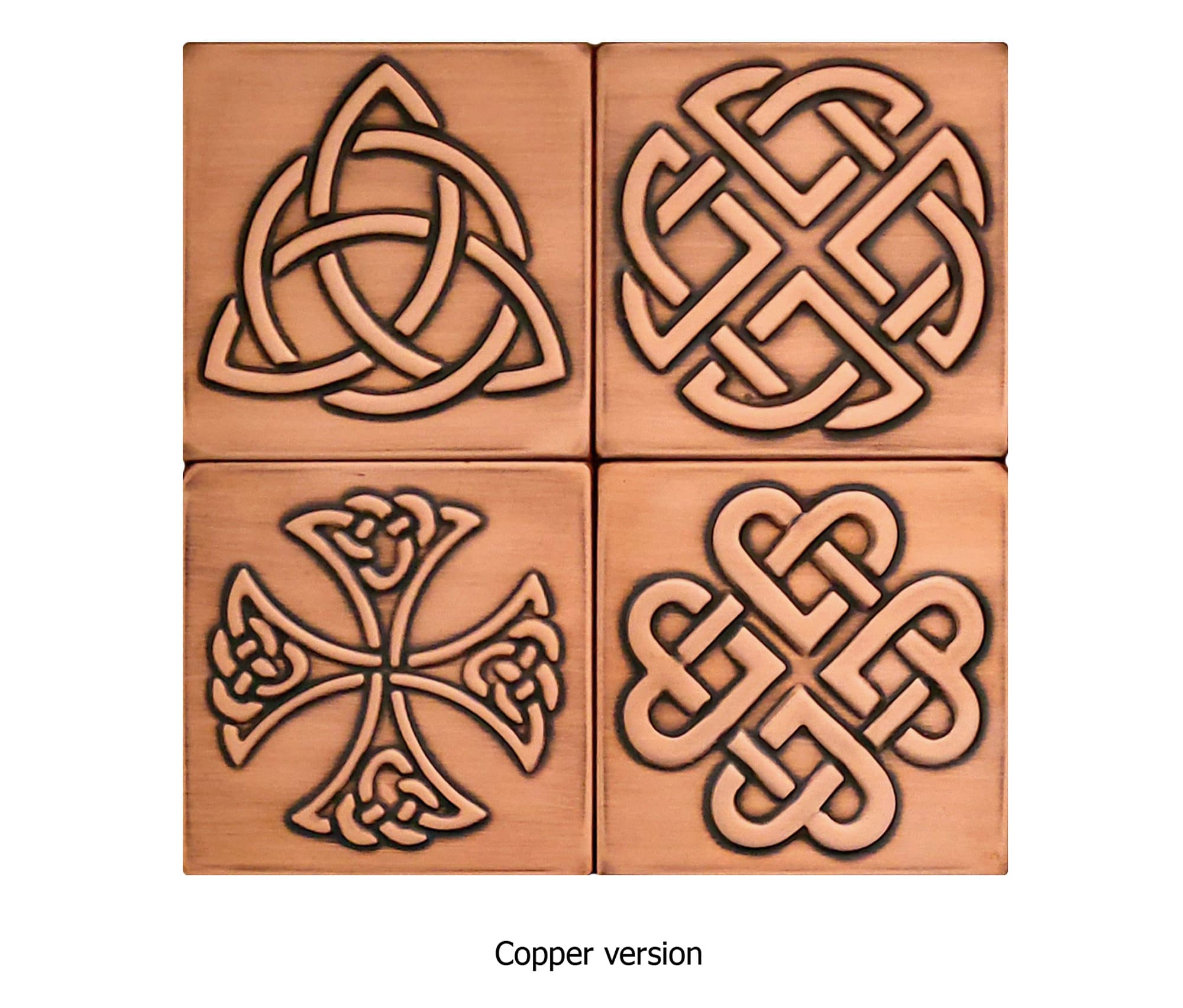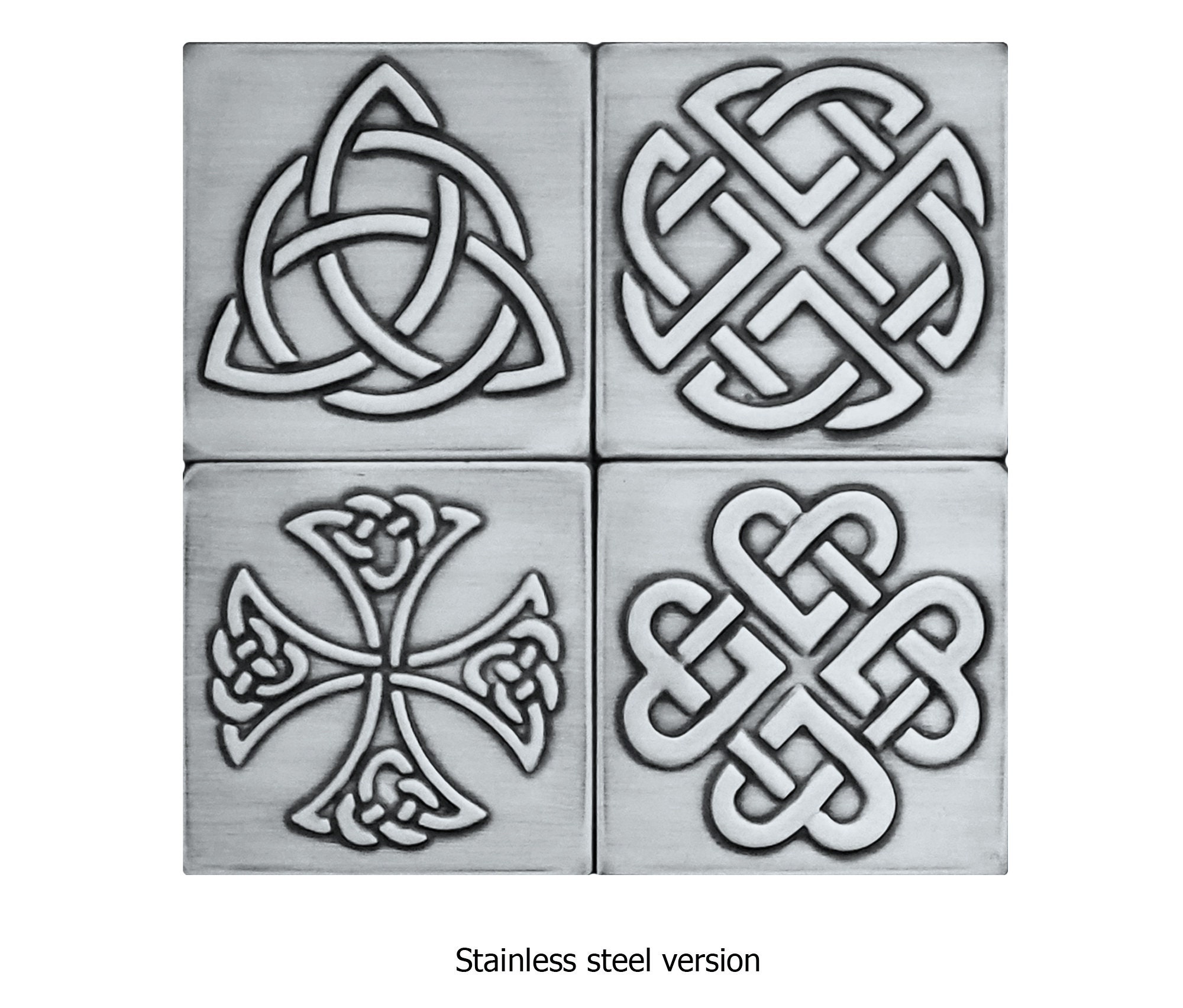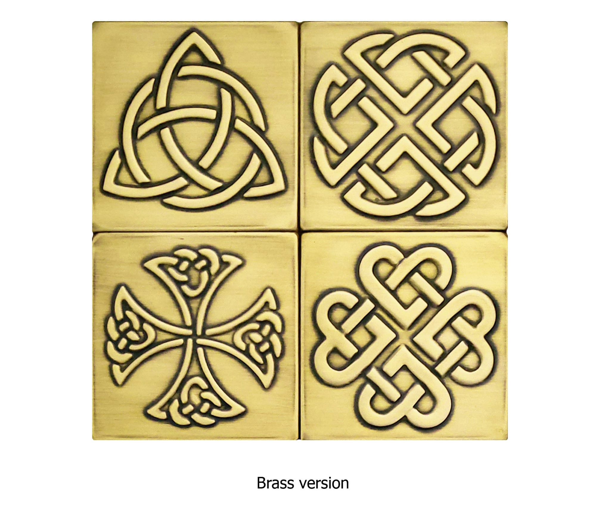 Set of 4 Celtic, Handmade tiles - 100% Brass, Copper or Stainless Steel.
