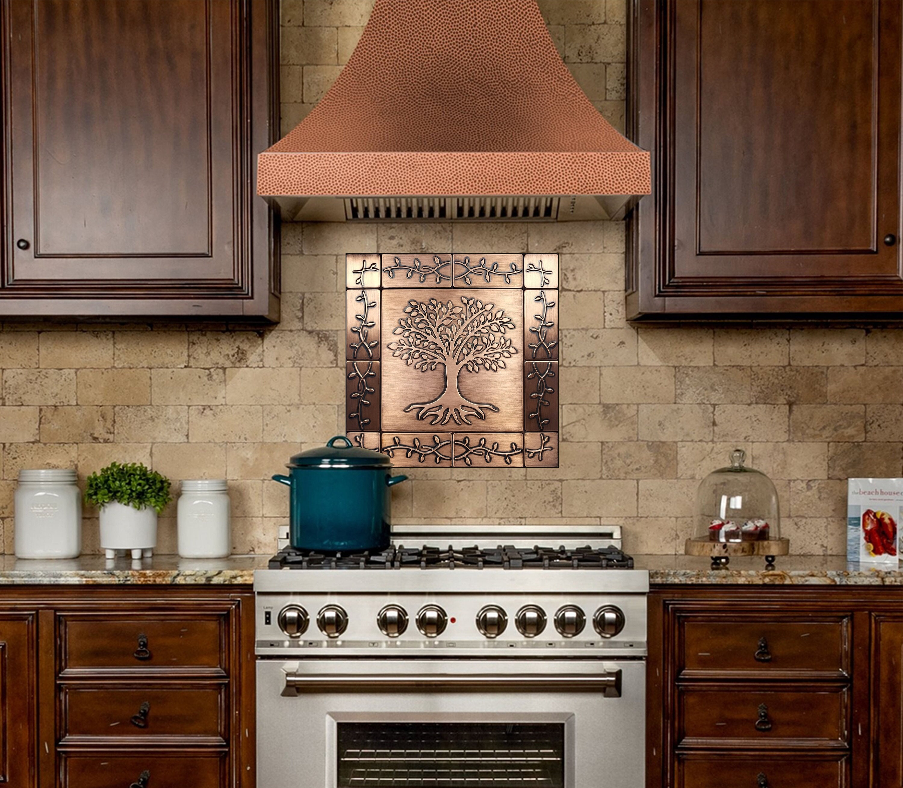 Tree of life with a beautiful ornament - Set of 13 handmade tiles - 100% Copper, Stainless Steel or Brass.