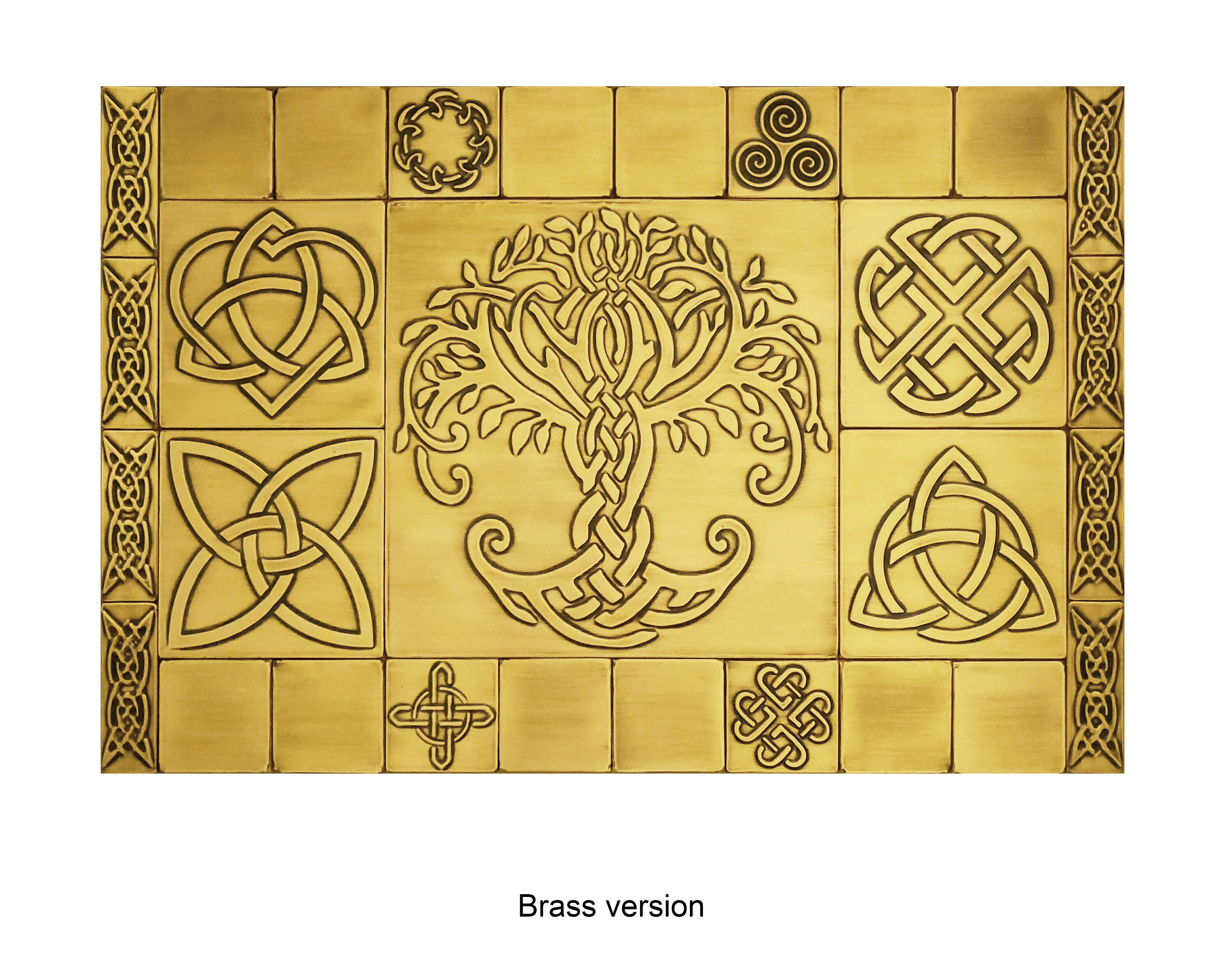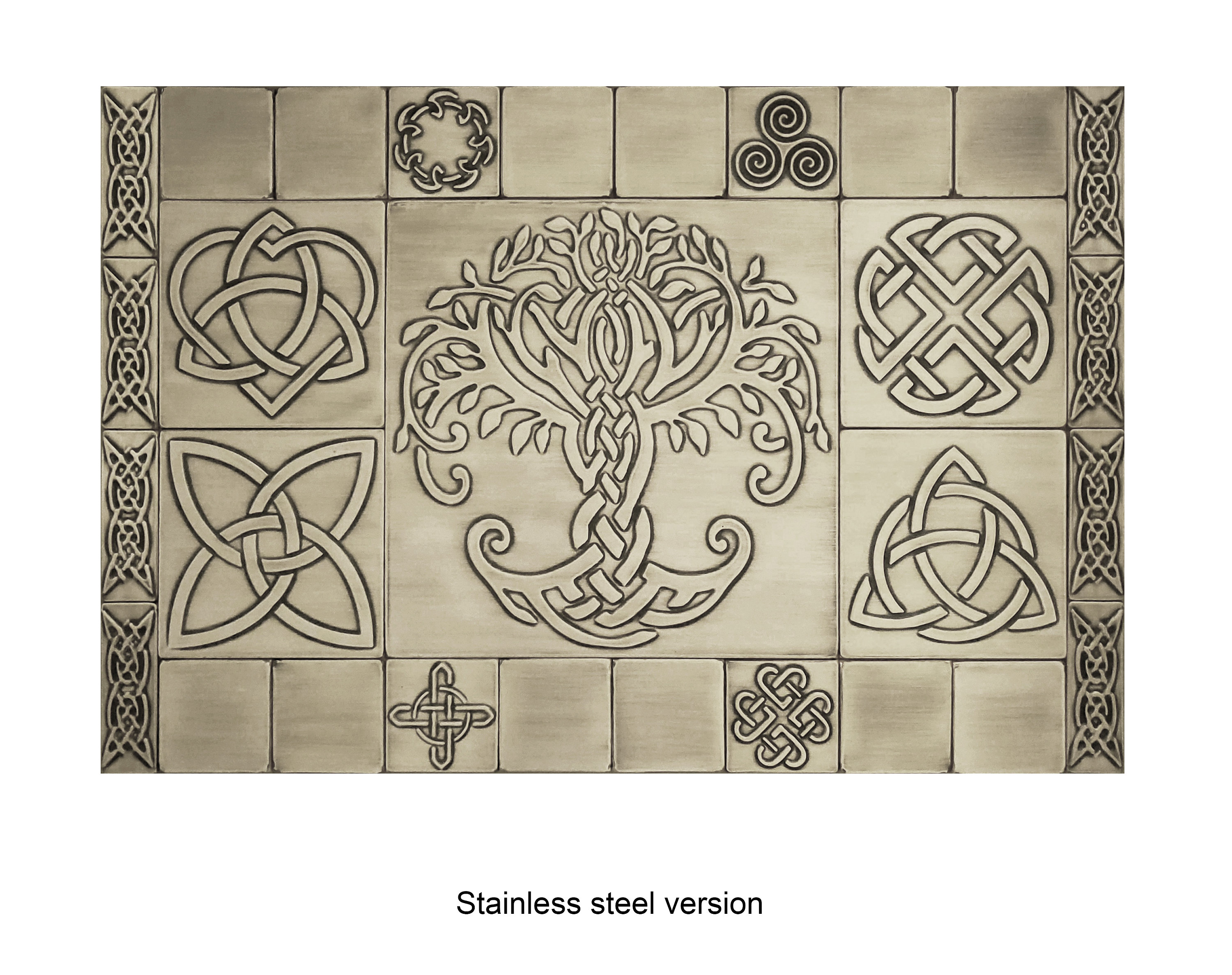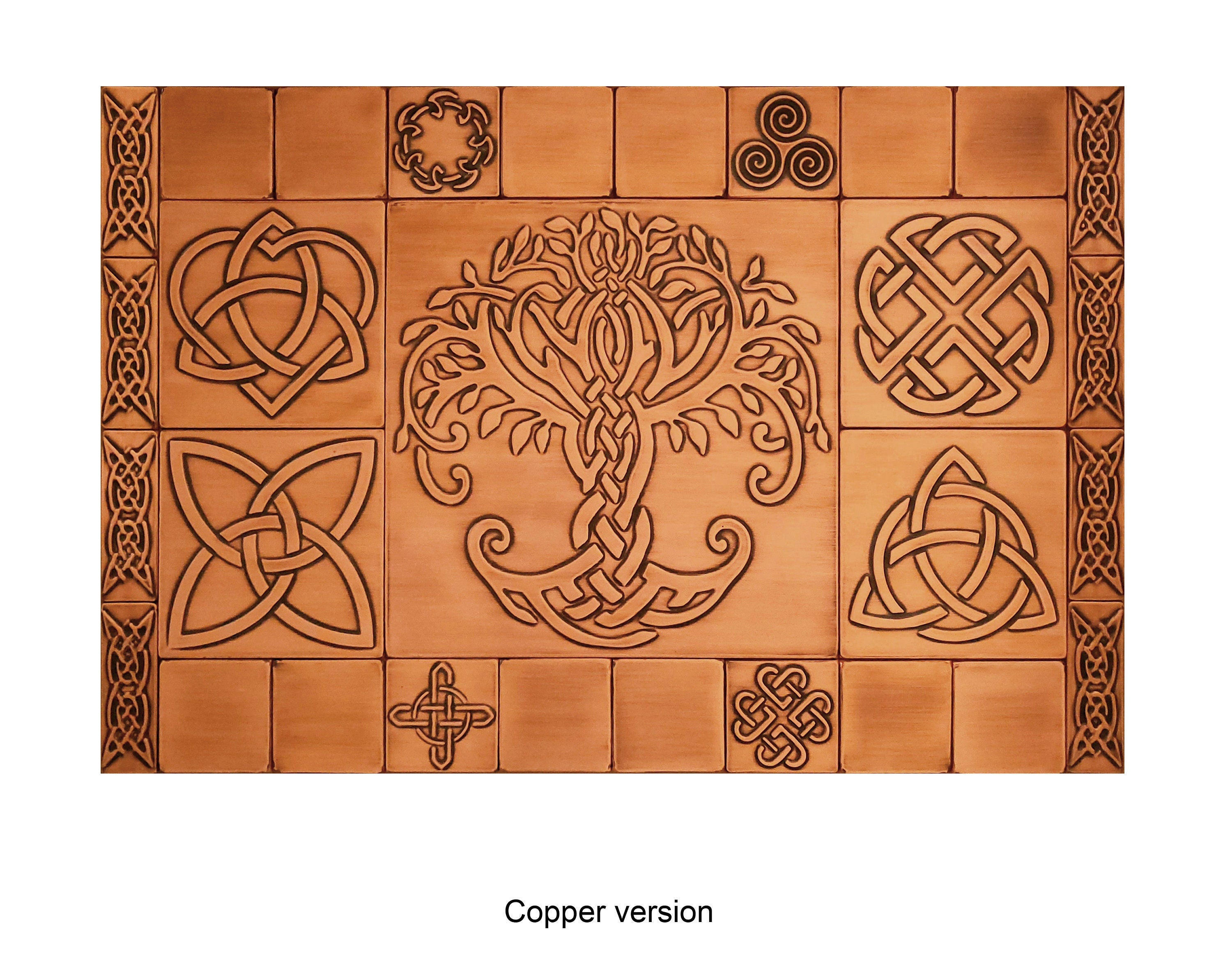 Beautiful Celtic backsplash - Set of 29 handmade tiles - 100% Copper, Stainless Steel or Brass.