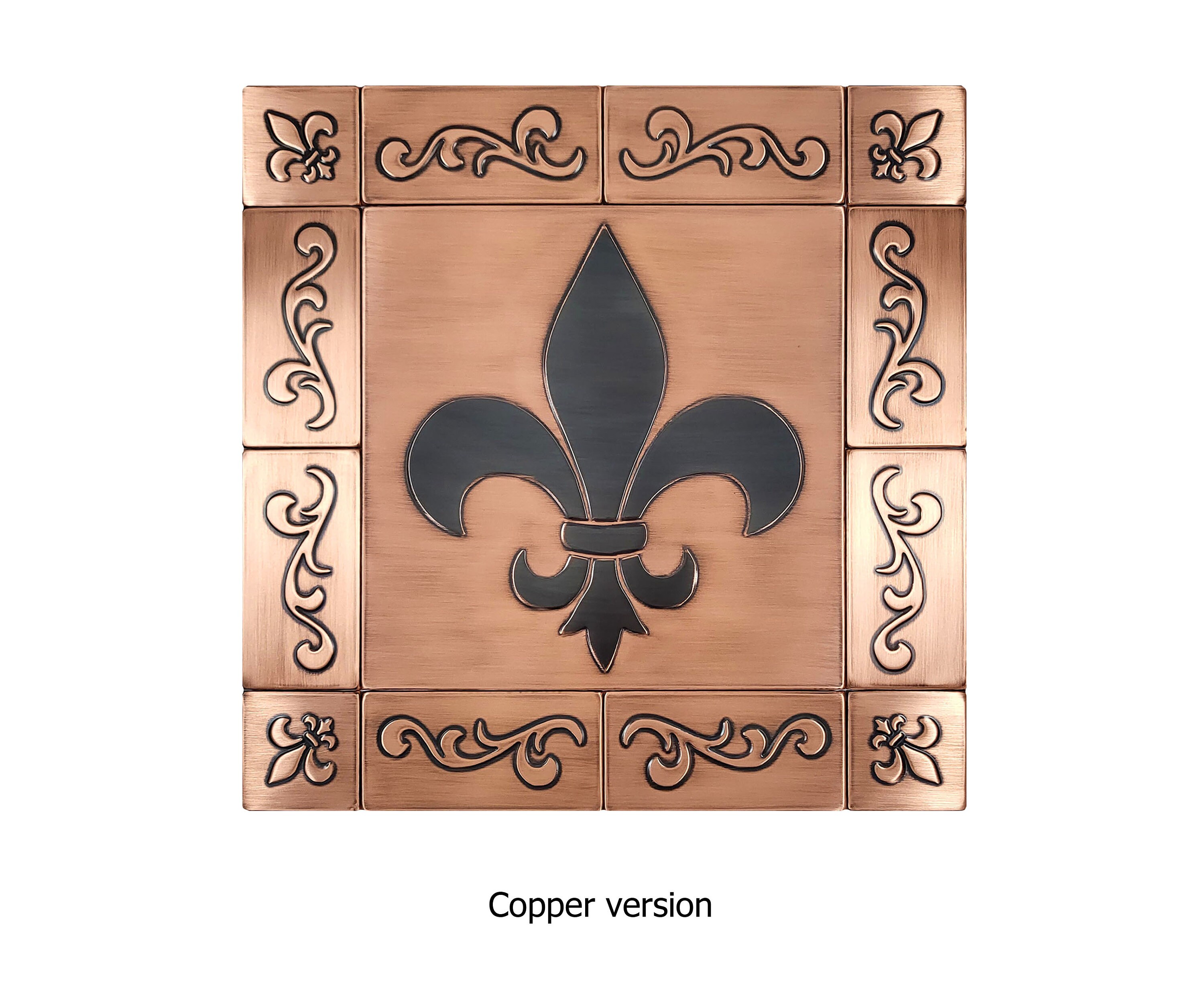 Fleur de lis - Set of 13 handmade tiles - 100% Copper, Stainless Steel or Brass.