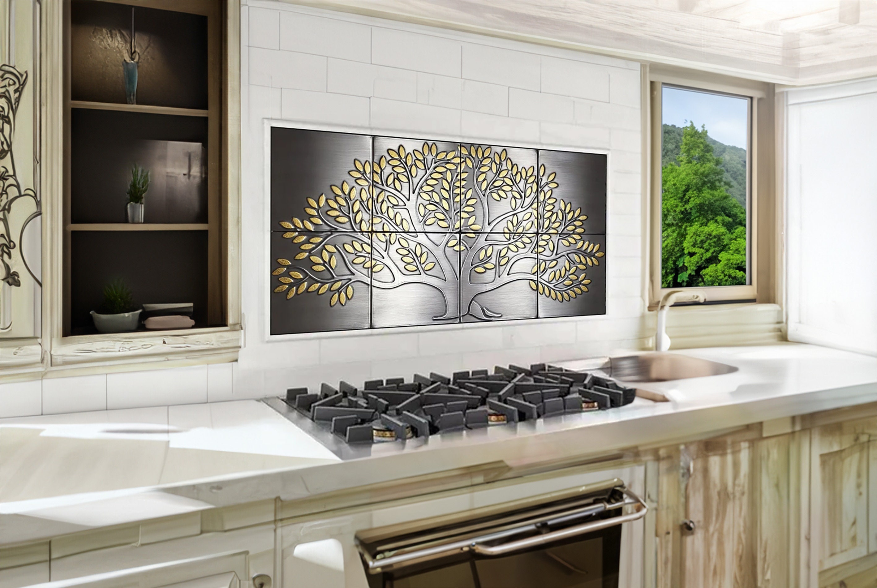 Bring elegance and timeless symbolism into your home with this handcrafted Tree of Life backsplash made from stainless steel and brass.