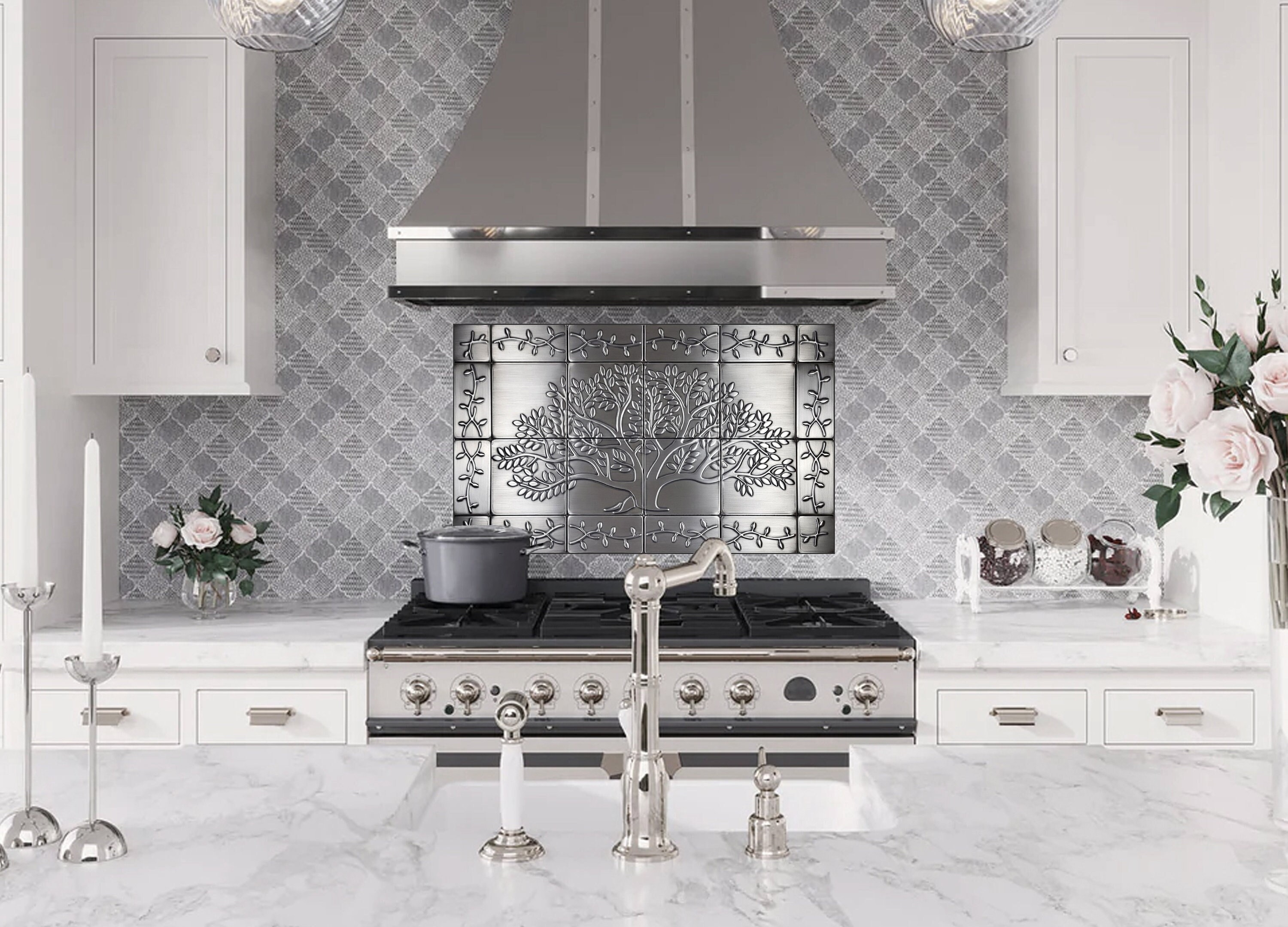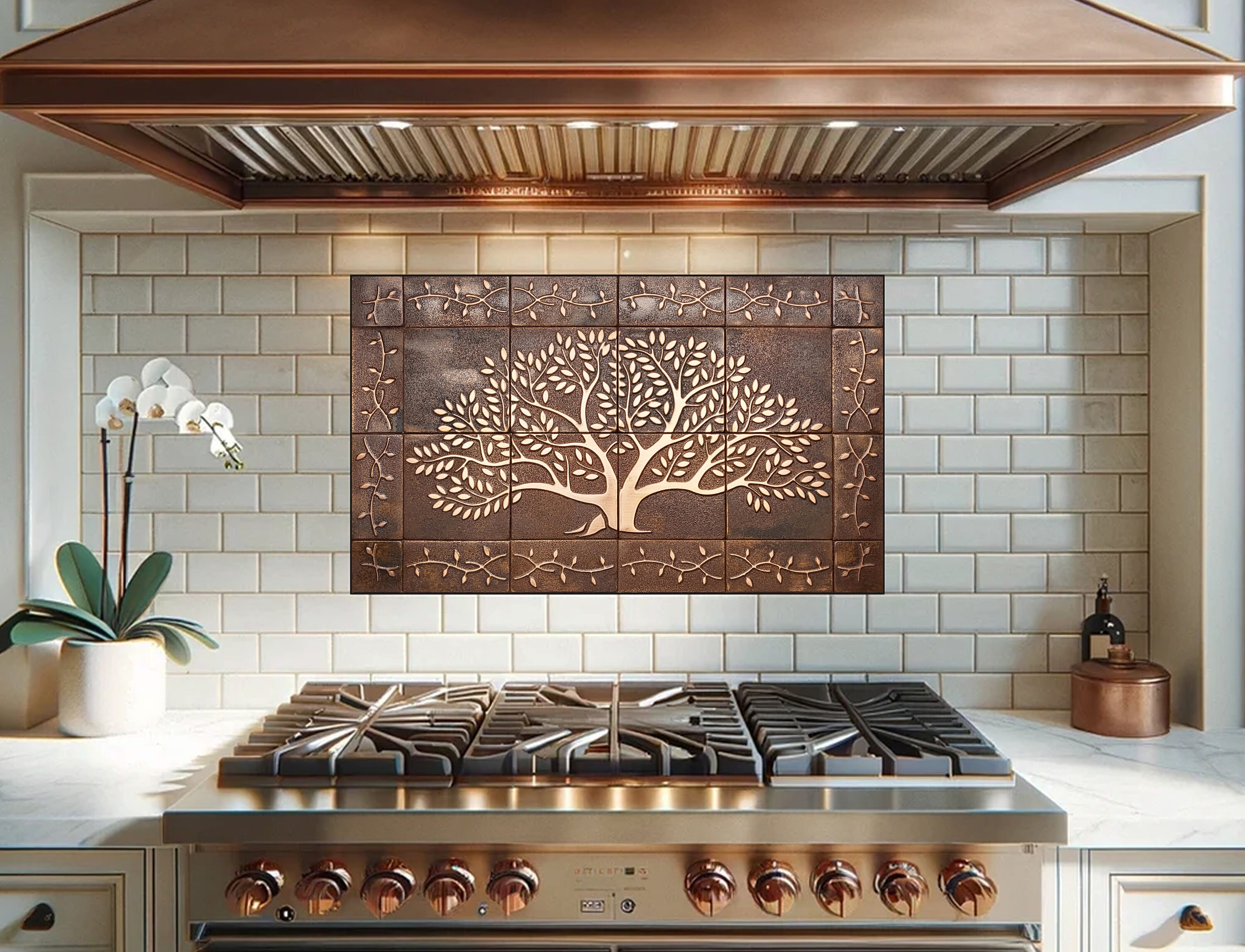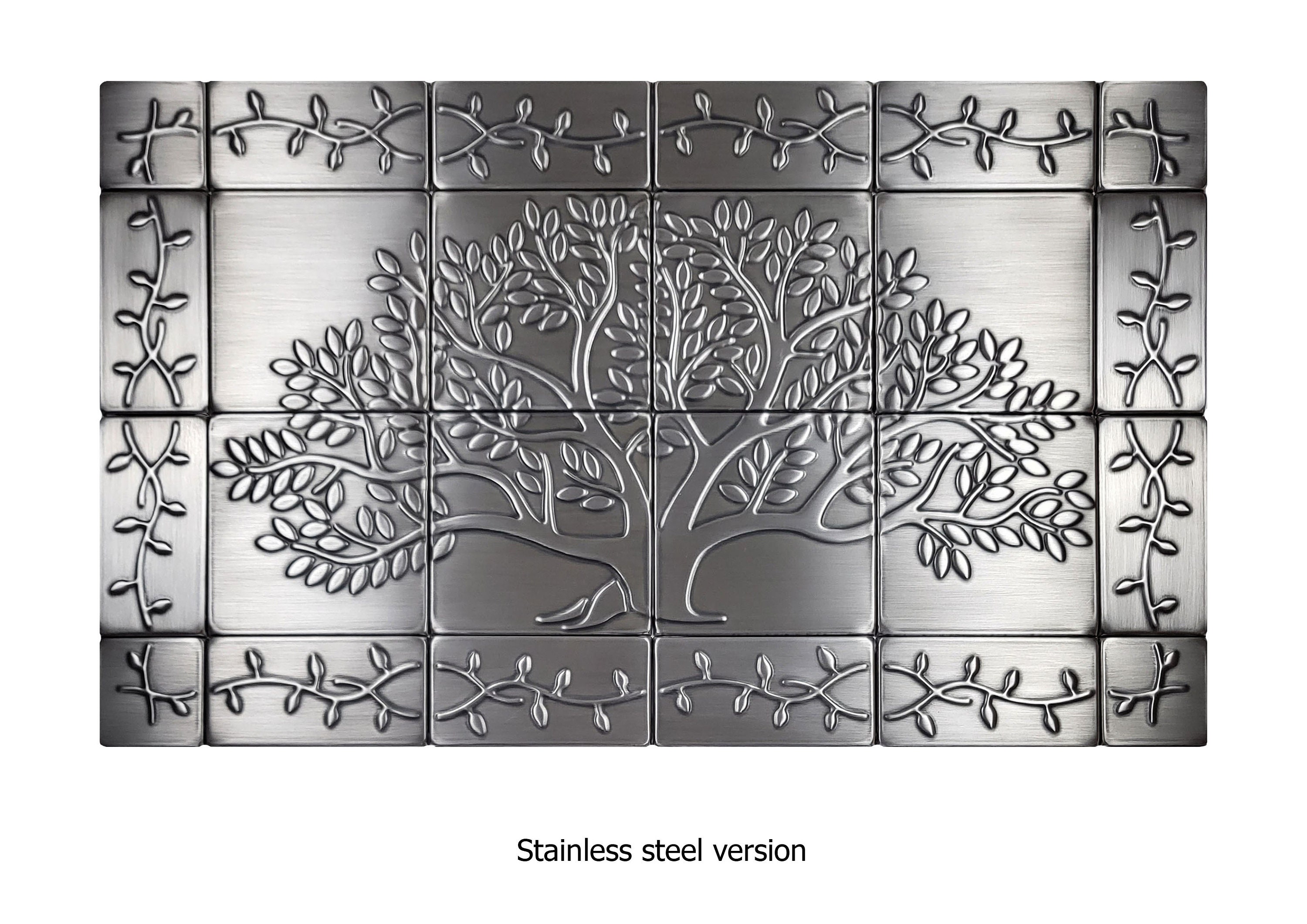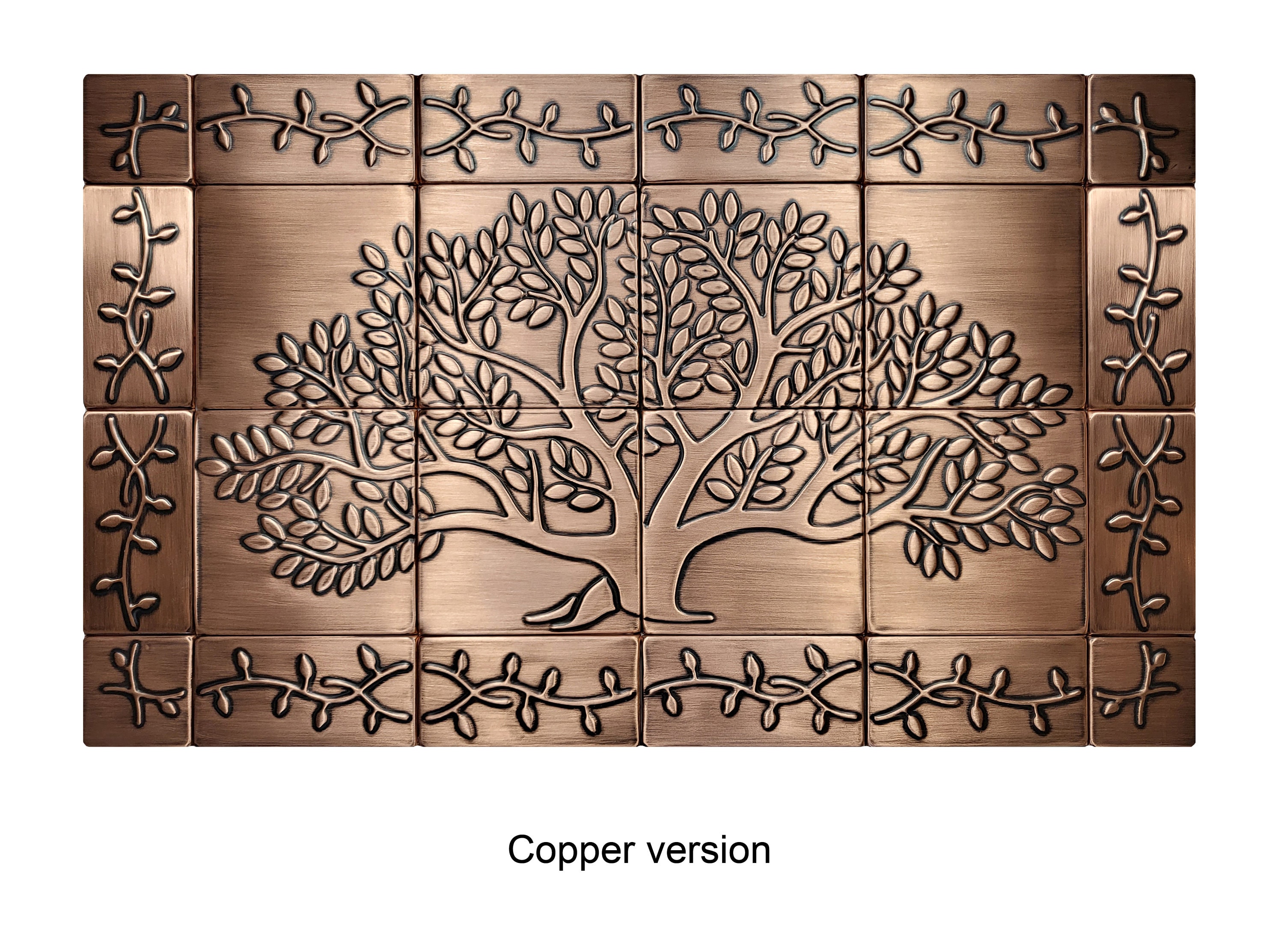 Tree of life with a beautiful ornament - Set of 24 handmade tiles - 100% Copper, Stainless Steel or Brass.