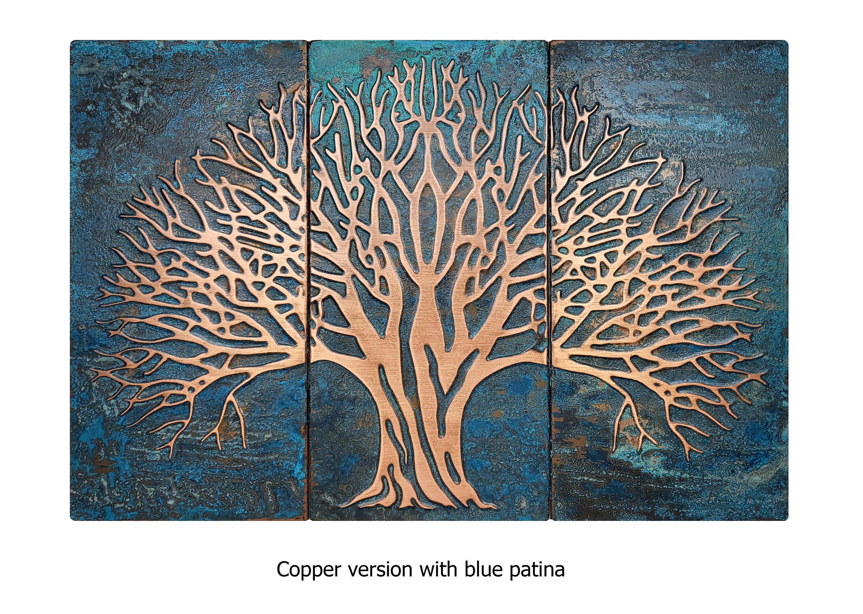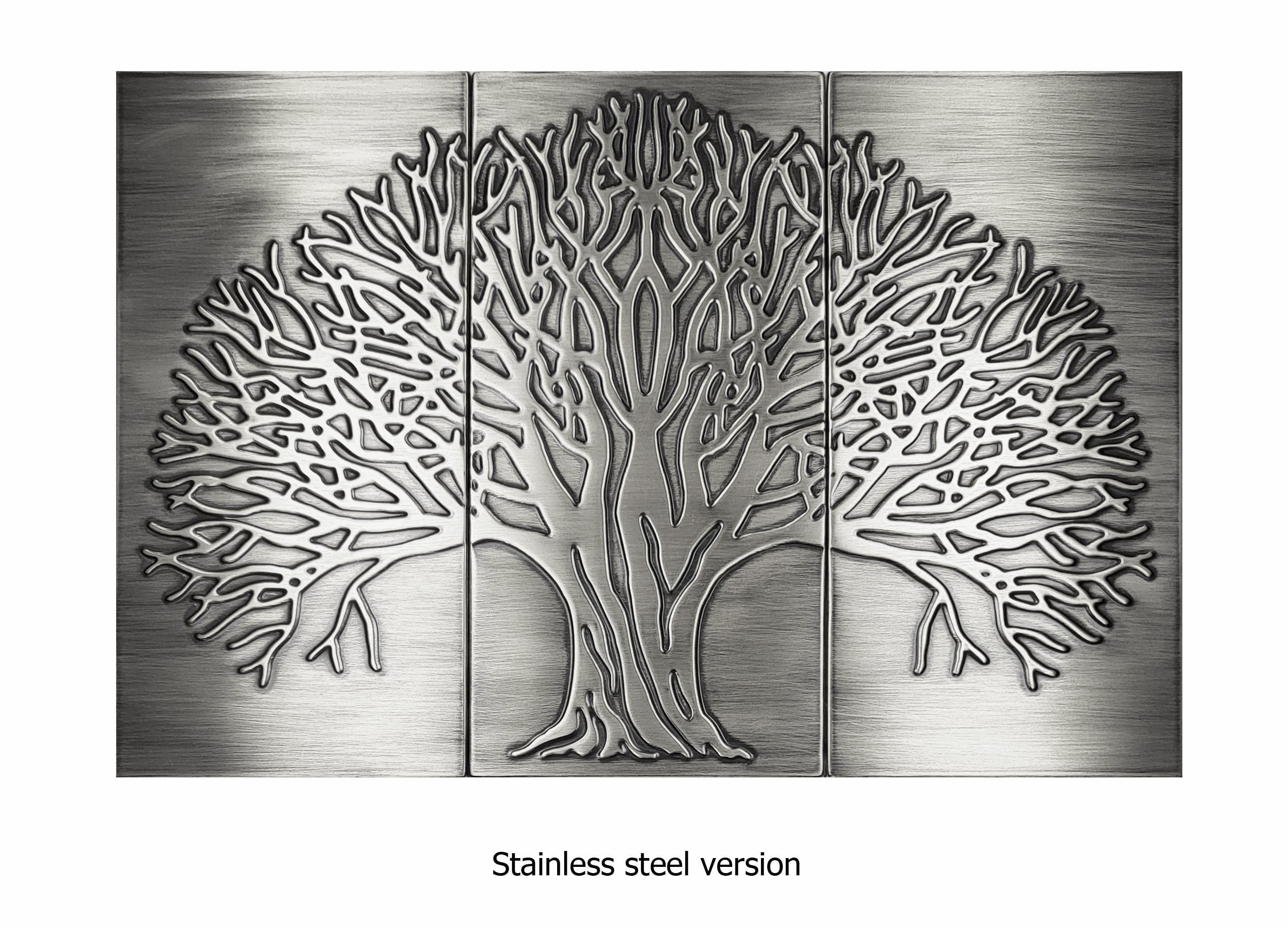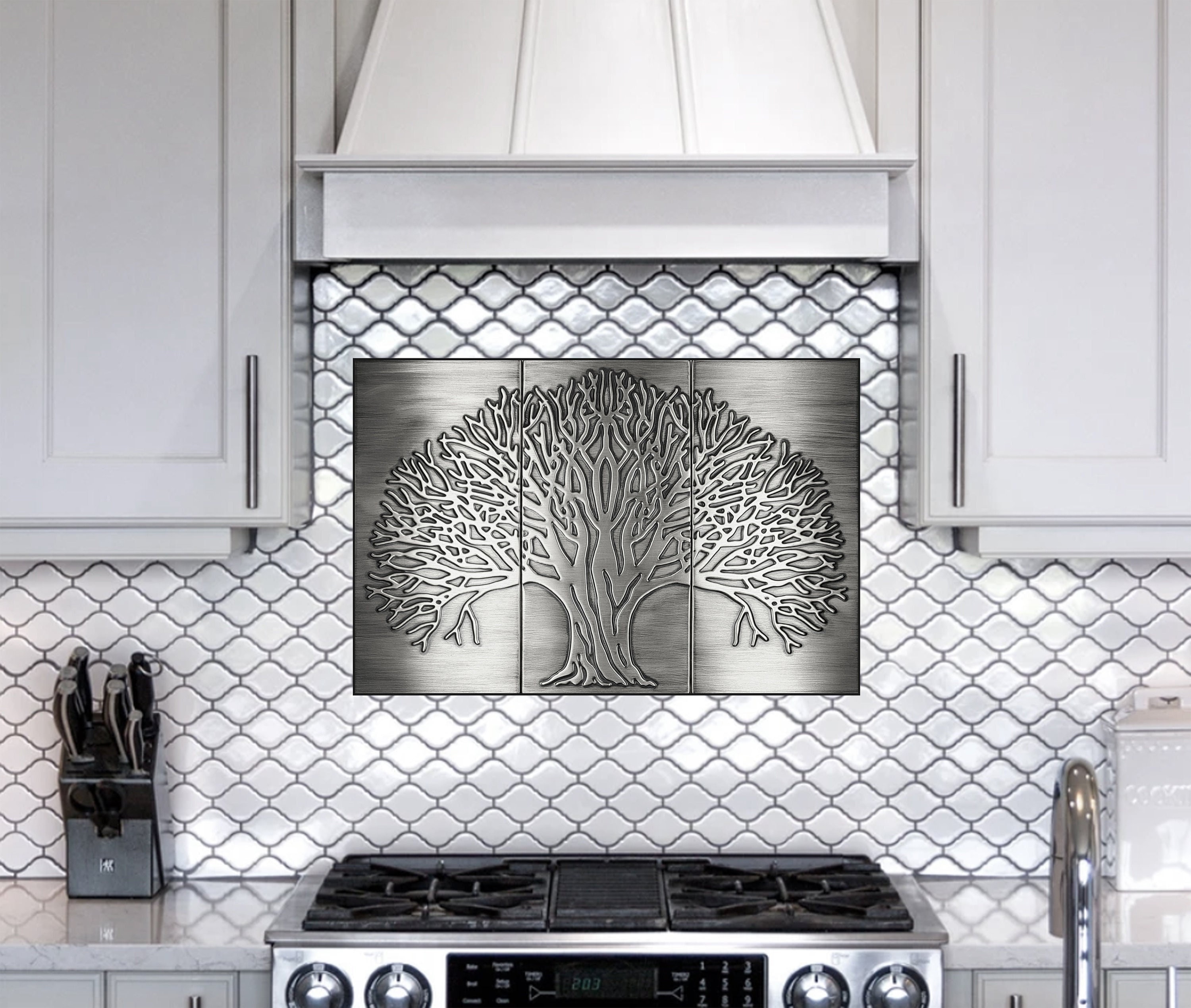 Tree of life - Set of 3 Handmade tiles - 100% Copper, Stainless Steel or Brass. The perfect backsplash for tree lovers.