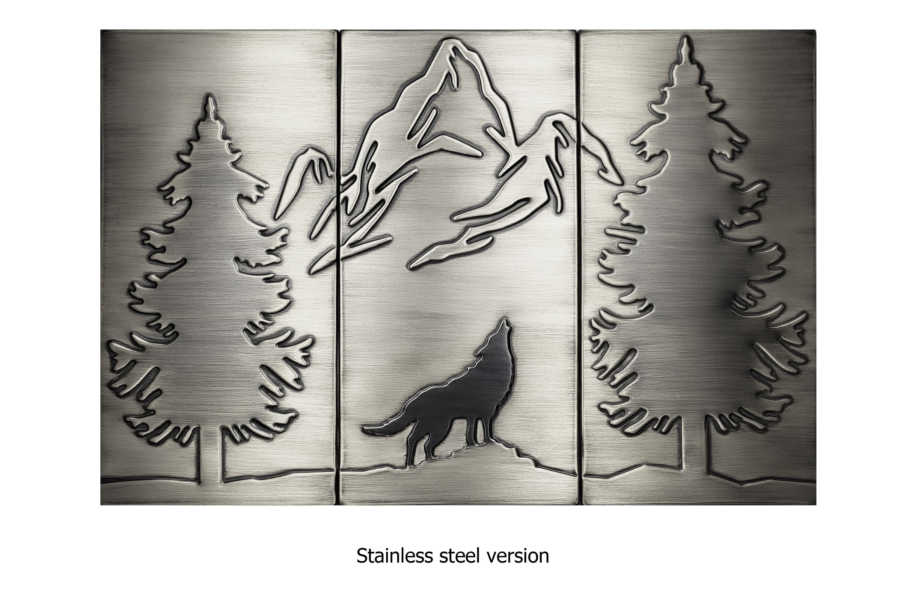 Wolf and Mountain Backsplash β Set of 3 Handmade Metal Tiles β Copper, Brass or Stainless Steel β Rustic Nature Wall Art for Kitchen