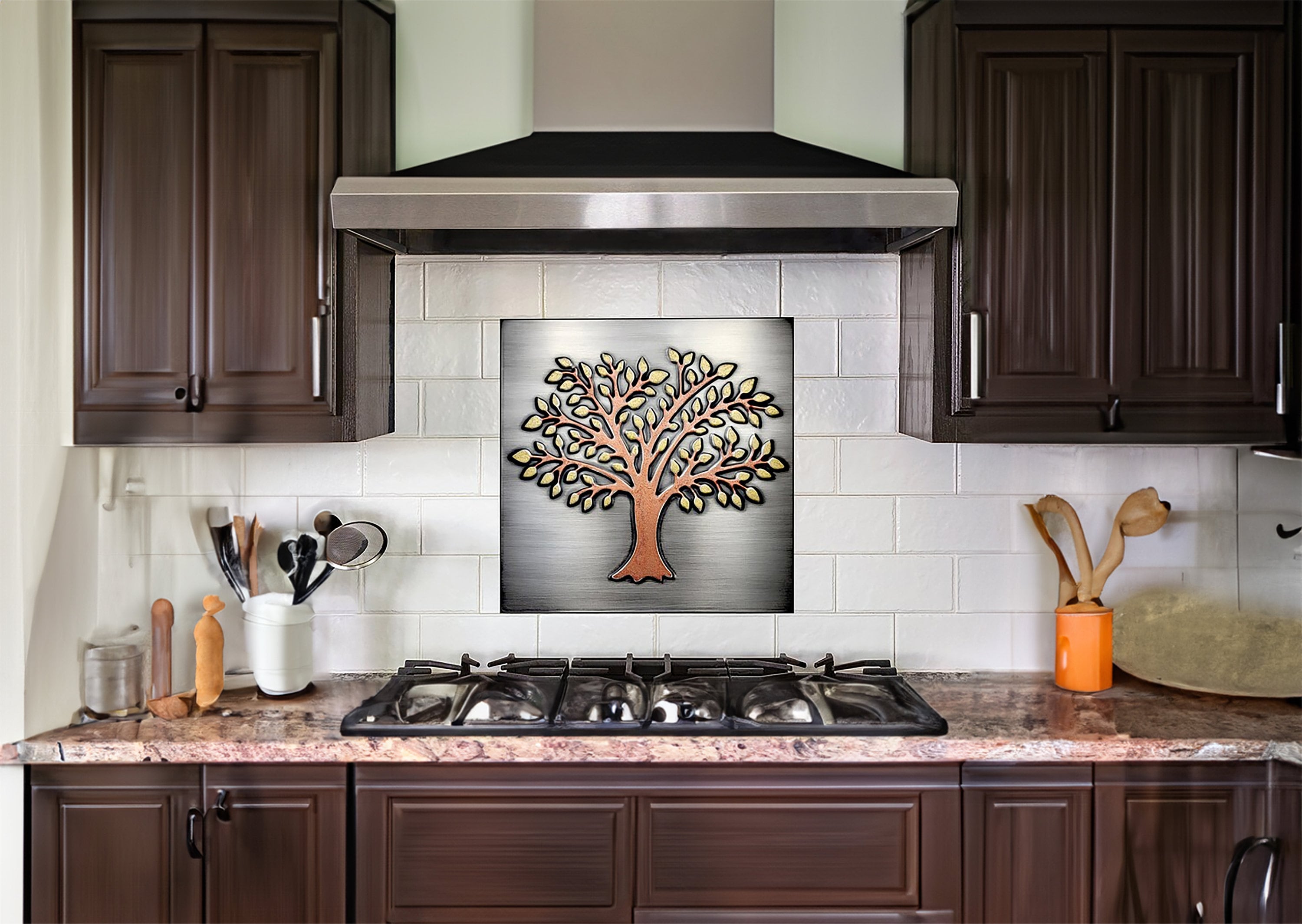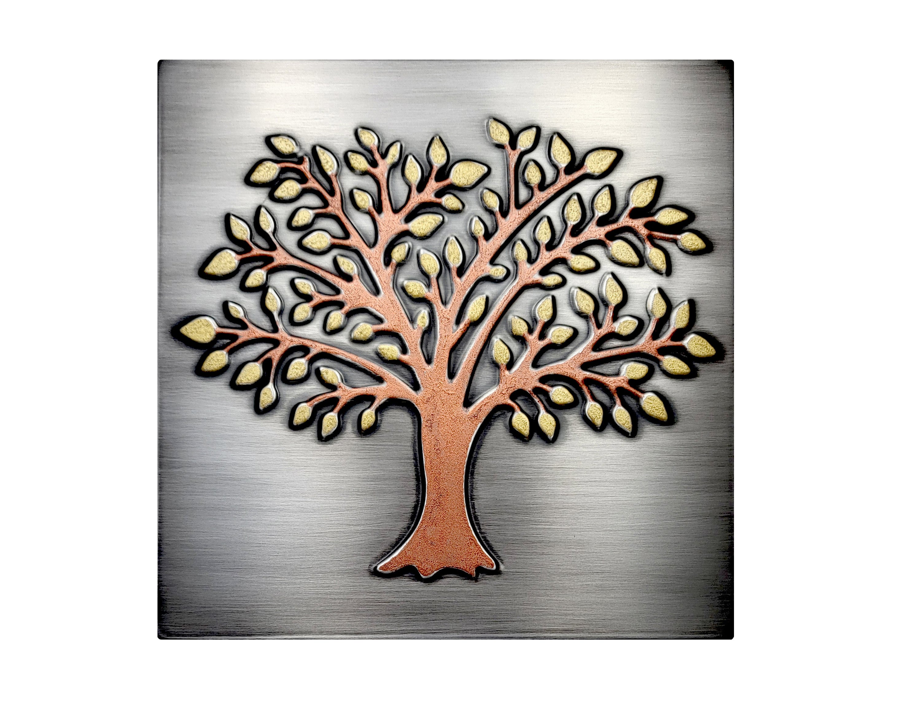 Exclusive stainless tree of life with brass leaves and a copper trunk - 100% Stainless steel.