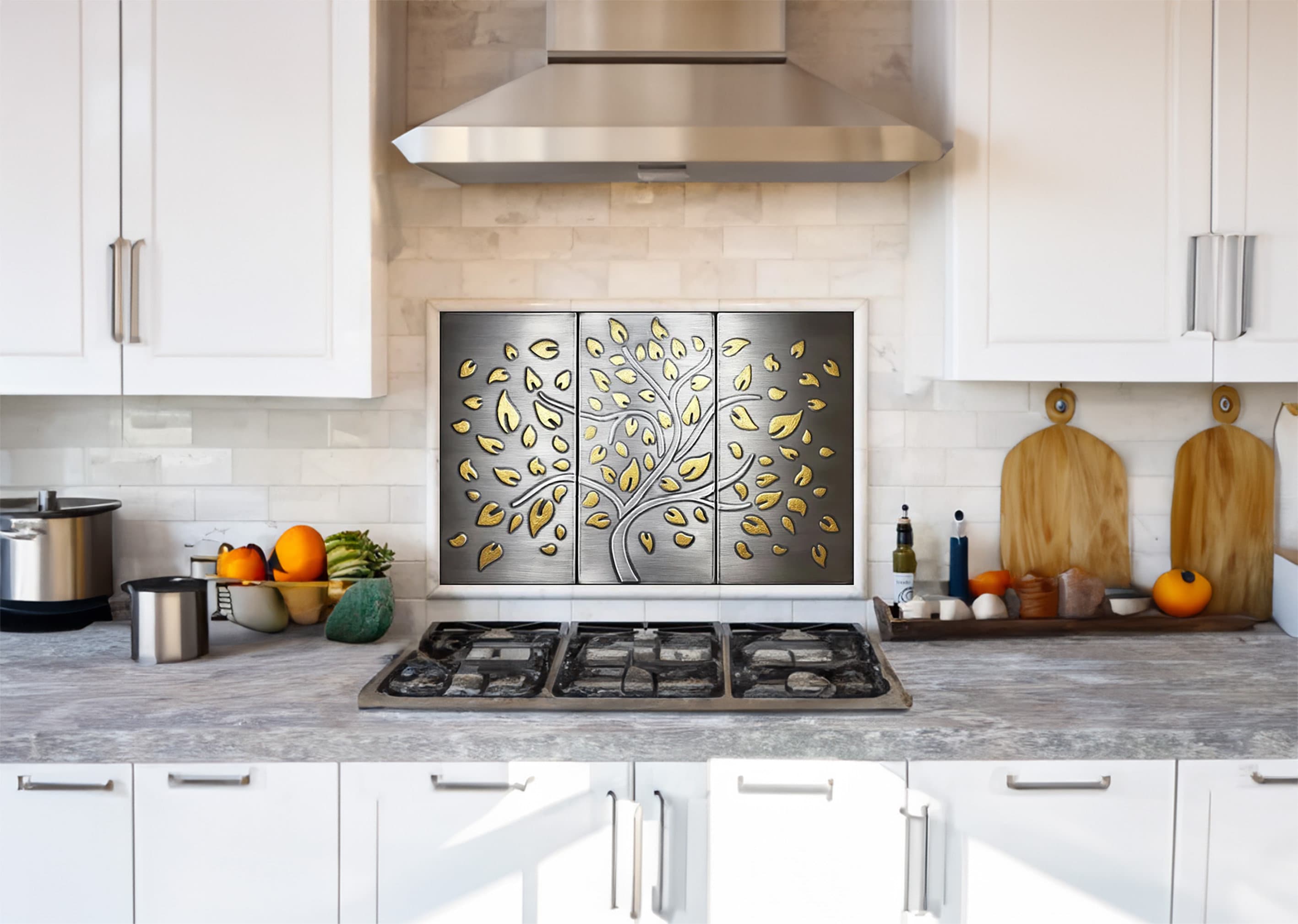 Leon's "Tree of Life" tile triptych is more than just a decorative piece. It's a blend of rich symbolism, handcrafted artistry, and the timeless beauty of stainless steel and brass. Whether it graces a kitchen backsplash, a bathroom wall, or even an outdoor space, this set promises to be a conversation starter, bringing a piece of ancient lore and unmatched craftsmanship to your home.