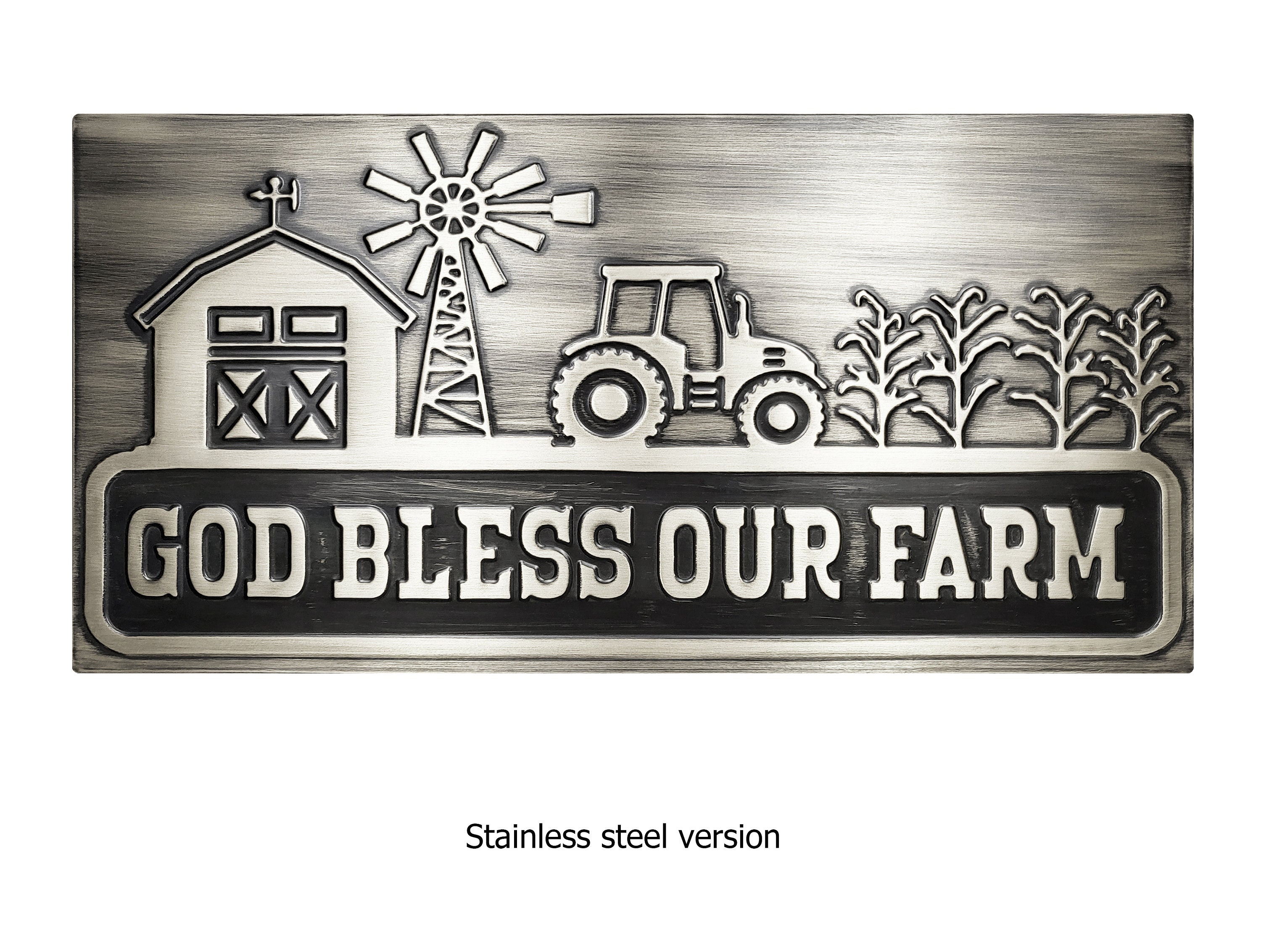 Add a heartfelt blessing to your home with this handcrafted metal tile set featuring a barn, windmill, tractor, and wheat – symbols of hard work, tradition, and abundance. The engraved phrase "God Bless Our Farm" makes it a perfect gift for country lovers and proud farm owners.