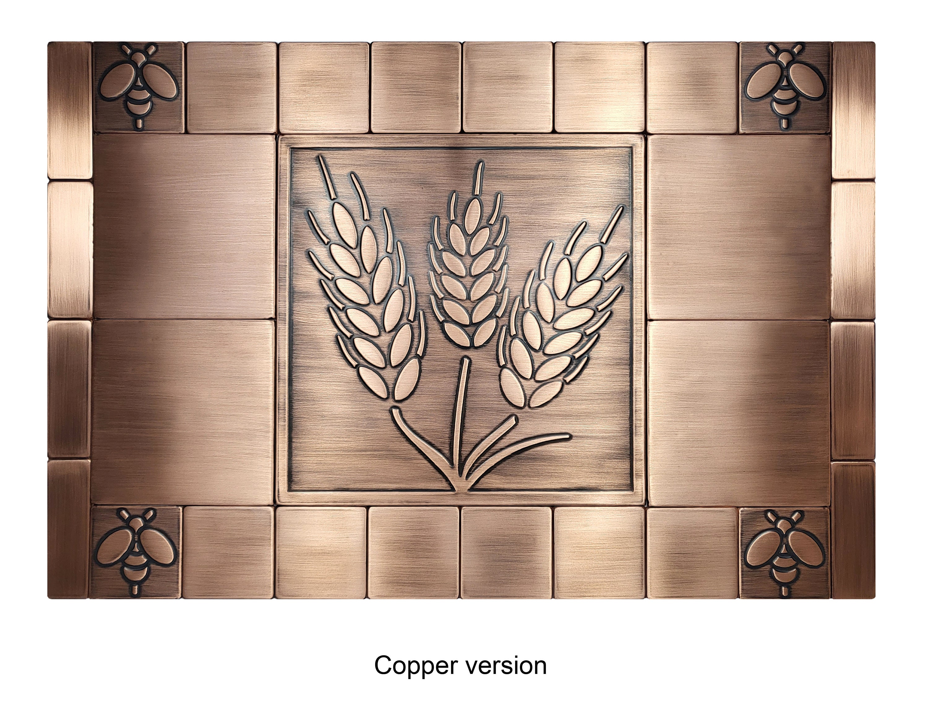 Ears of grain and bees - Set of 29 Handmade tiles - 100% Copper, Stainless Steel or Brass