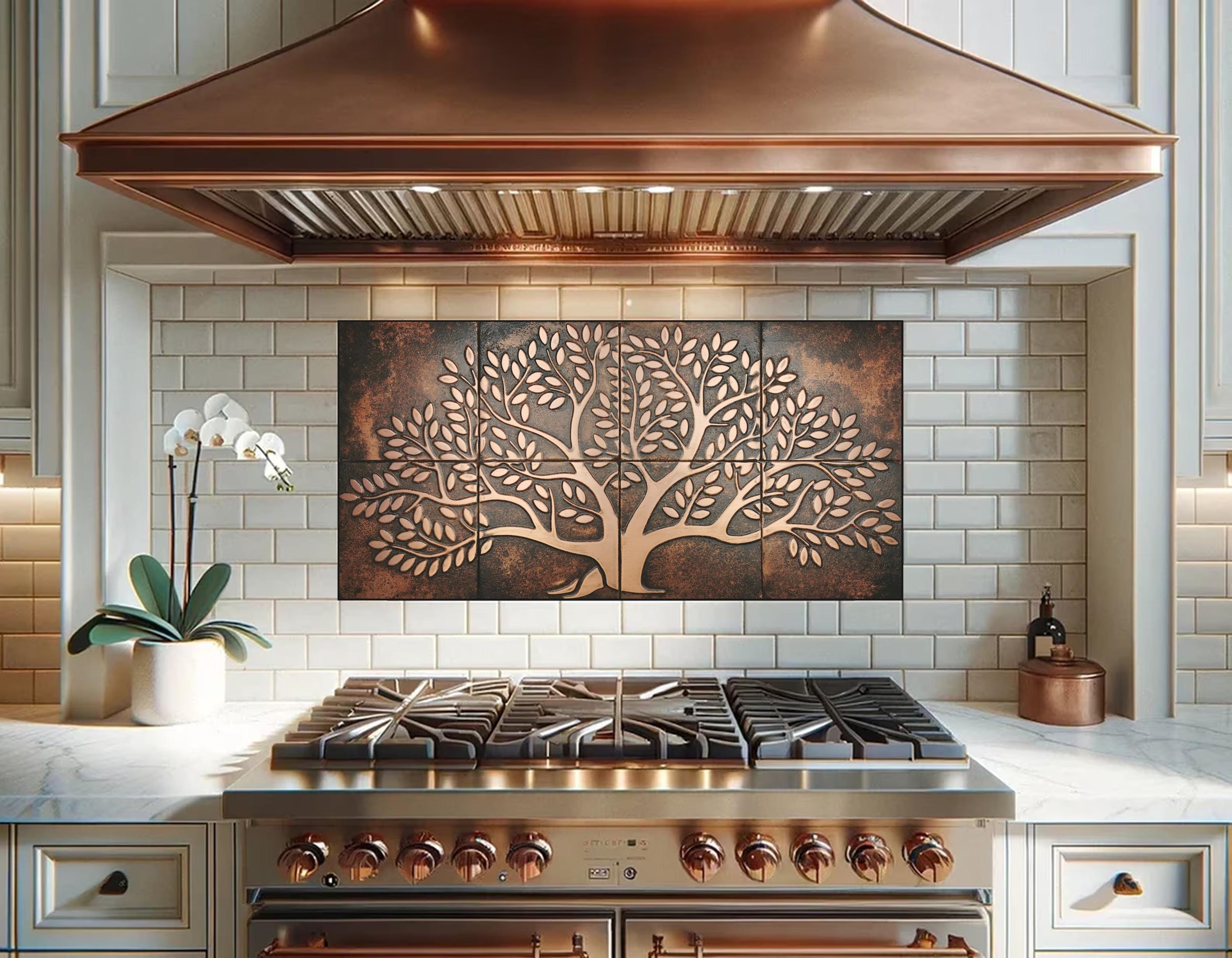 Transform your space with the elegance of this handcrafted Tree of Life backsplash – made from real Copper, Brass, or Stainless Steel. This 8-piece layout offers a wide, horizontal design that adds warmth and symbolism to your home 🍂