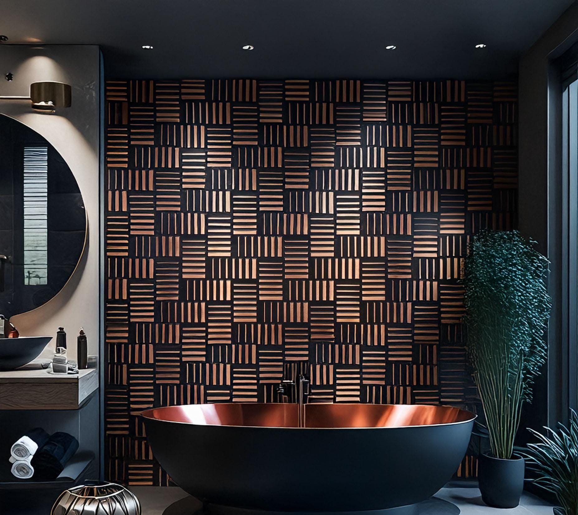 Presenting to the discerning aesthete, the Parquet Mosaic Collection, a truly unparalleled offering from Leon's bespoke Etsy store. With the rich heritage of parquet flooring being transmuted into the sturdy elegance of copper, stainless steel, and brass plates, these tiles are a modern twist on a timeless classic. Meticulously handcrafted and suffused with passion, this collection embodies the age-old charm of parquet with the enduring allure of metal.