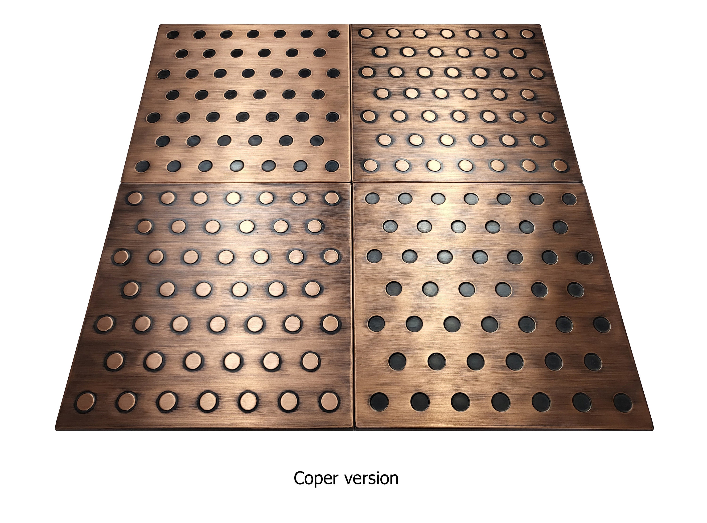 All my tiles are made of 100% real copper. It is not painted plastic or other copper-colored material that you can see from other manufacturers. I also offer tiles made of 100% brass and stainless steel.