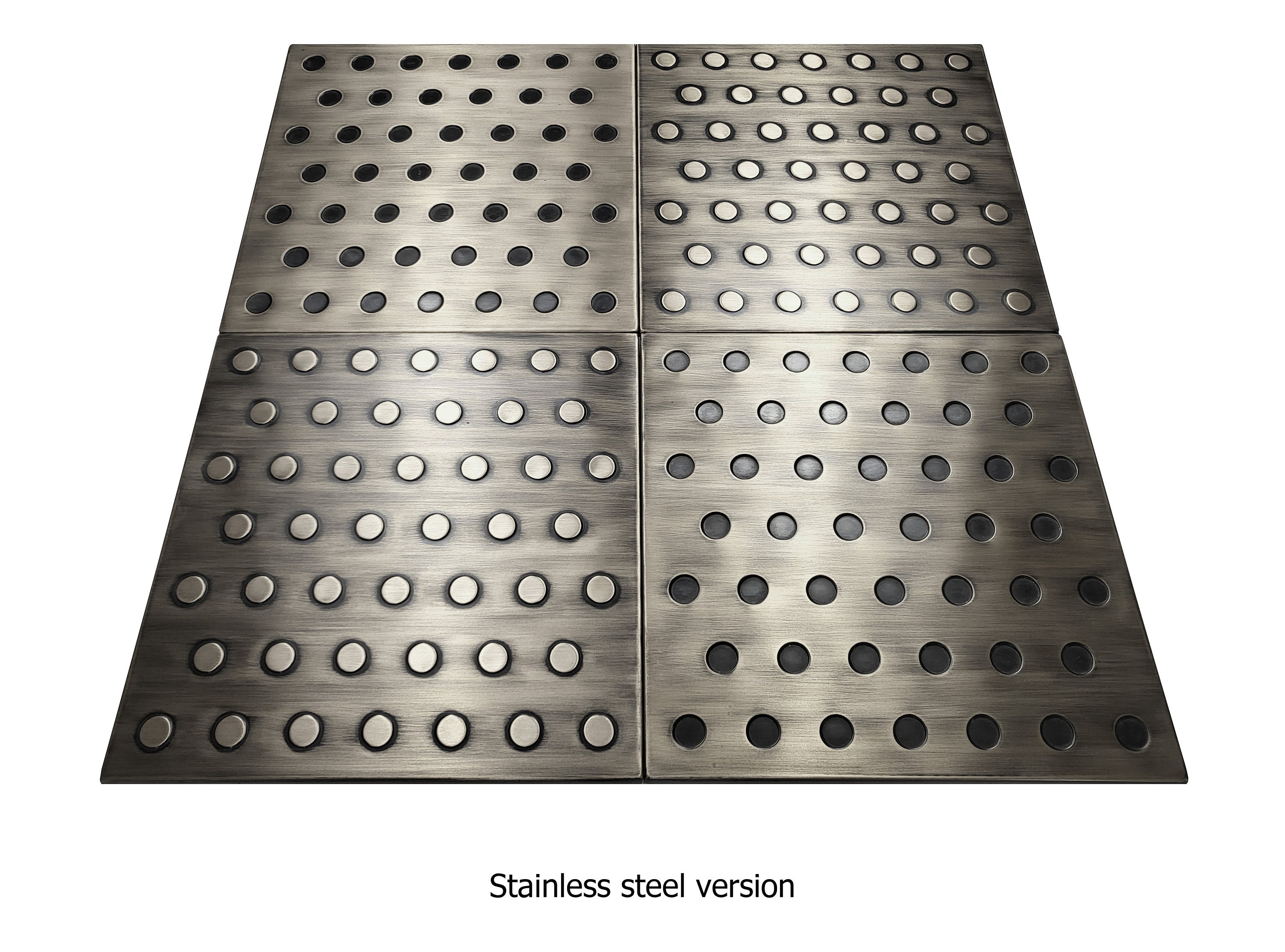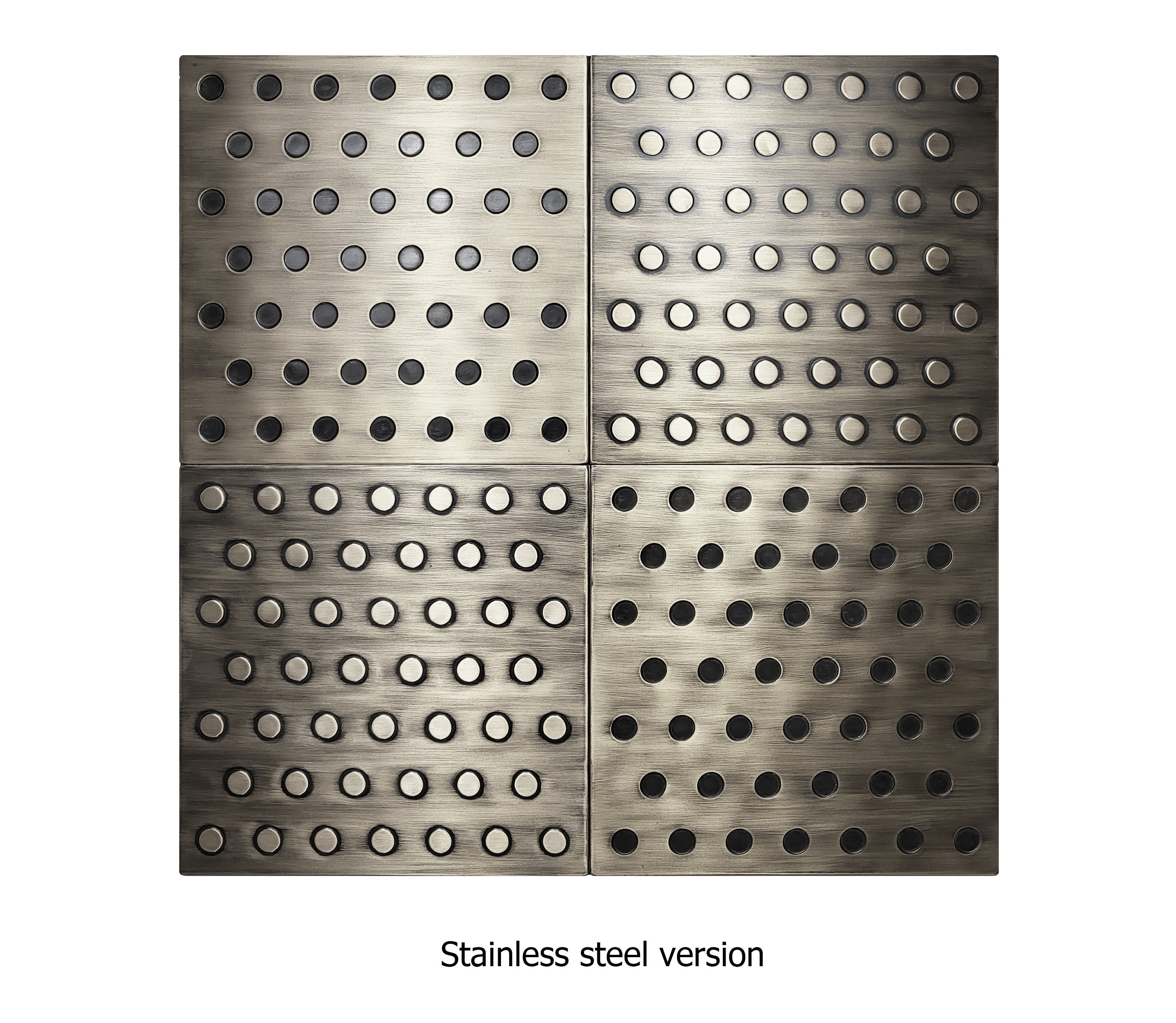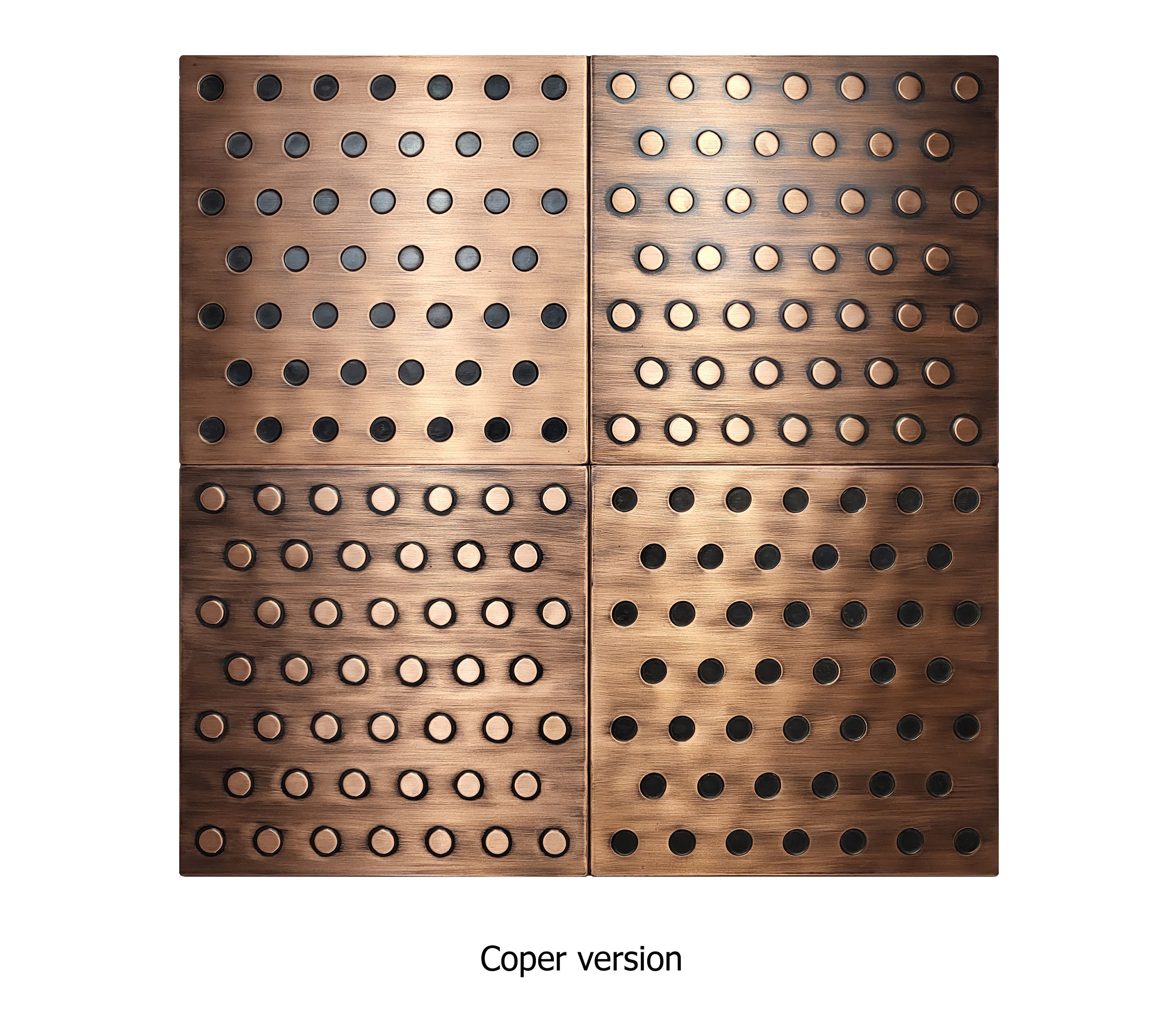 Polka dots - Set of 4 Handmade tiles - 100% Copper, Stainless Steel or Brass