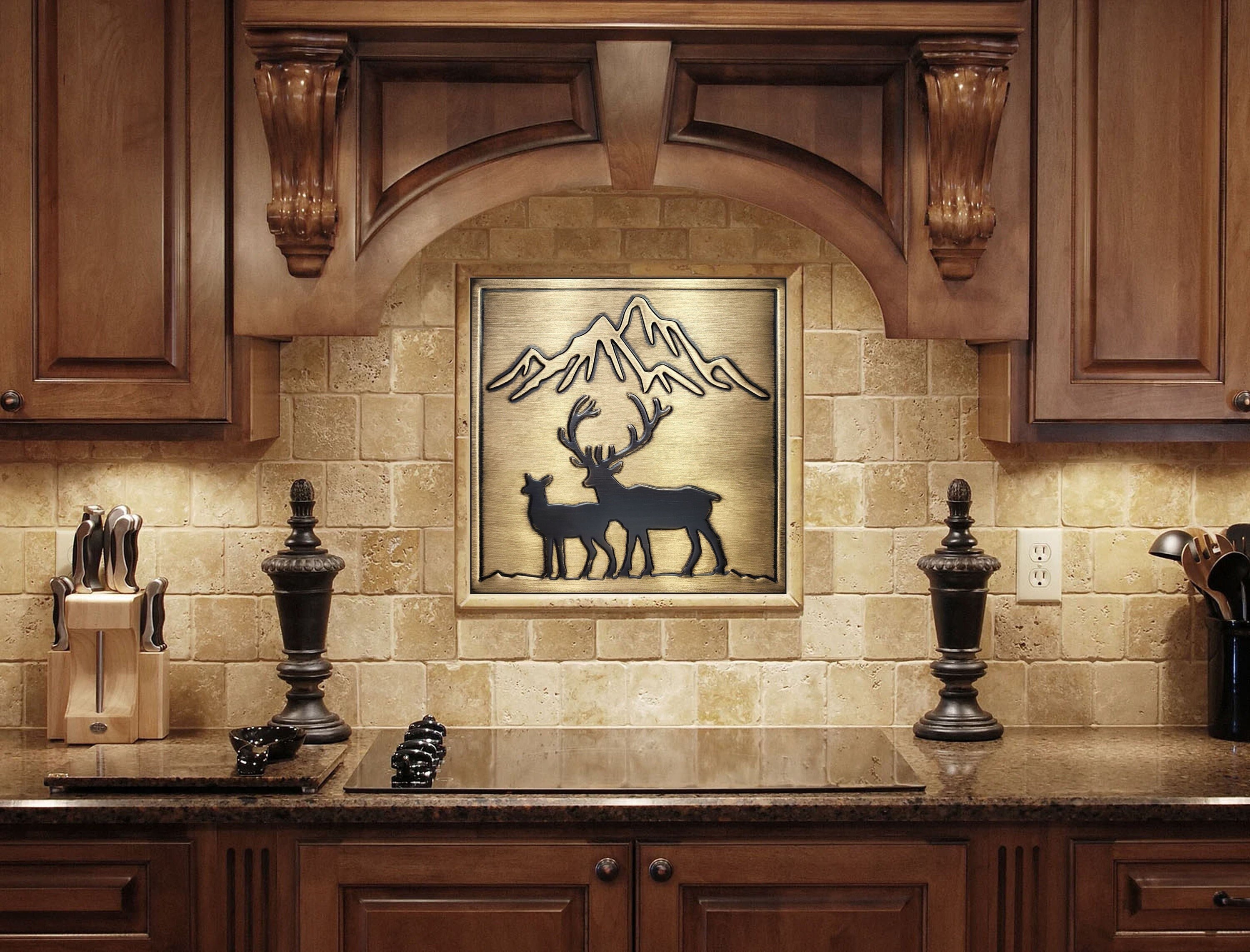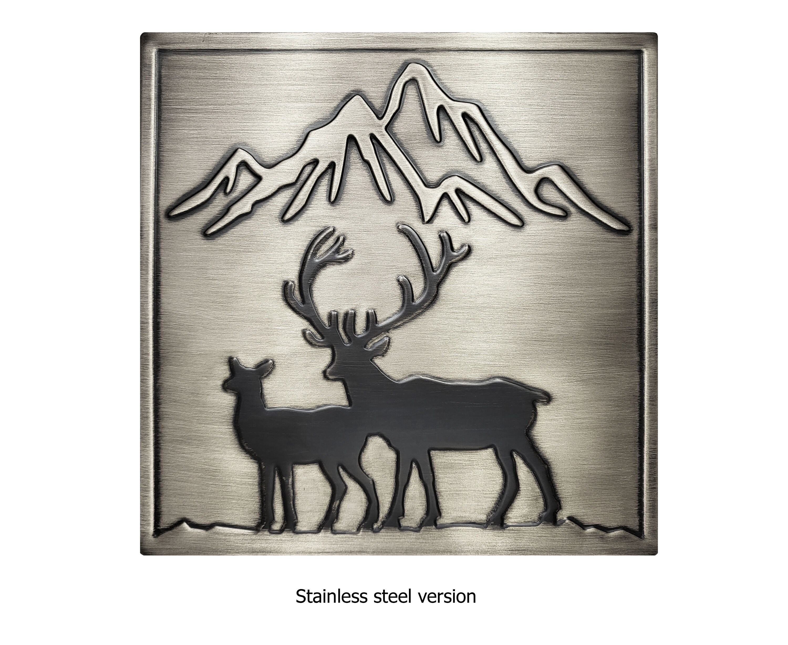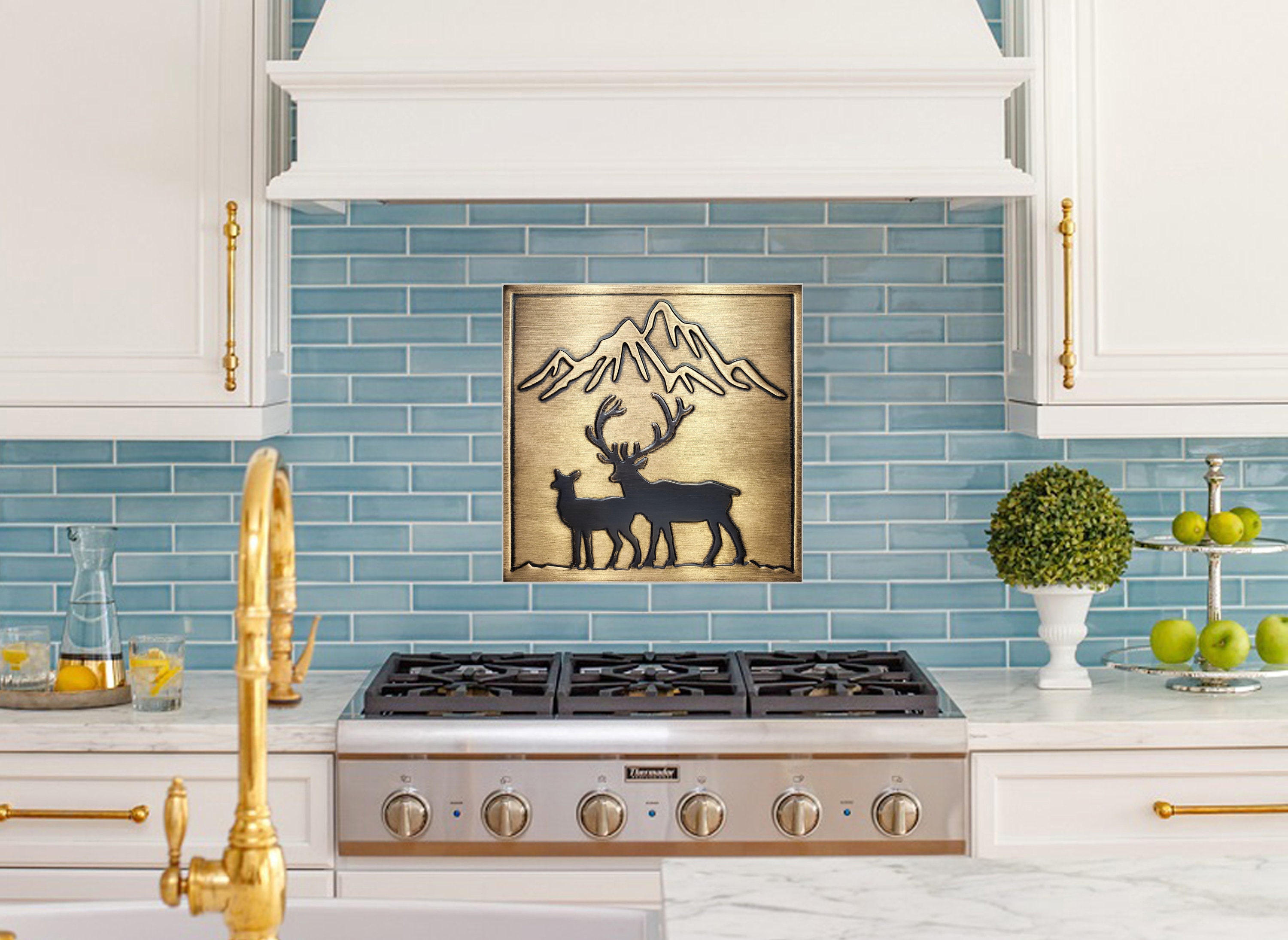 Deer and mountains - 100 % Copper, Brass or Stainless Steel, Handmade metal wall art, kitchen tile, accent kitchen tile, backsplash