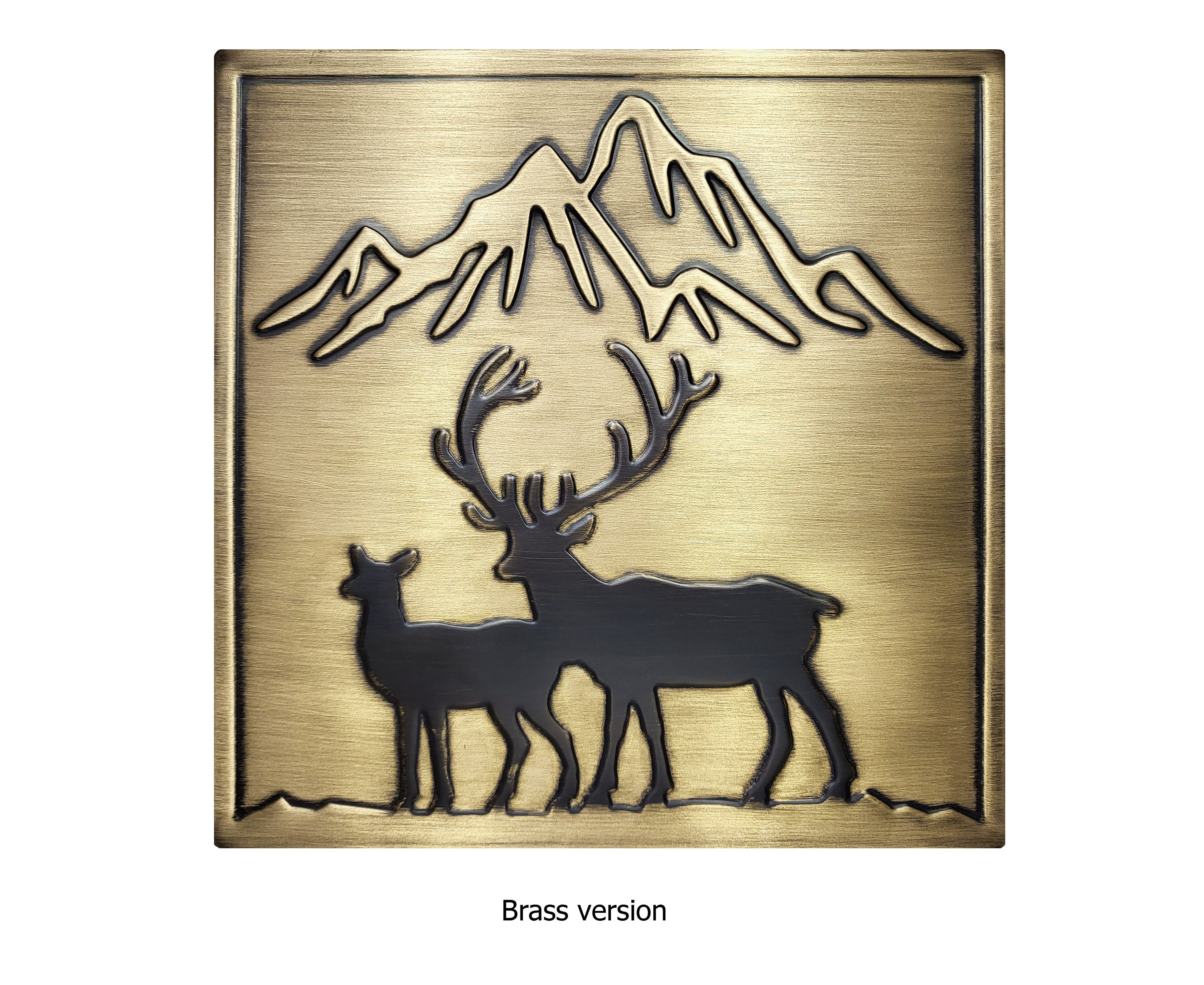 Deer, mountains - Handmade 100% Copper, Brass or Stainless Steel Tile