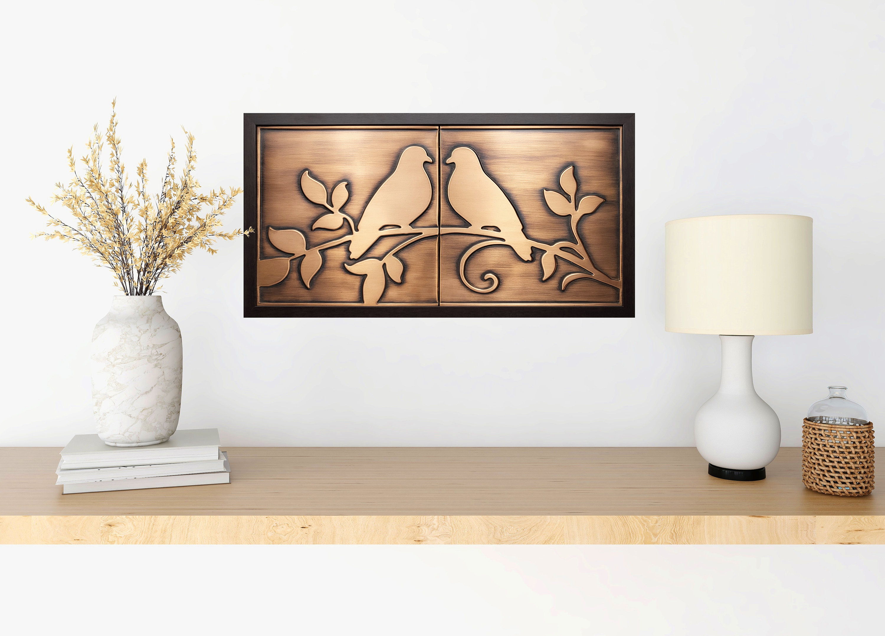 Love Birds Wall Art Gift β Framed Copper or Steel Tile Decor β Handmade Anniversary or Wedding Gift for Her β Ready to Hang Romantic Decor