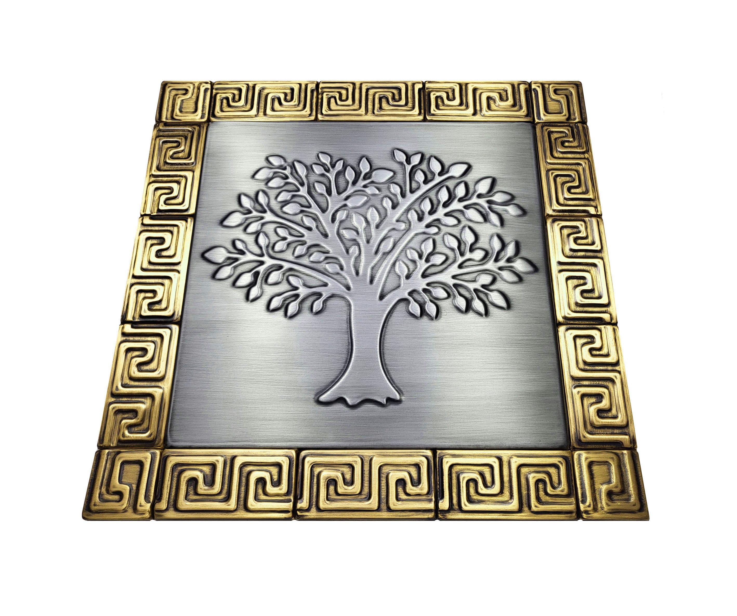 Brass Accented Stainless Steel Tree of Life - Luxury Kitchen Backsplash Tile