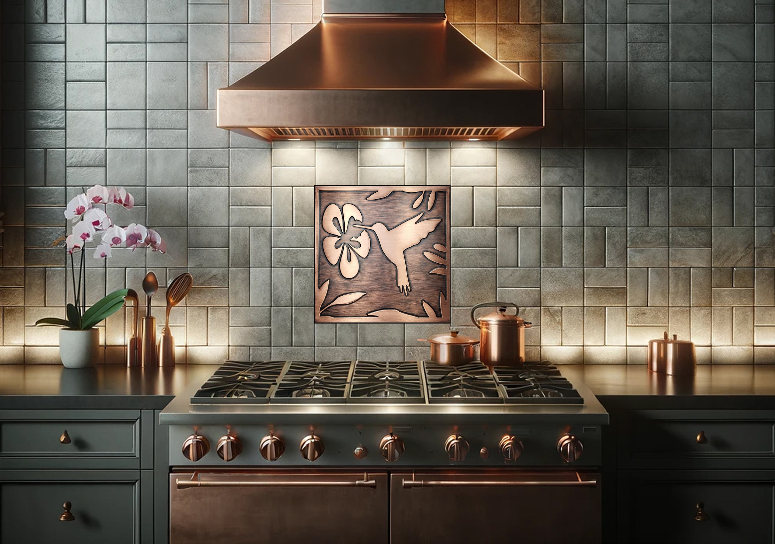 Hummingbird, 100% Copper Tile, metal wall art, wall tile, kitchen tile, rustic, art deco, accent kitchen tile, backsplash