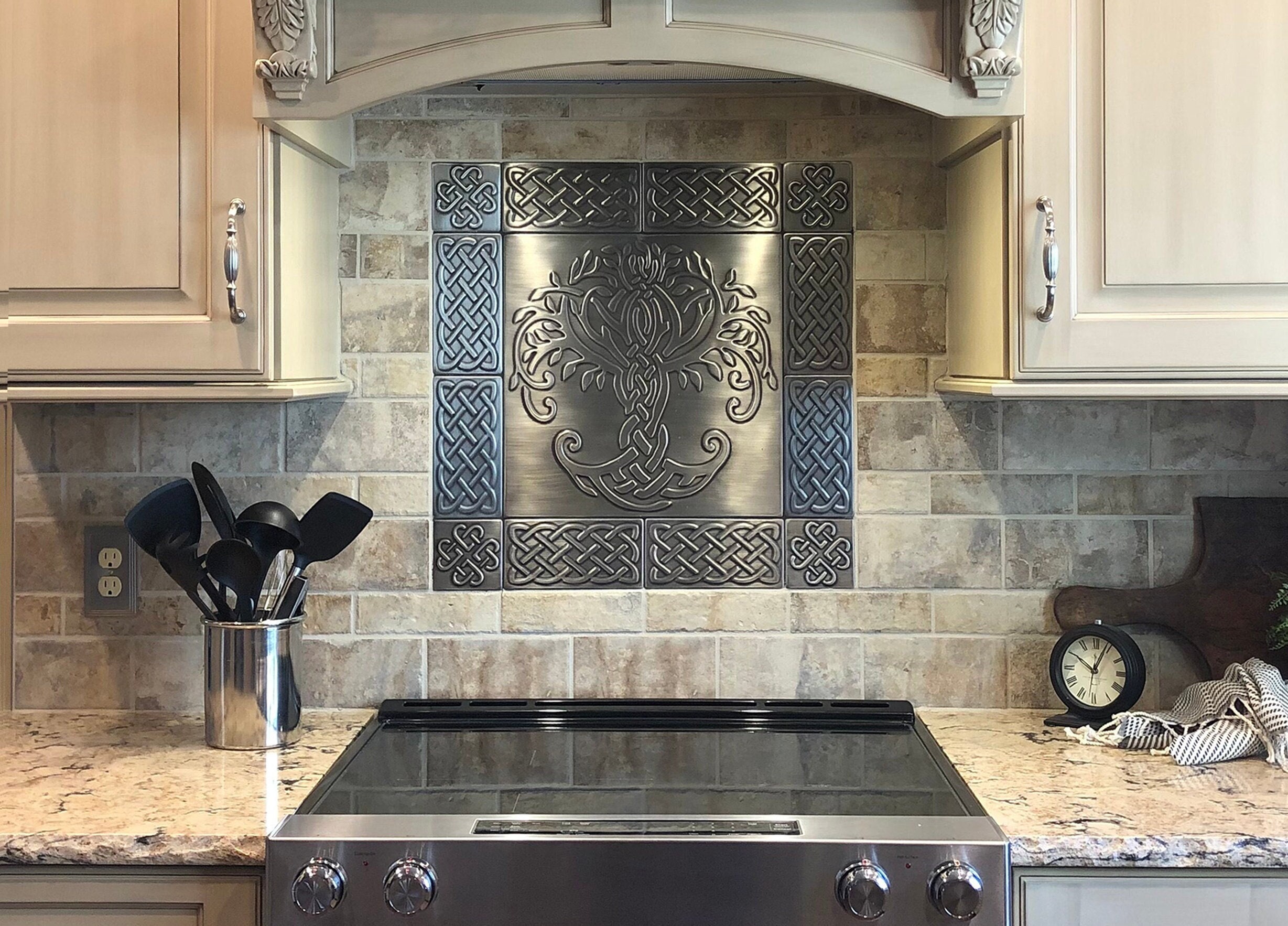 This stunning copper backsplash featuring the iconic Celtic Tree of Life is not only a centerpiece of art but also a masterpiece of craftsmanship. To ensure every piece complements your unique style and space, we offer a variety of material options and finishes: