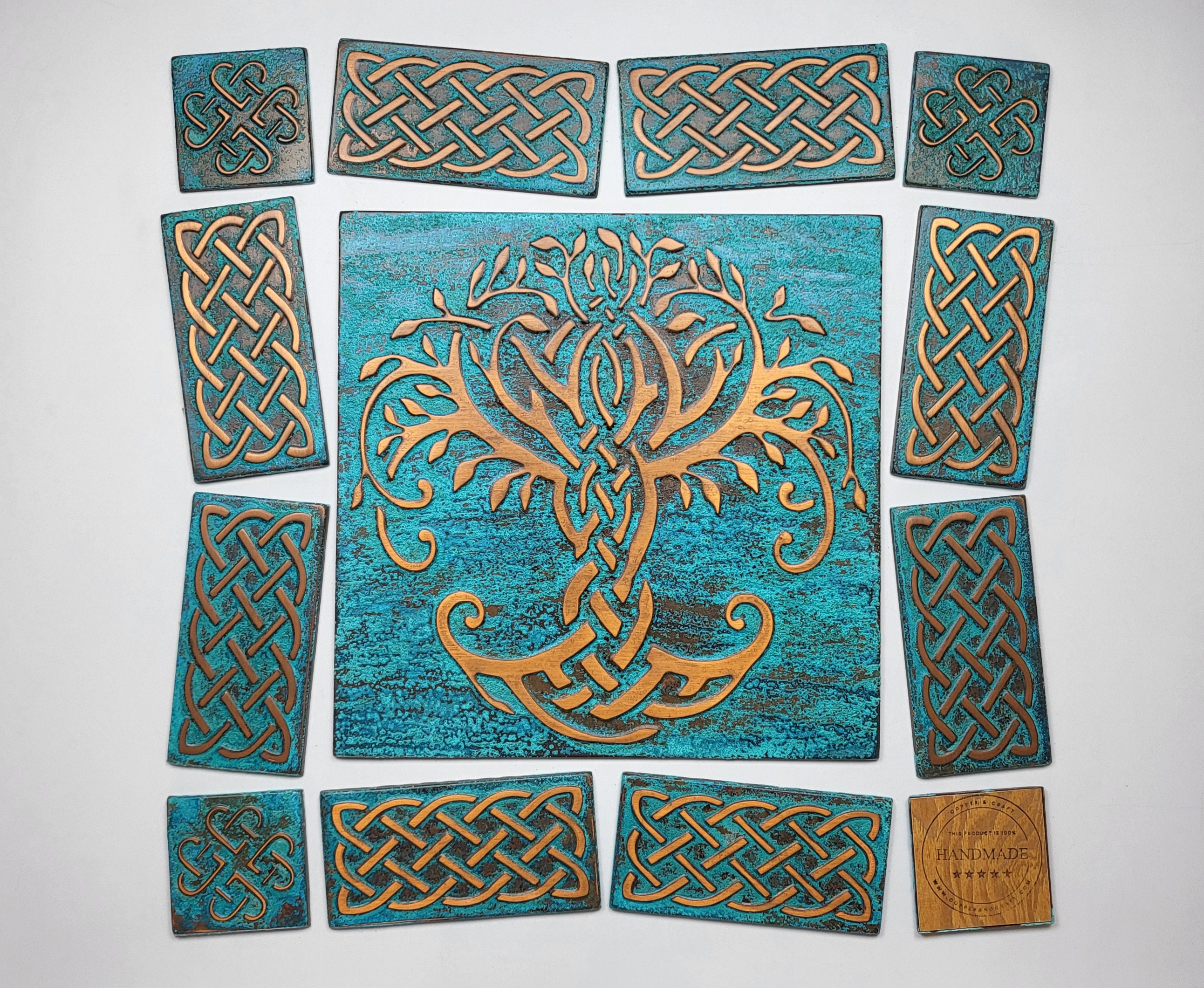 Celtic Tree of Life – a set of 13 handcrafted tiles - 100% Copper, Stainless Steel or Brass