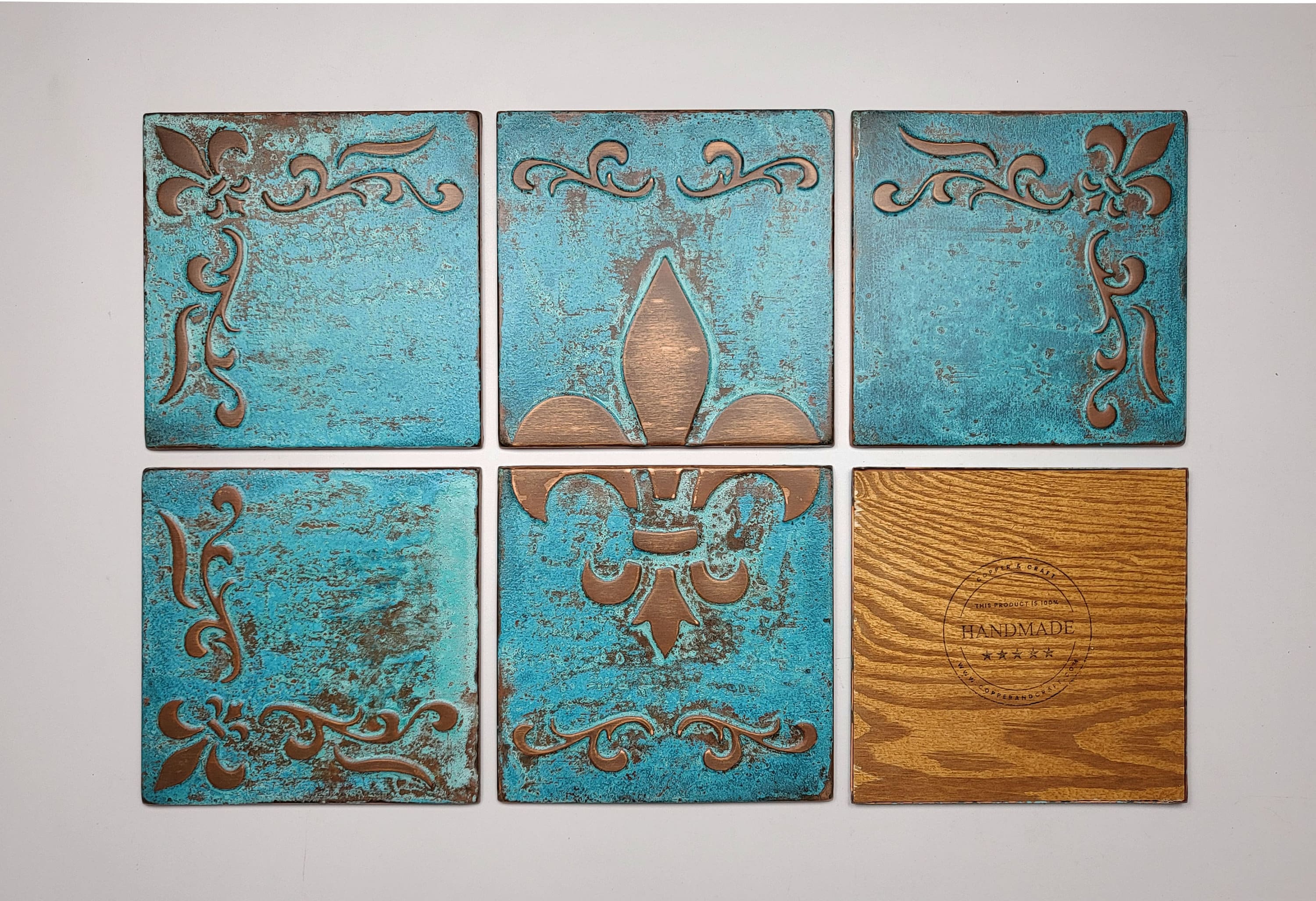 Fleur de lis - Set of 6 Handmade tiles - 100% Copper, Stainless Steel or Brass