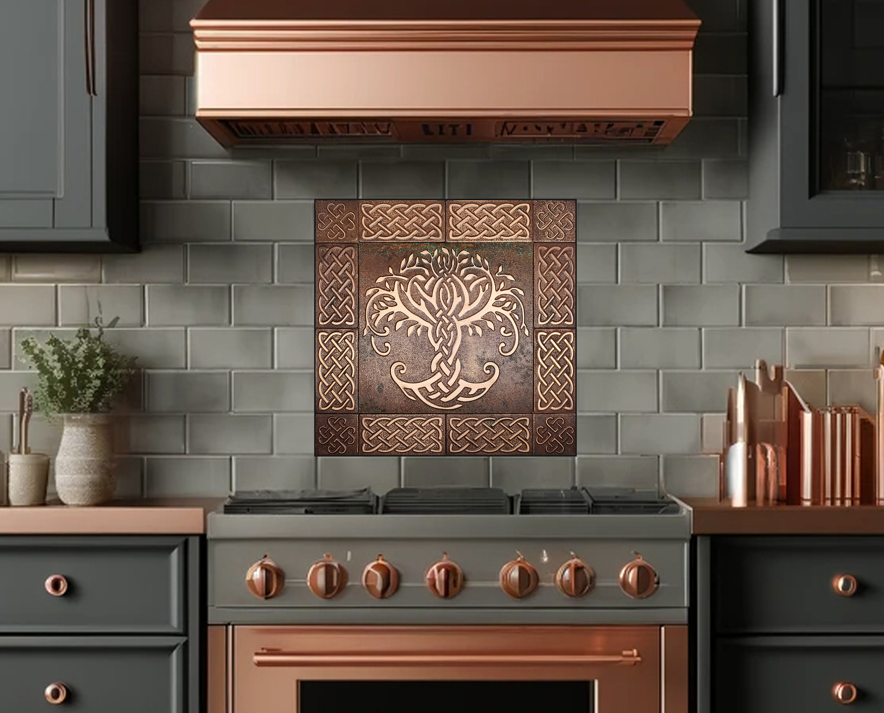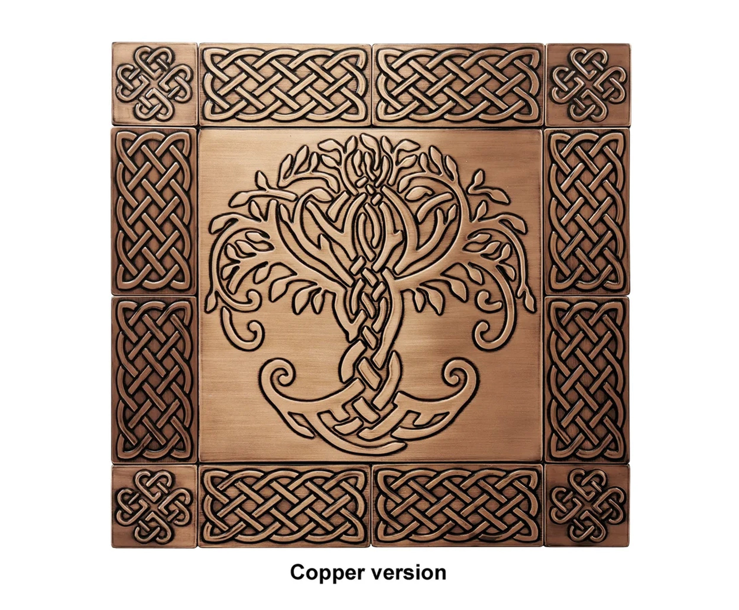 Tree of Life Backsplash Tile β Celtic Metal Tile Wall Art β Copper, Brass or Steel Kitchen Decor β Handmade Nature Inspired Tile Set