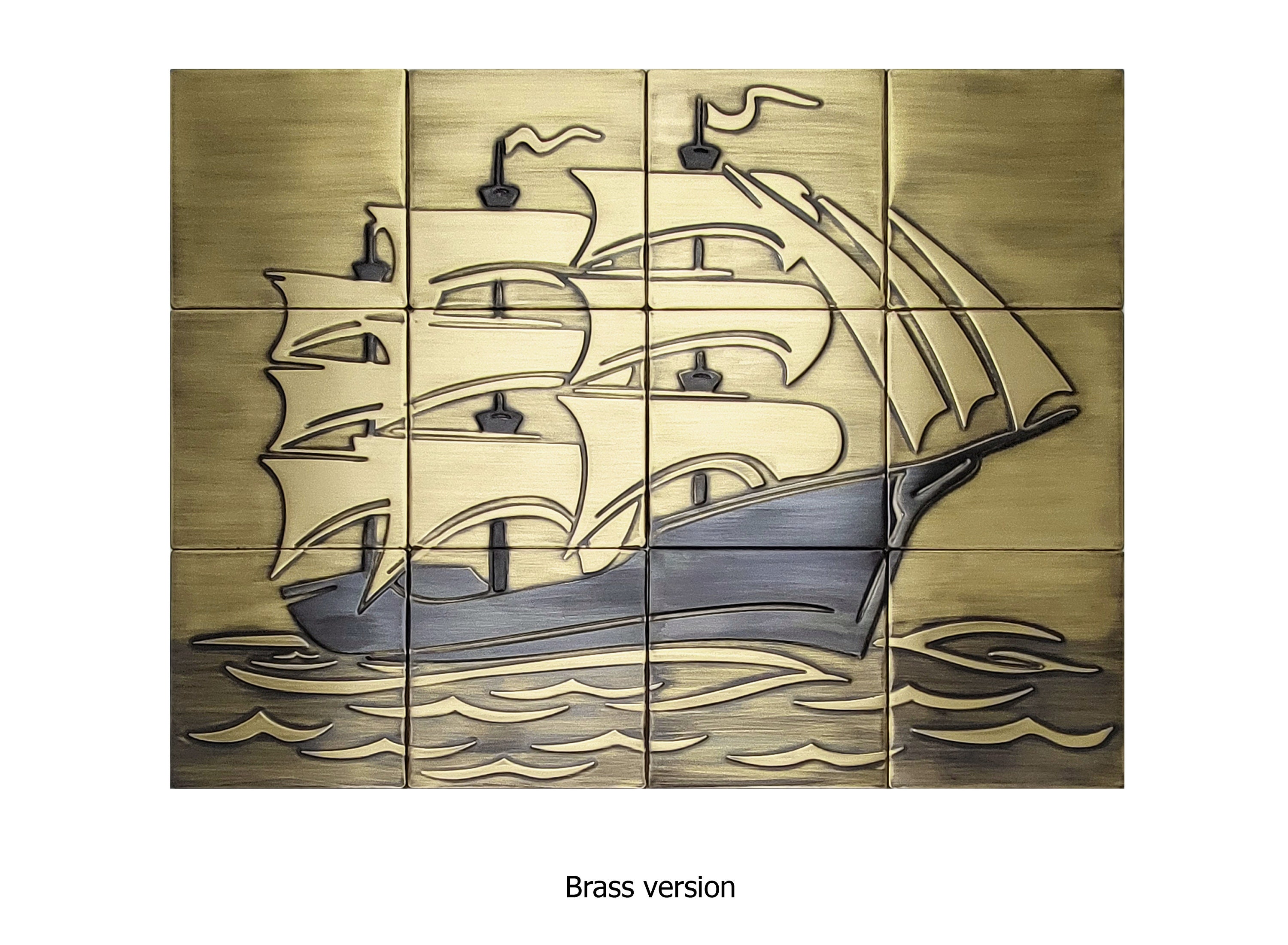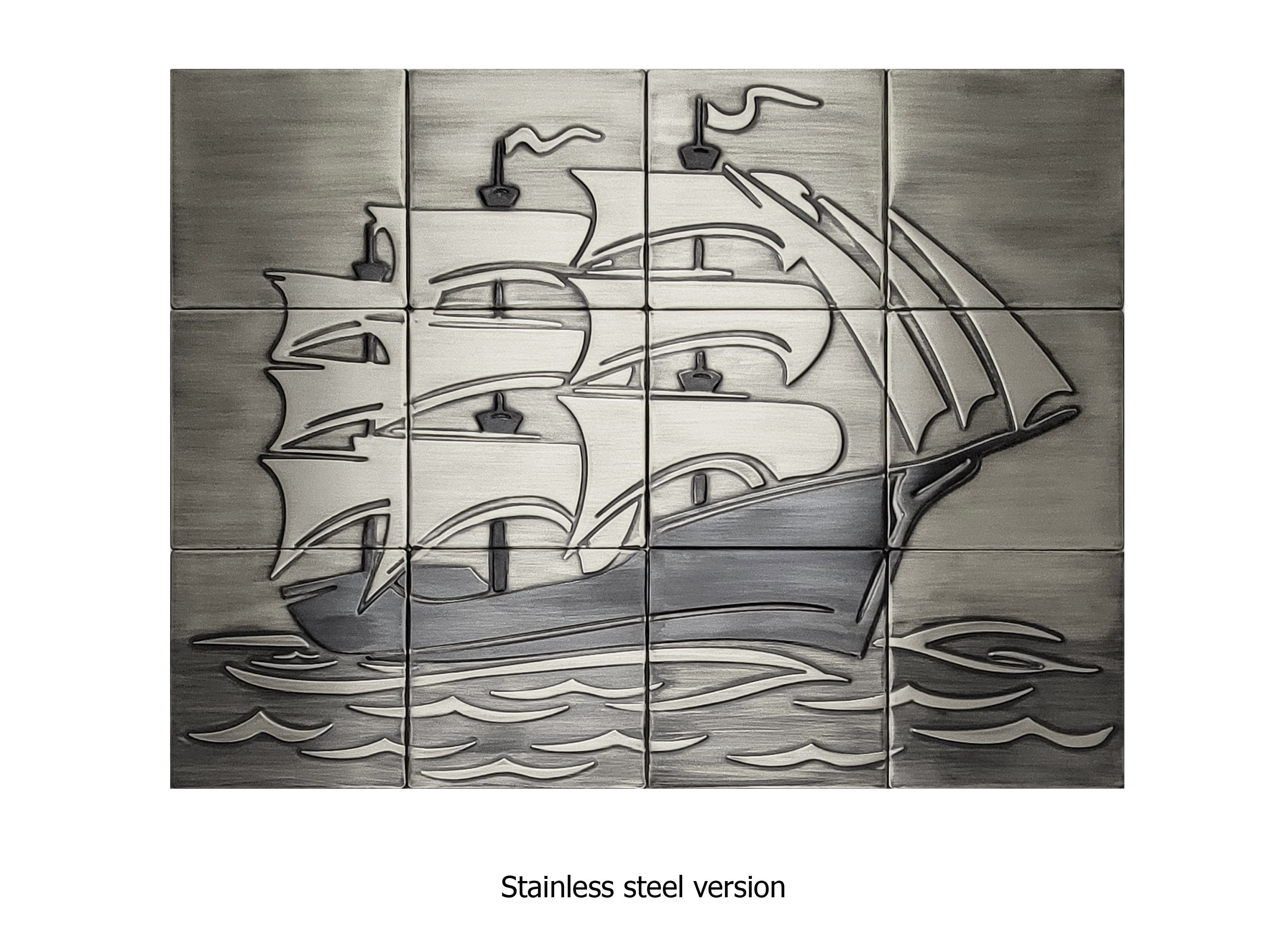 Welcome to a realm where craftsmanship dances with maritime grandeur, where each tile tells a tale of seafaring legacy and artisanal finesse. Embrace our world, shaped by artisan Leon's devotion, where the timeless beauty of a sailing vessel comes to life across twelve exquisite square tiles. Prepare to embark on a journey that transcends mere décor, turning your space into a haven of sophistication and maritime nostalgia.