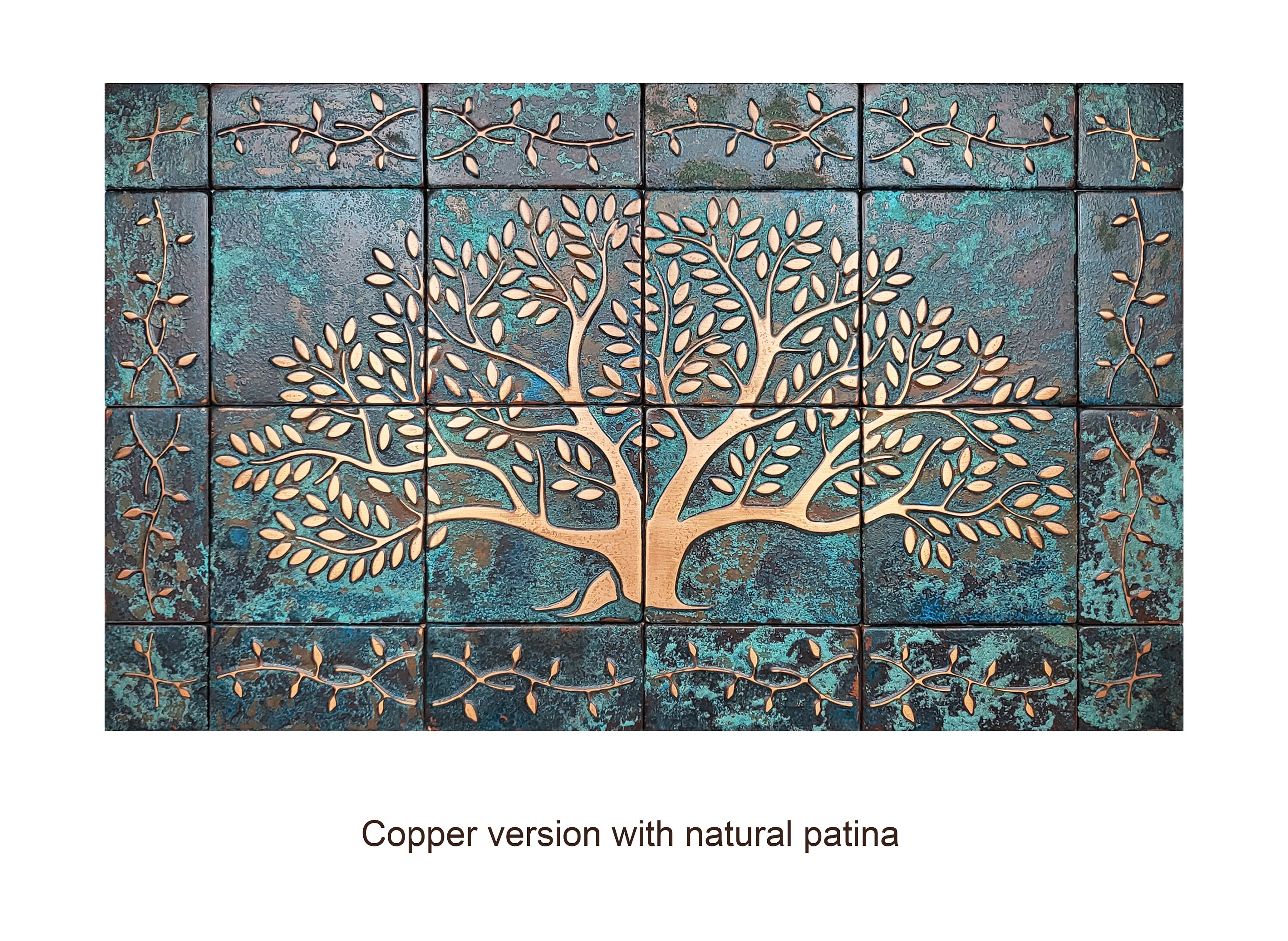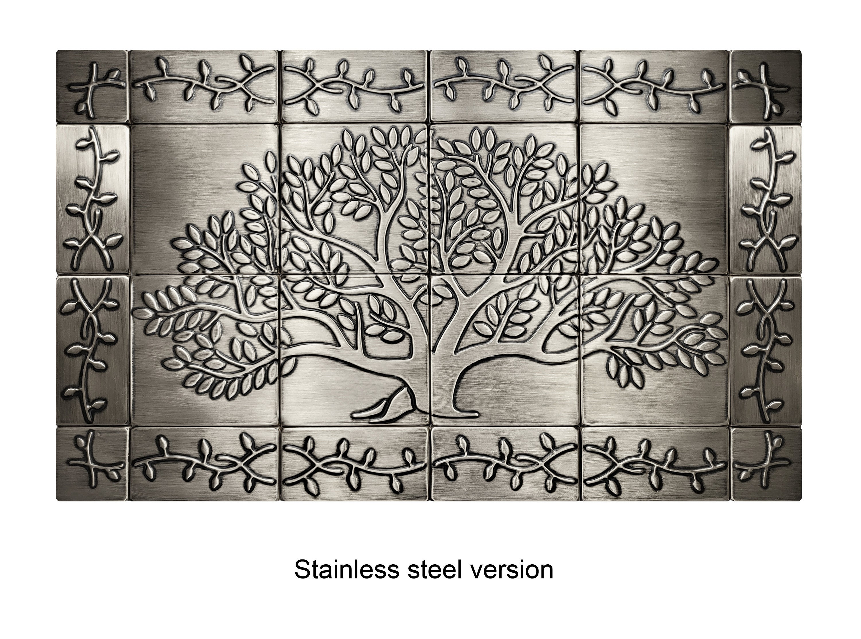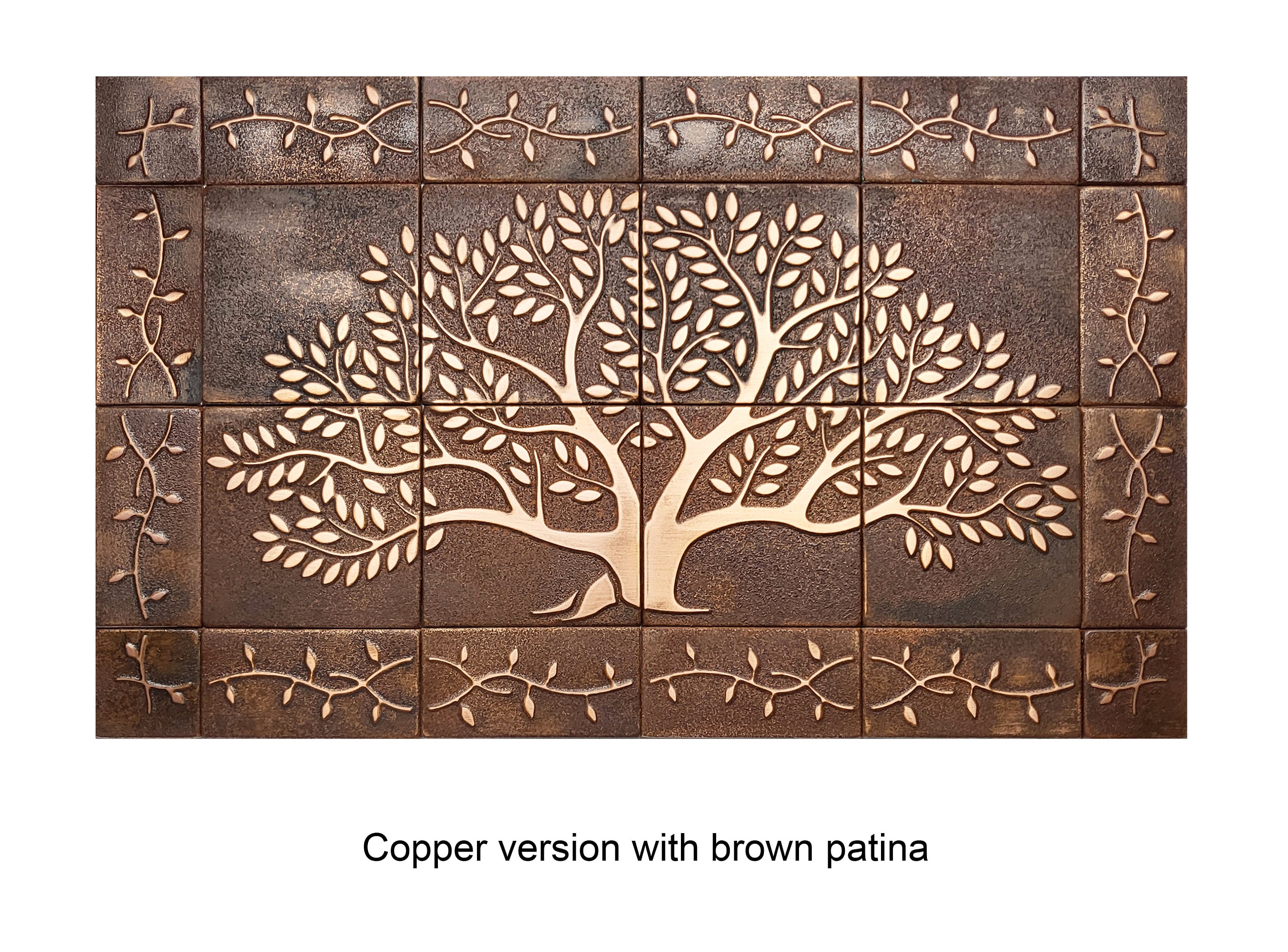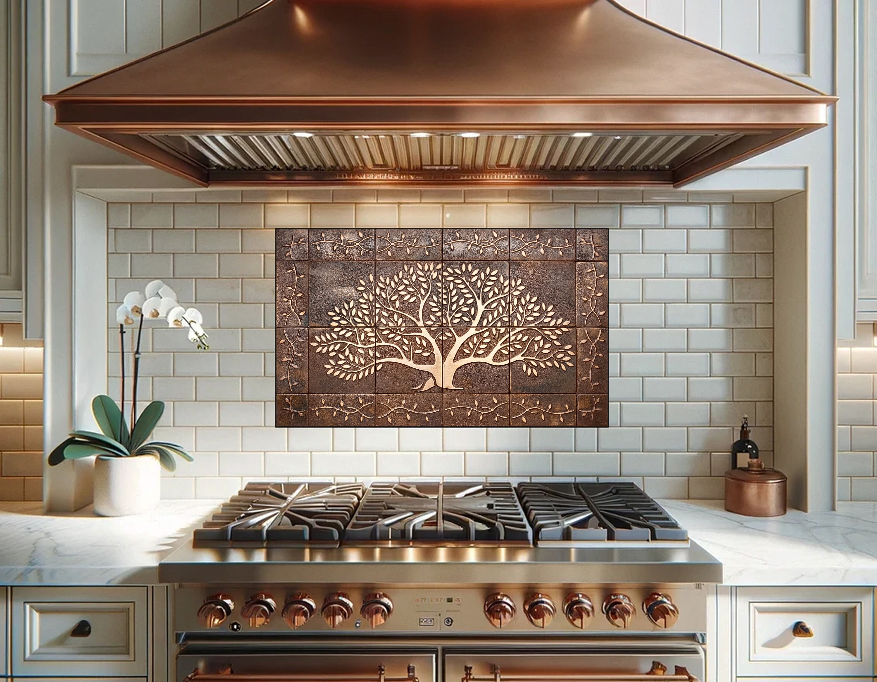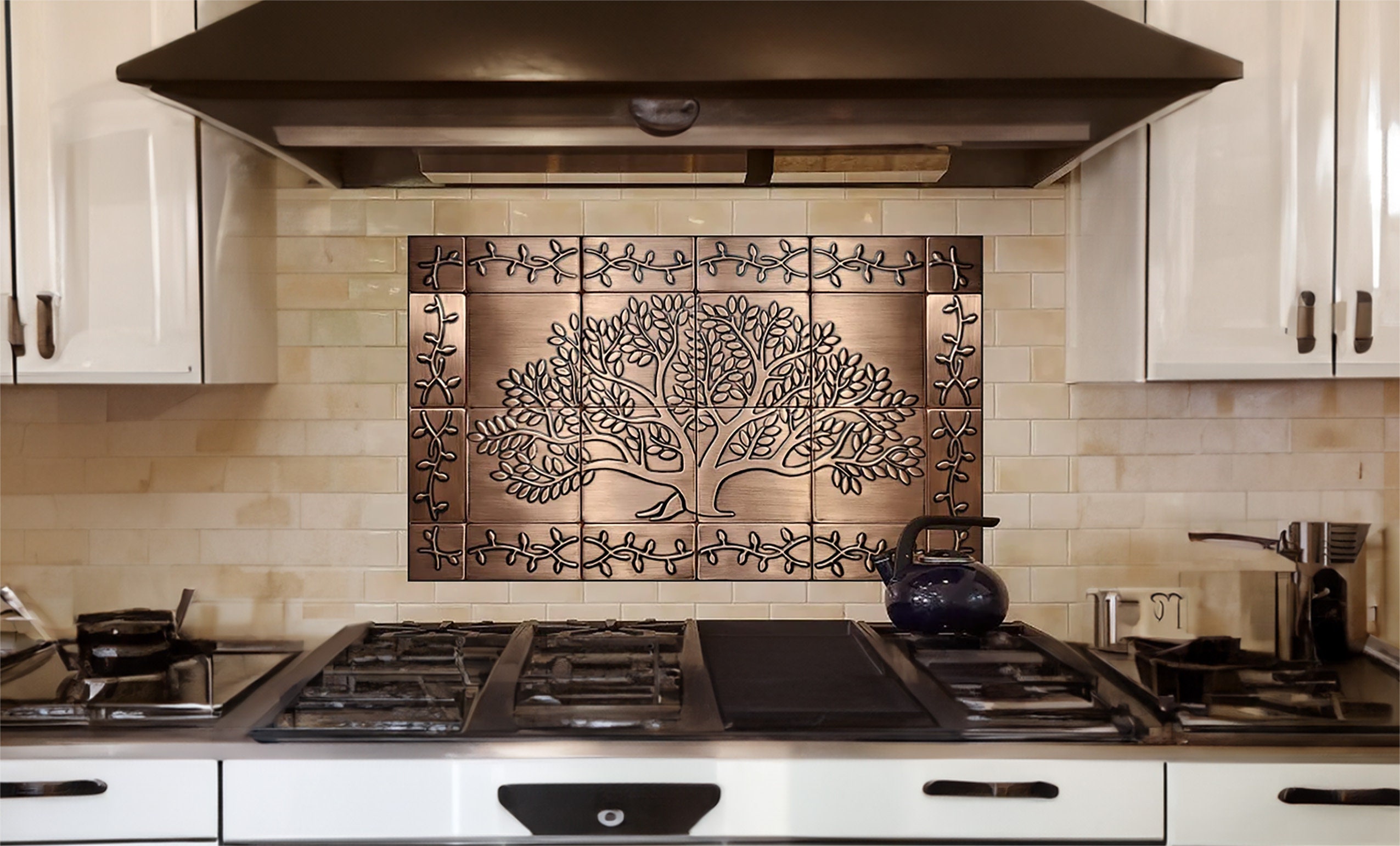 ๐ณ Tree of Life Backsplash โ Symbolic Artisan Metal Tile Set for Kitchen or Fireplace ๐