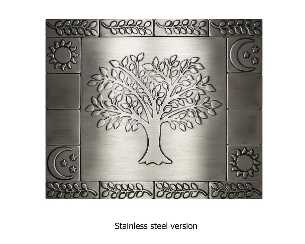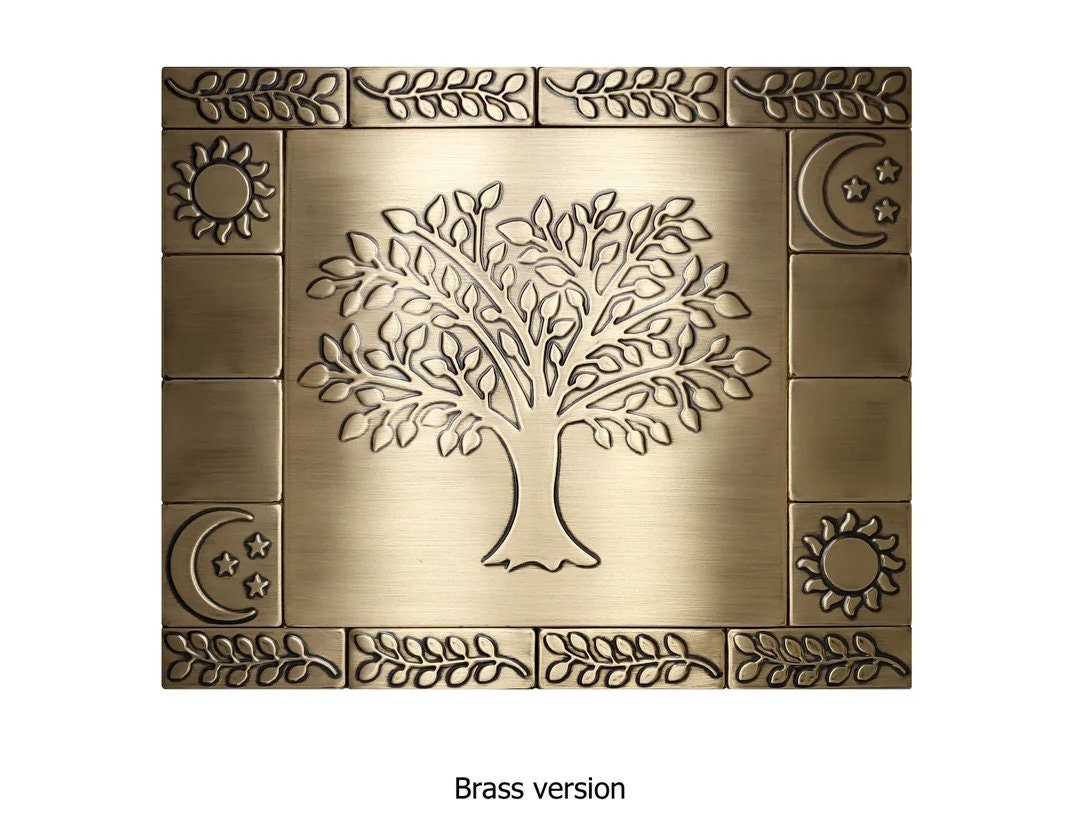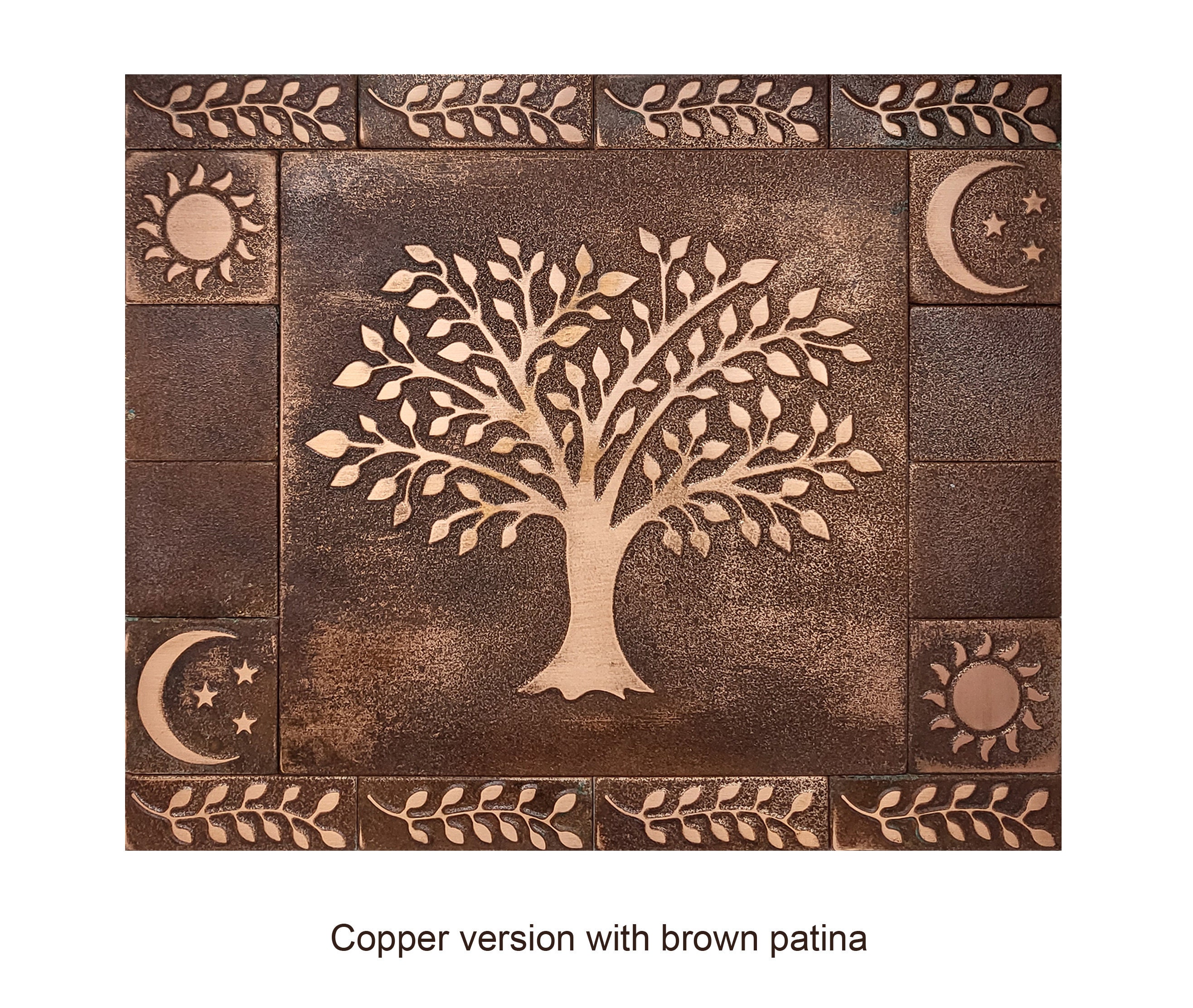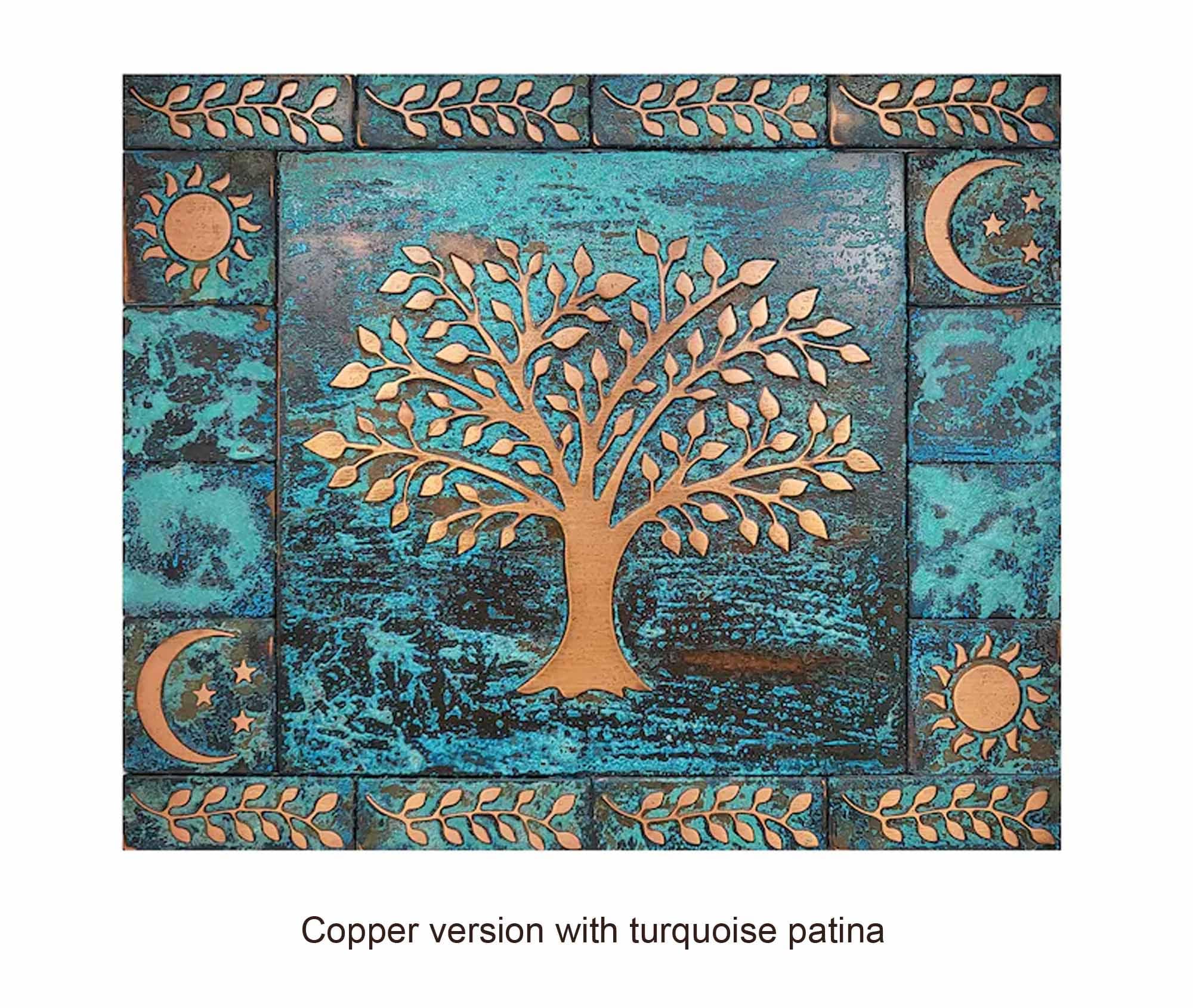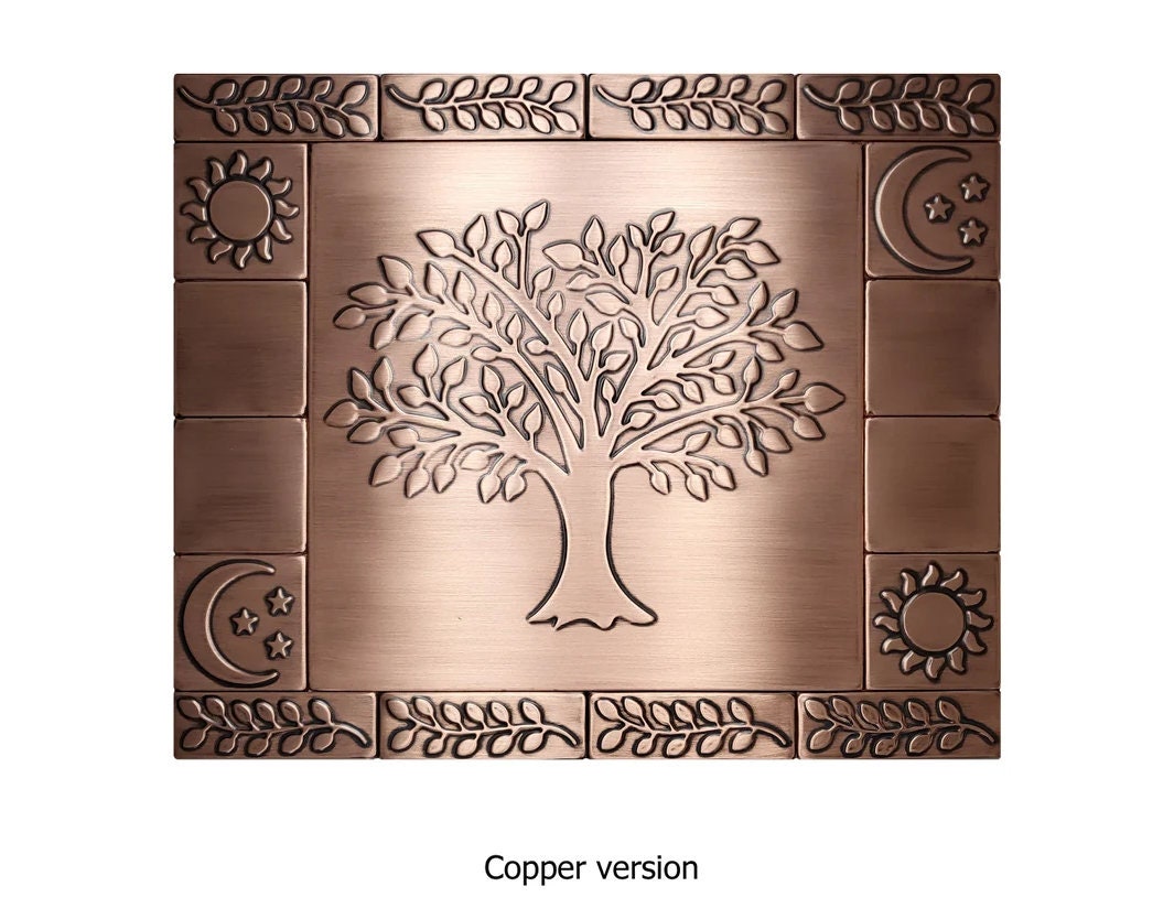 Aged, vintage style copper tree of life backsplash - set of 17 handmade tiles