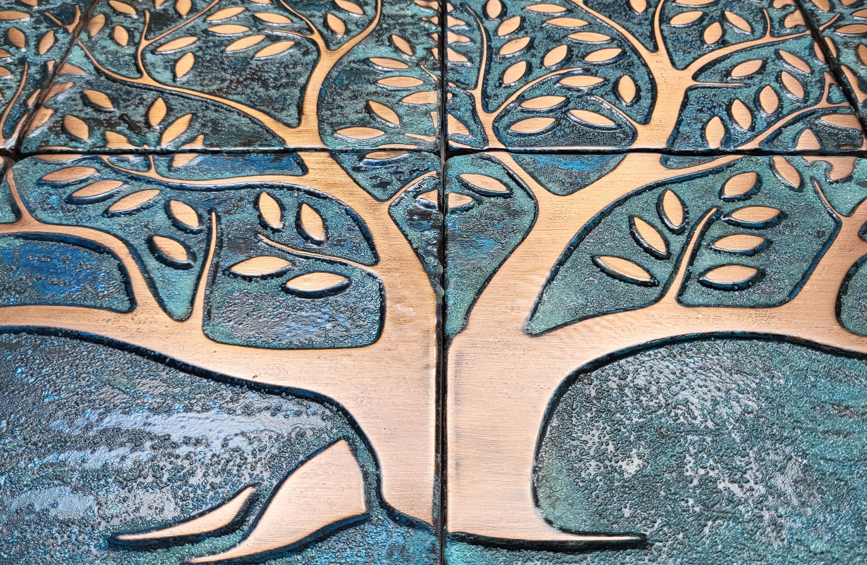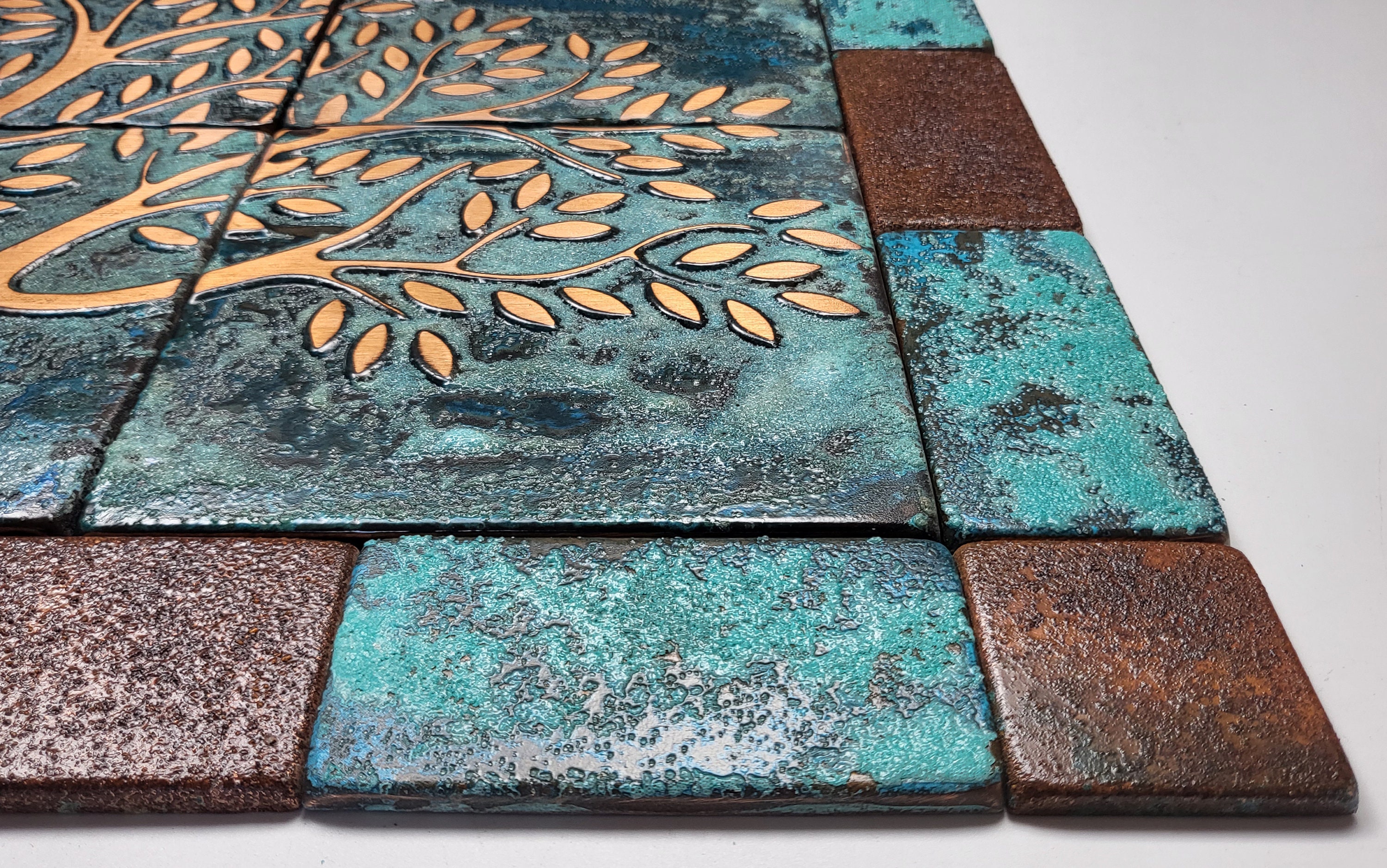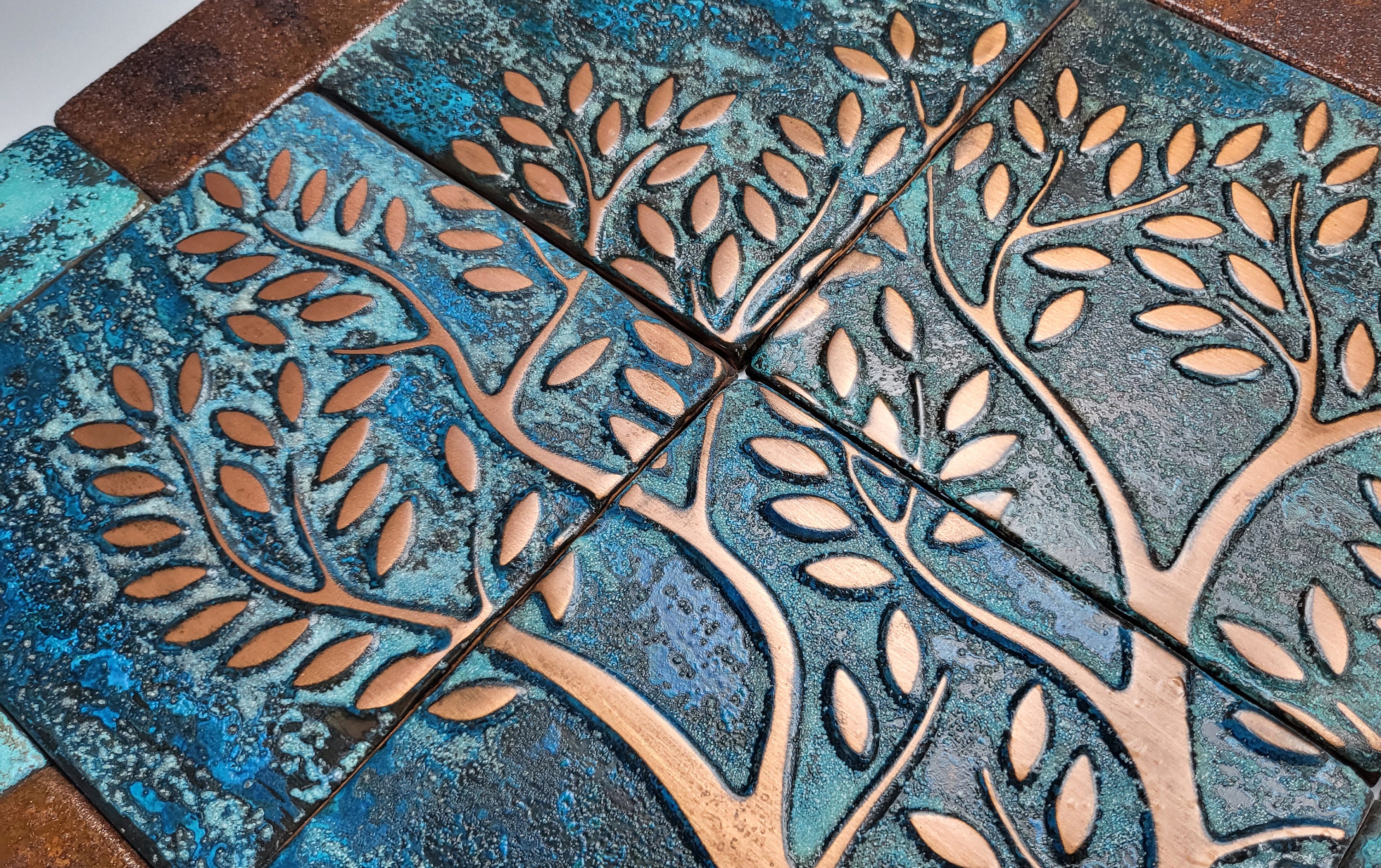 Vintage style real copper patina tree of life tiles
