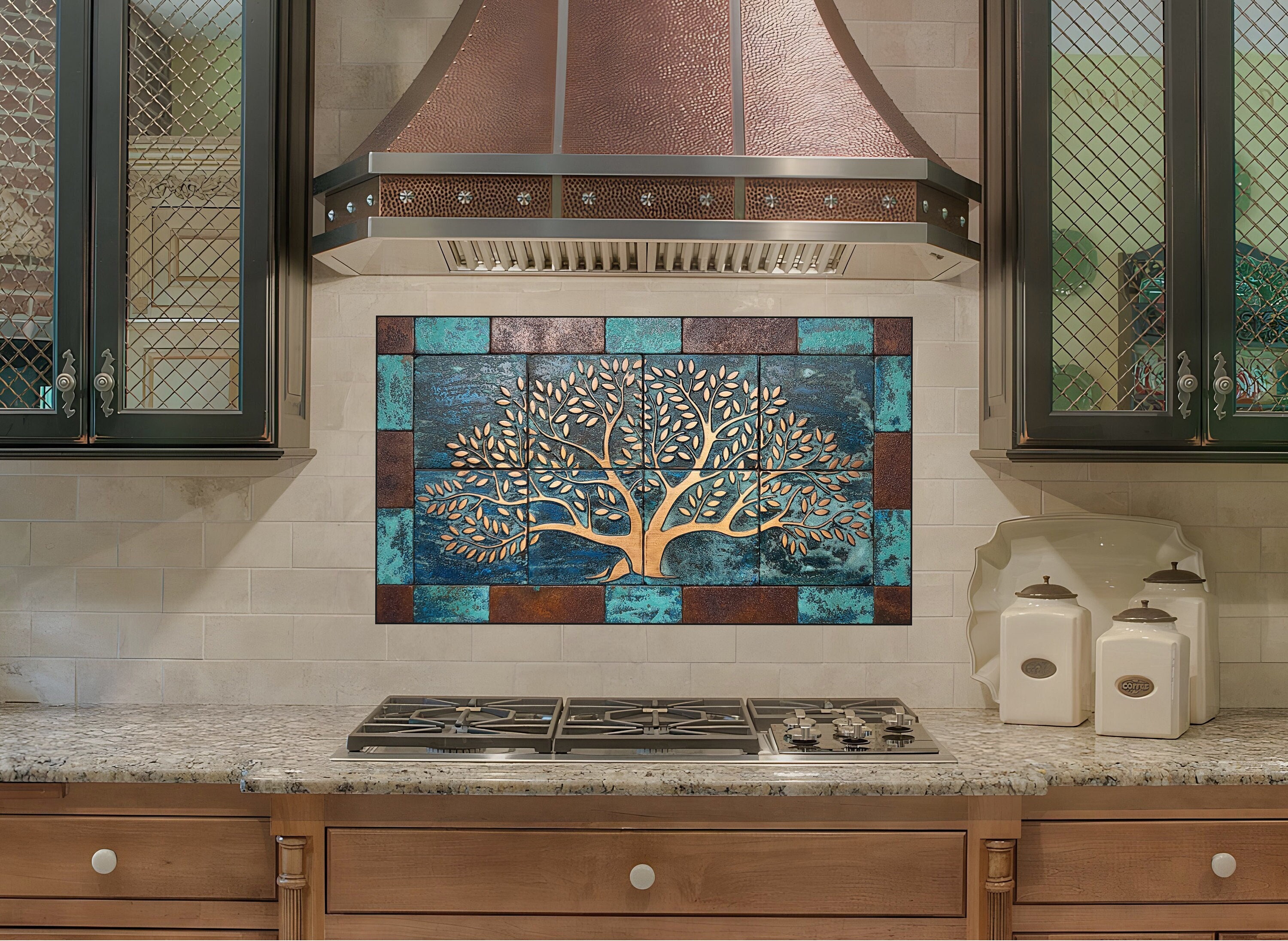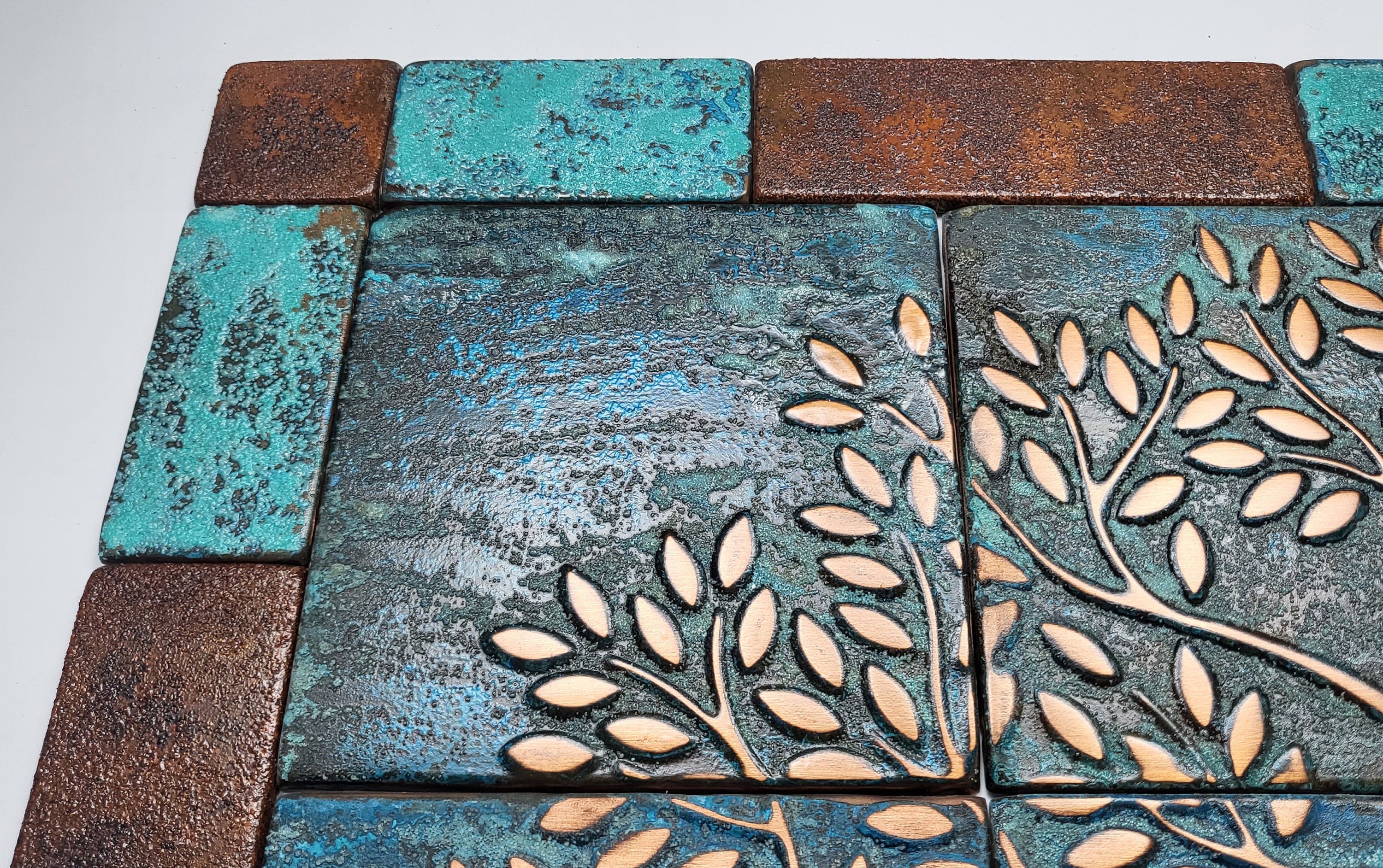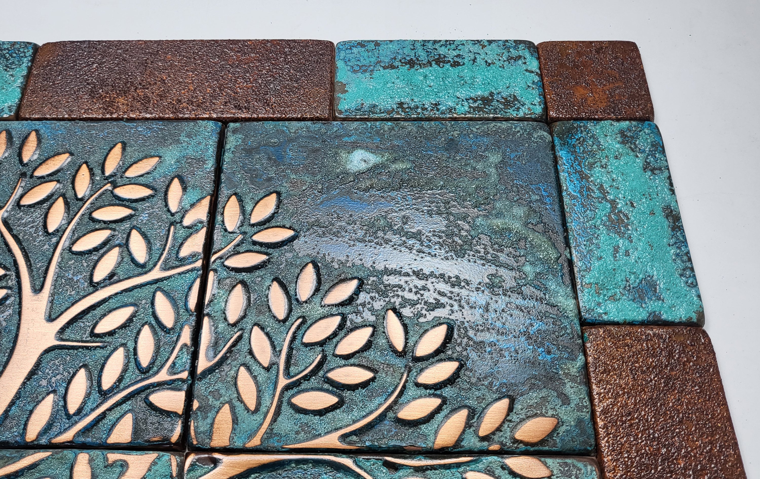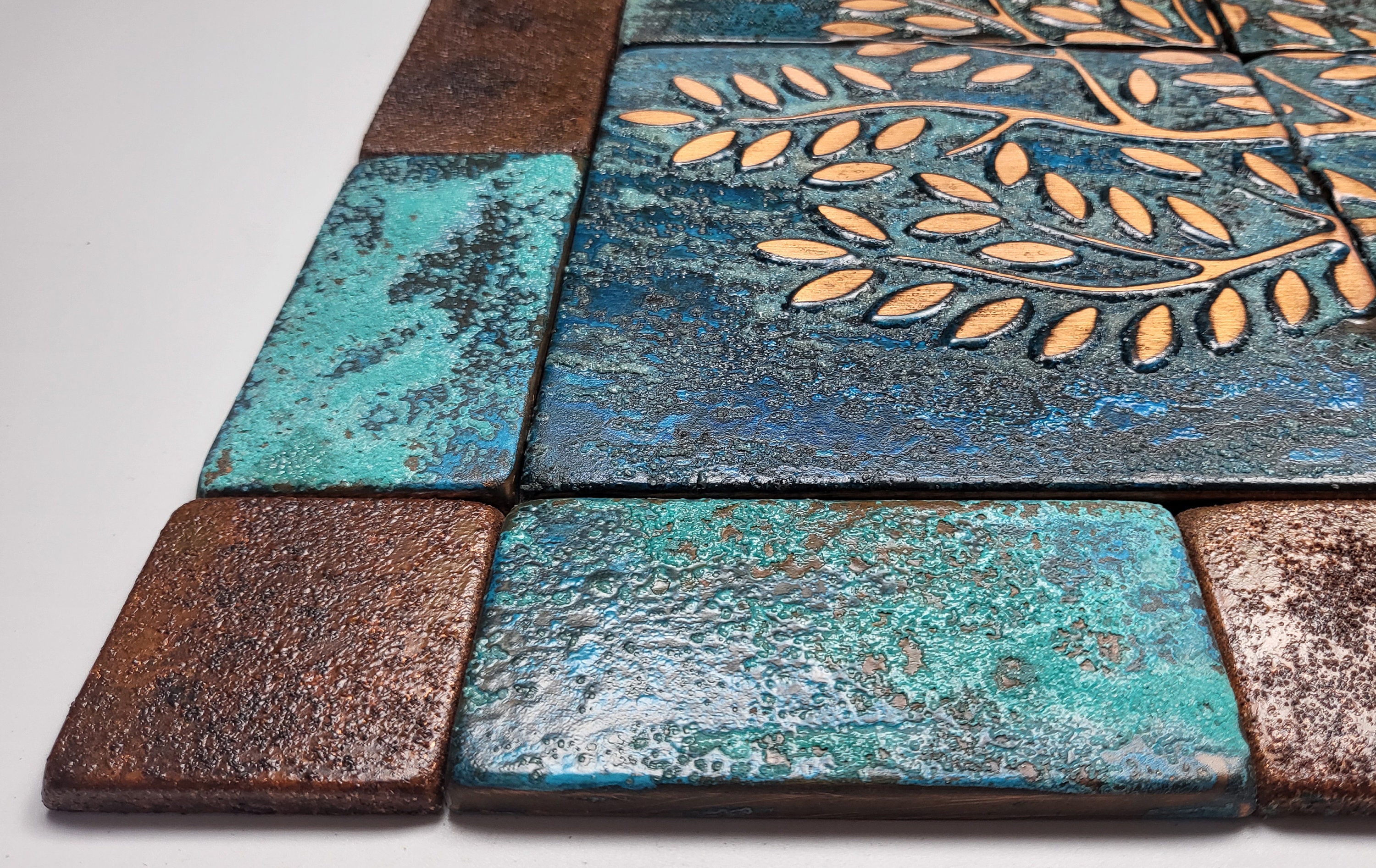 Vintage style real copper patina tree of life tiles