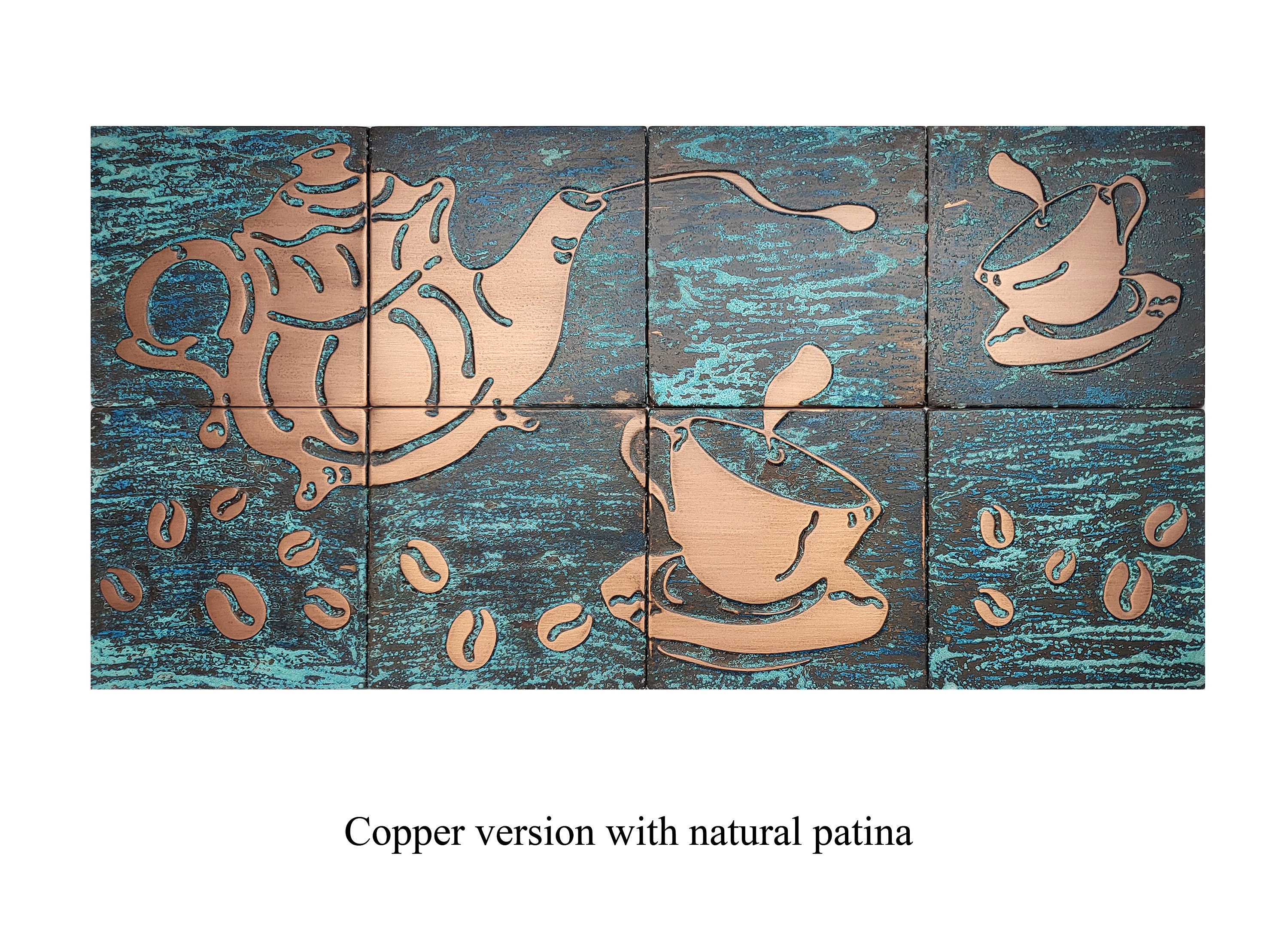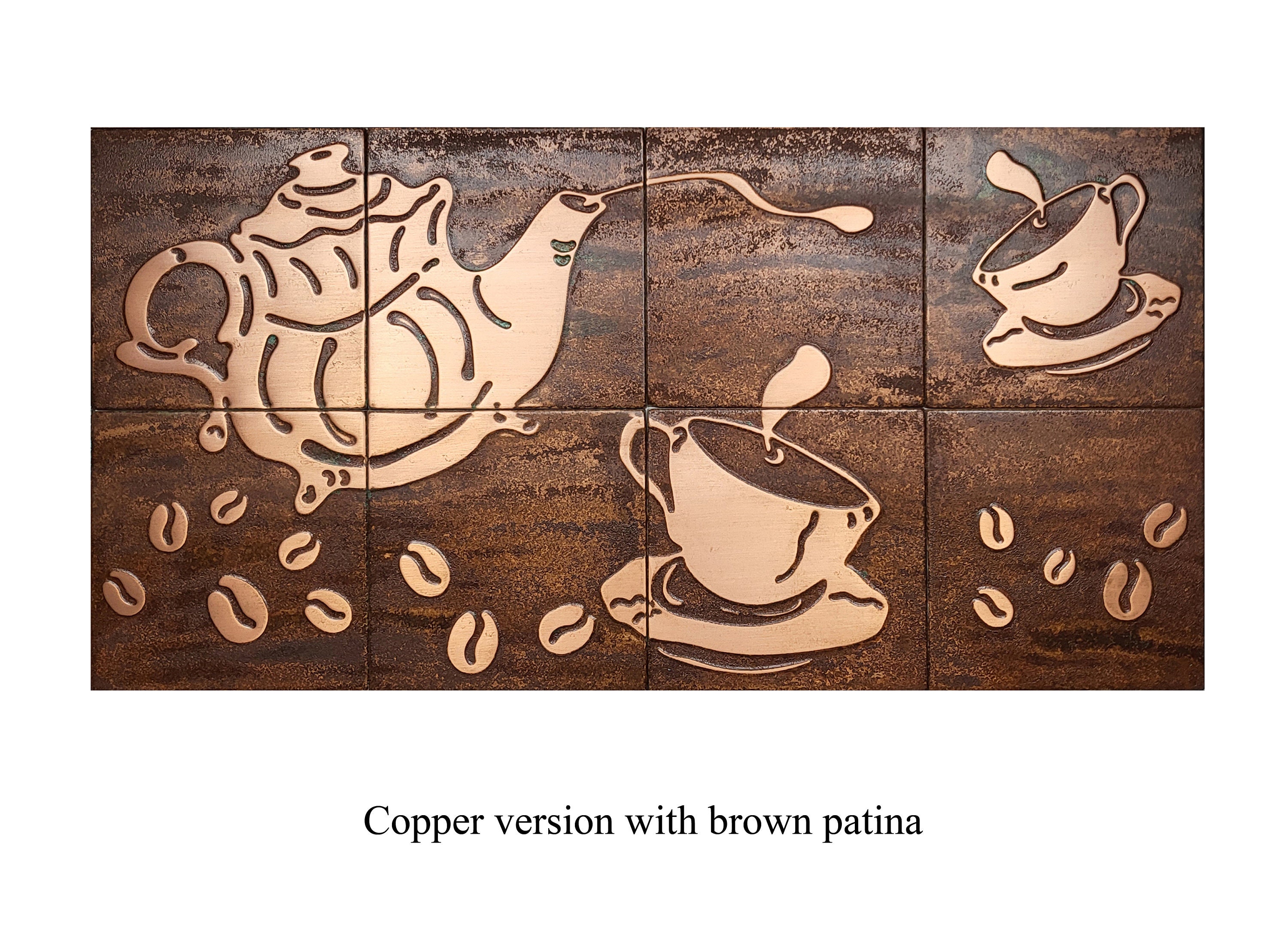 Coffee tiles set - 8 Handmade 100% Copper, Stainless steel or Brass Tiles.