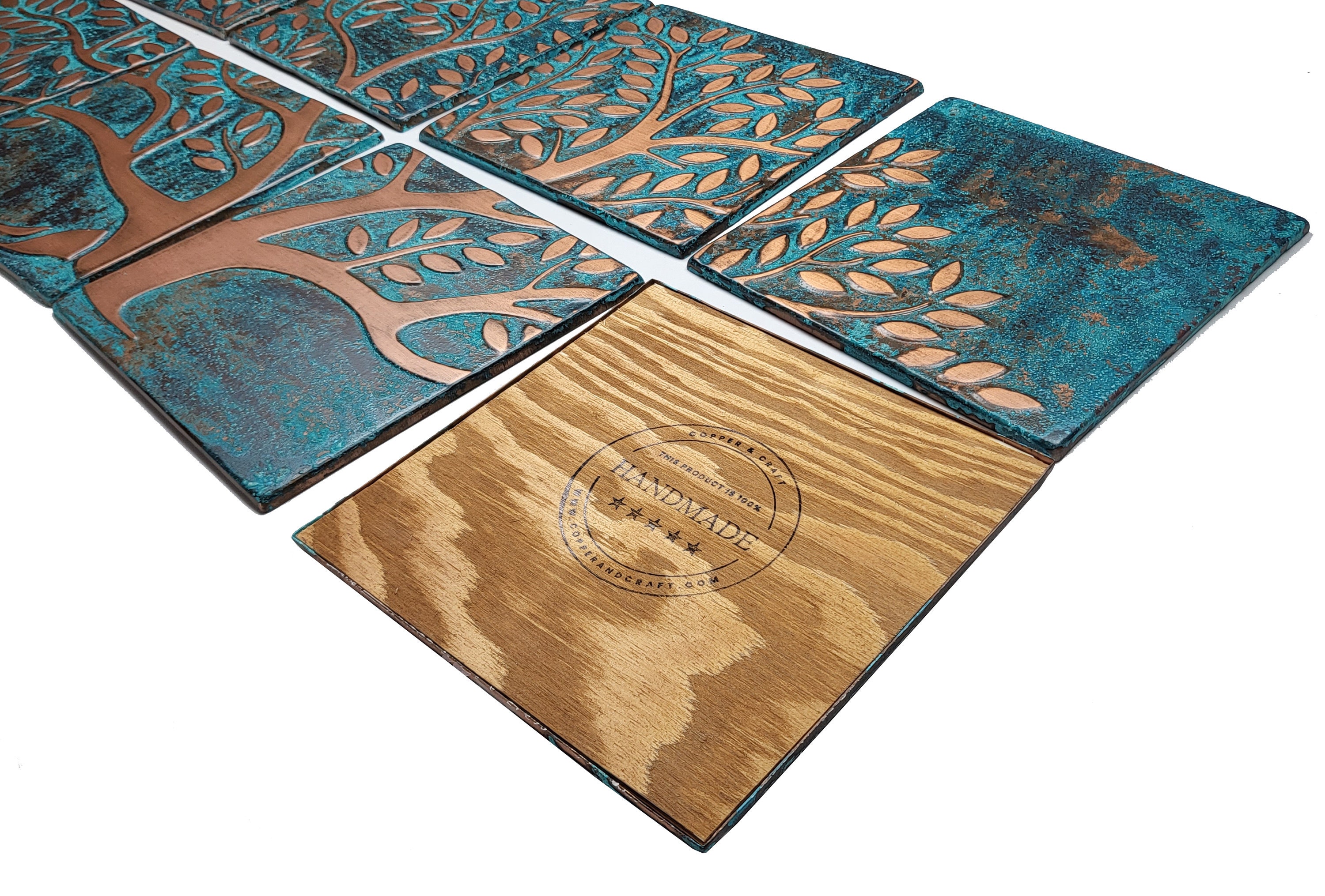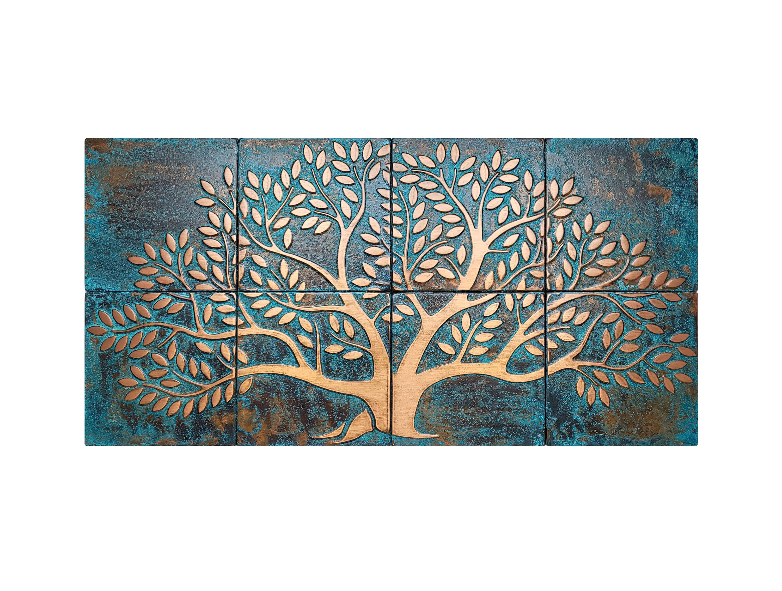 Handmade Tree of Life with Natural Patina - set of 8 tiles