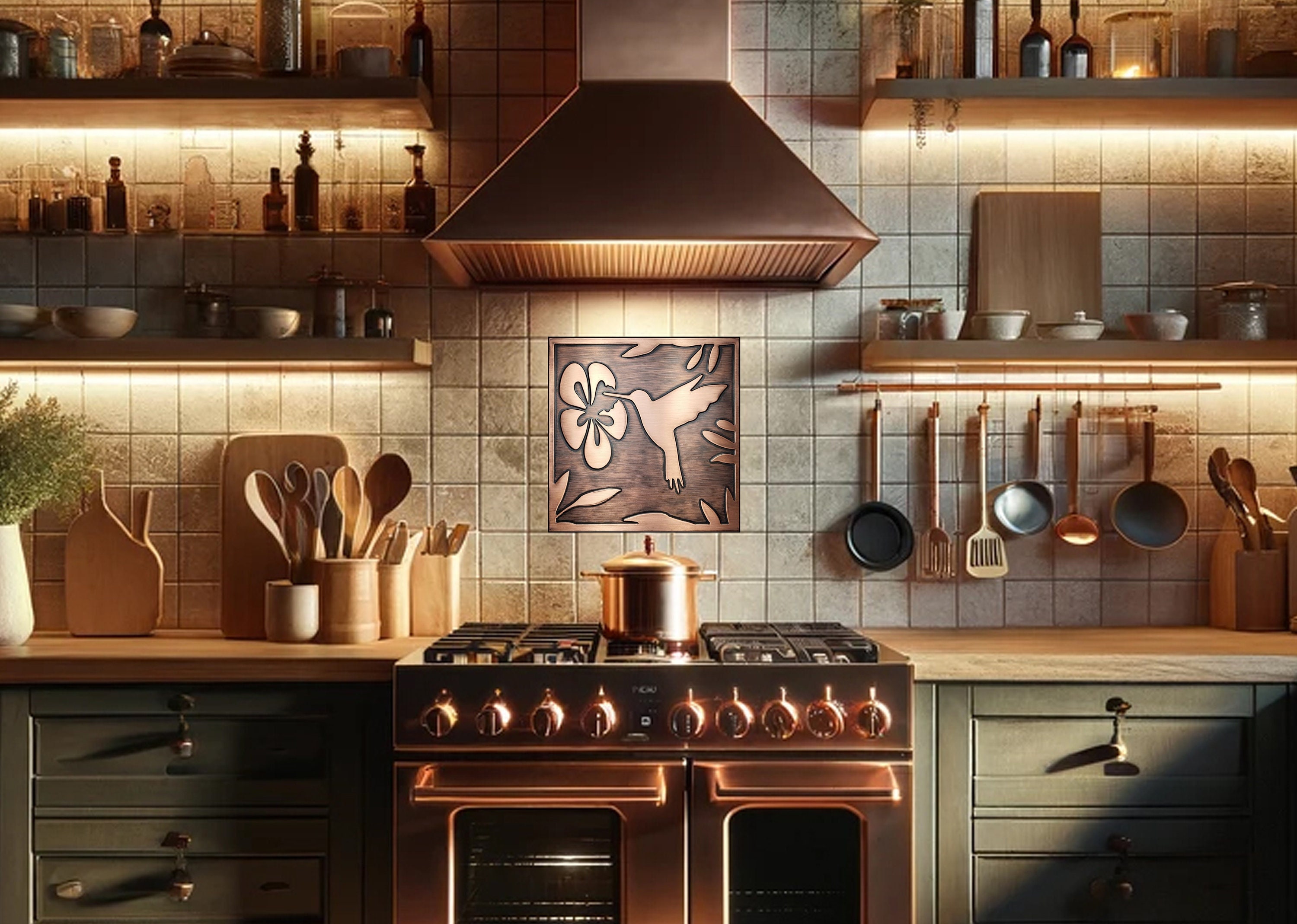 Hummingbird Copper Tile – Handmade Metal Wall Art for Kitchen Backsplash or Accent Decor – Brass, Steel or Aged Copper