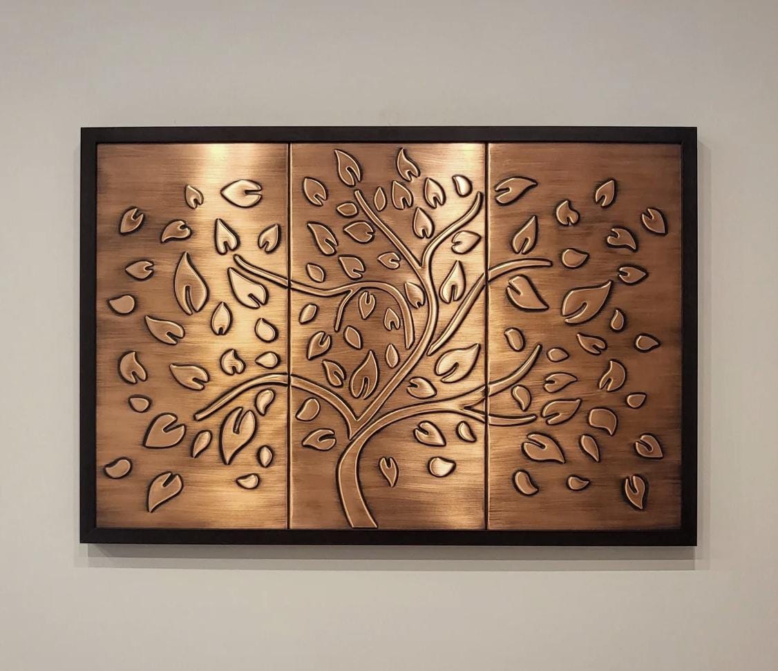 Family Gift – Tree of Life Wall Art in 3 Panels – Handmade Copper Decor for New Home or Housewarming