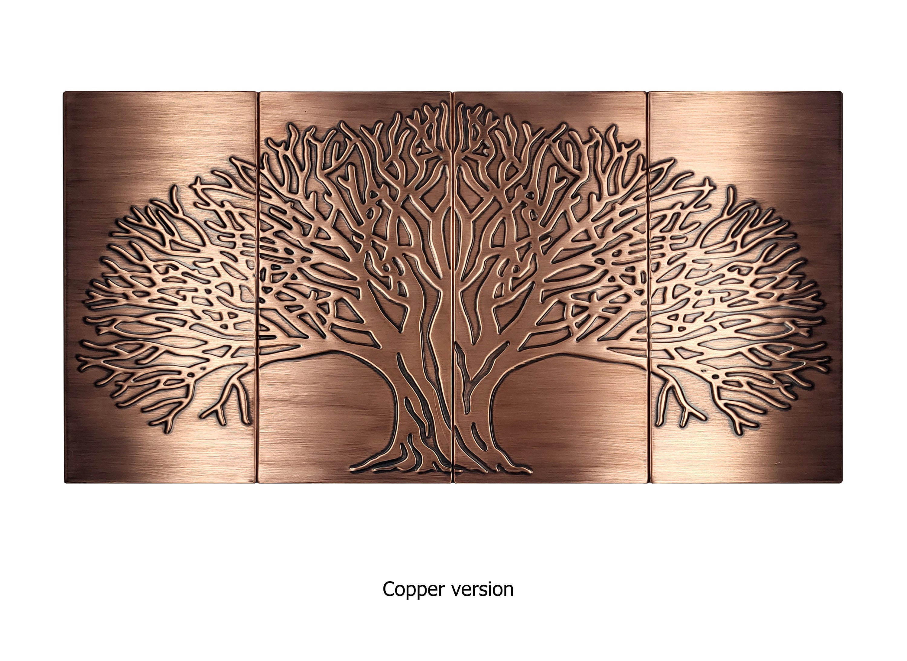 Tree of life - Set of 4 Handmade tiles - 100% Copper, Stainless Steel or Brass.