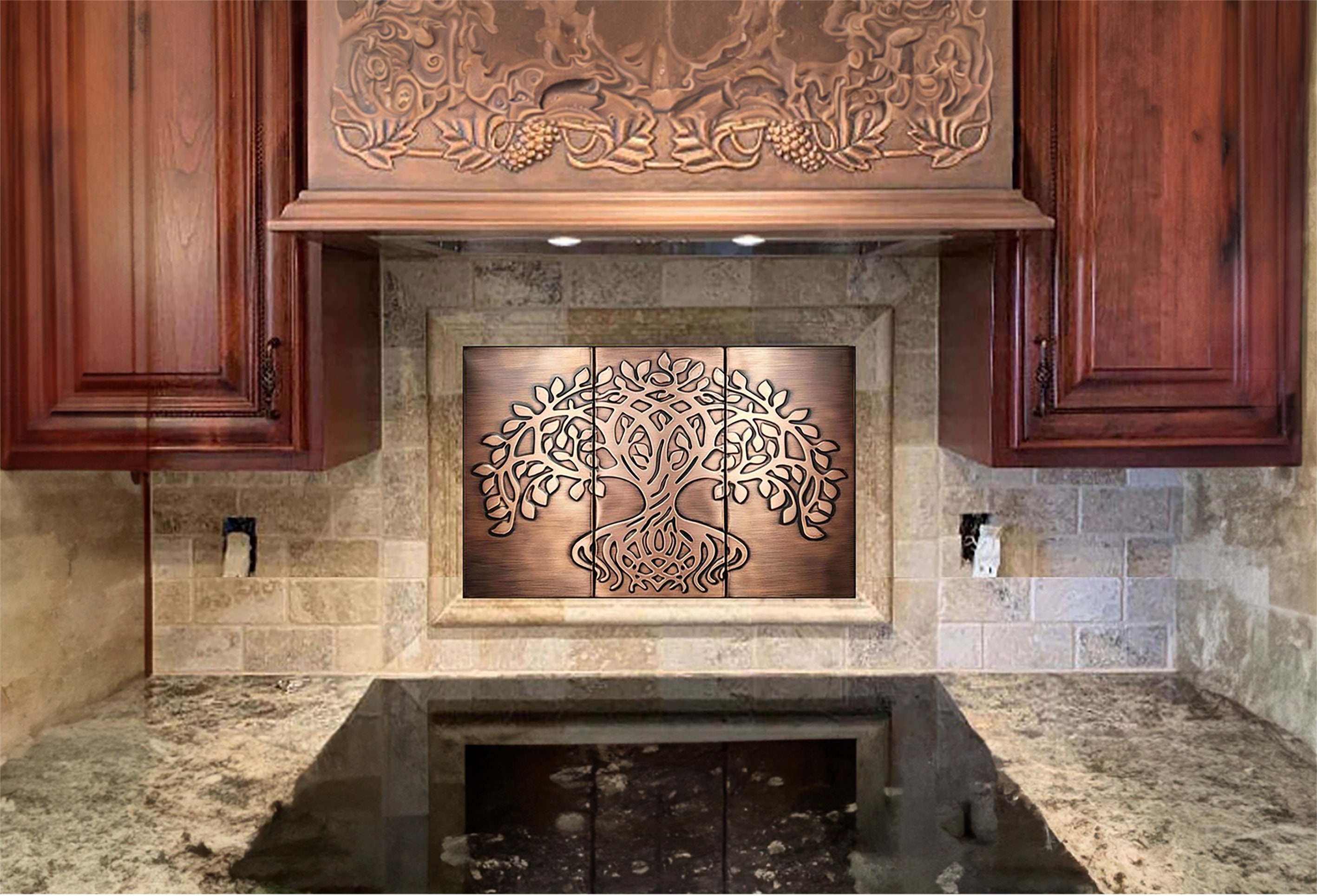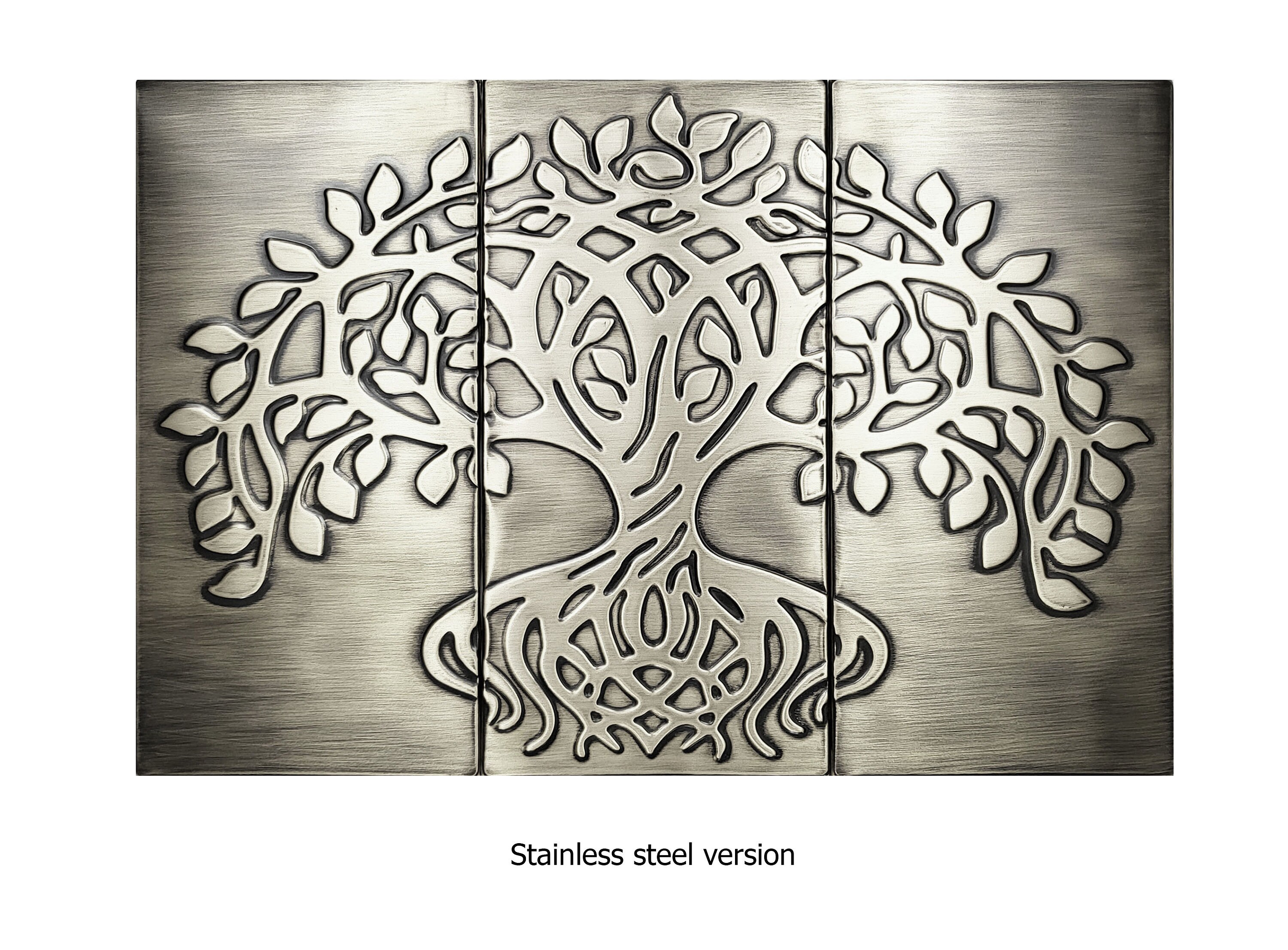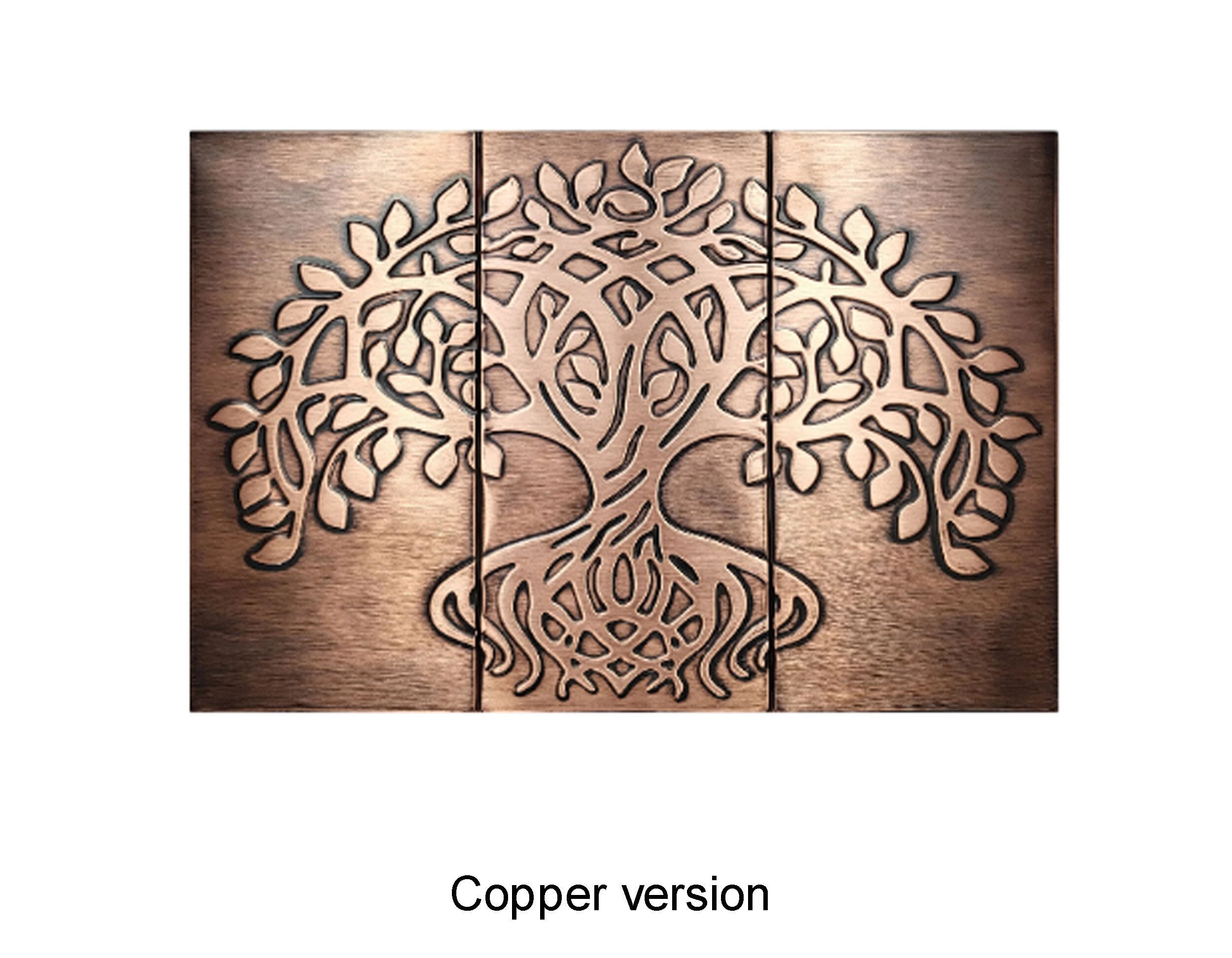 Bring a bold touch of Norse heritage into your home with this handmade Viking Tree of Life tile set – three solid copper panels engraved with intricately Celtic and rune-inspired patterns – perfect for lovers of mythology – the sacred Yggdrasil-inspired tree connects the nine realms and brings ancient energy into your kitchen, fireplace, or living space