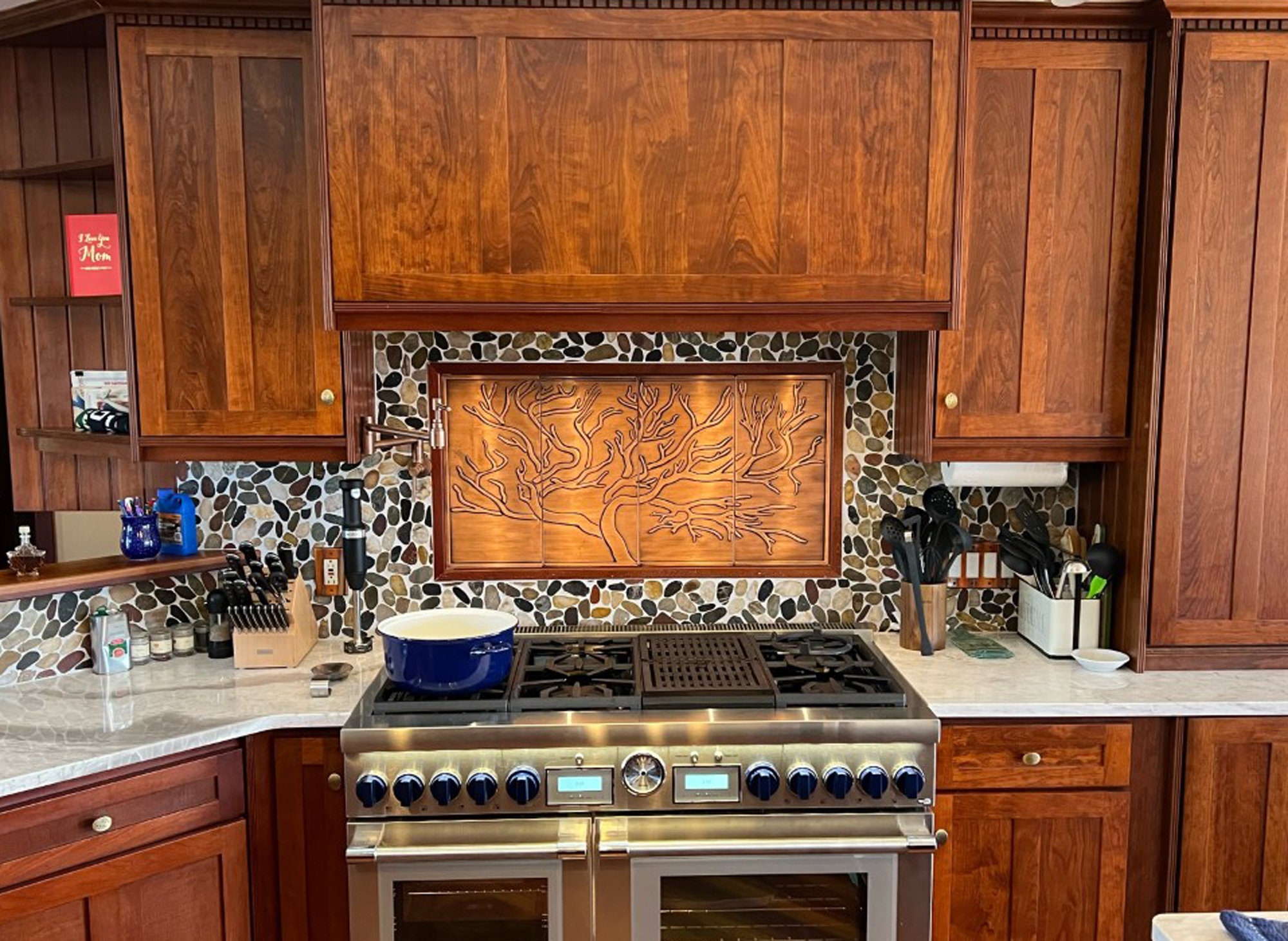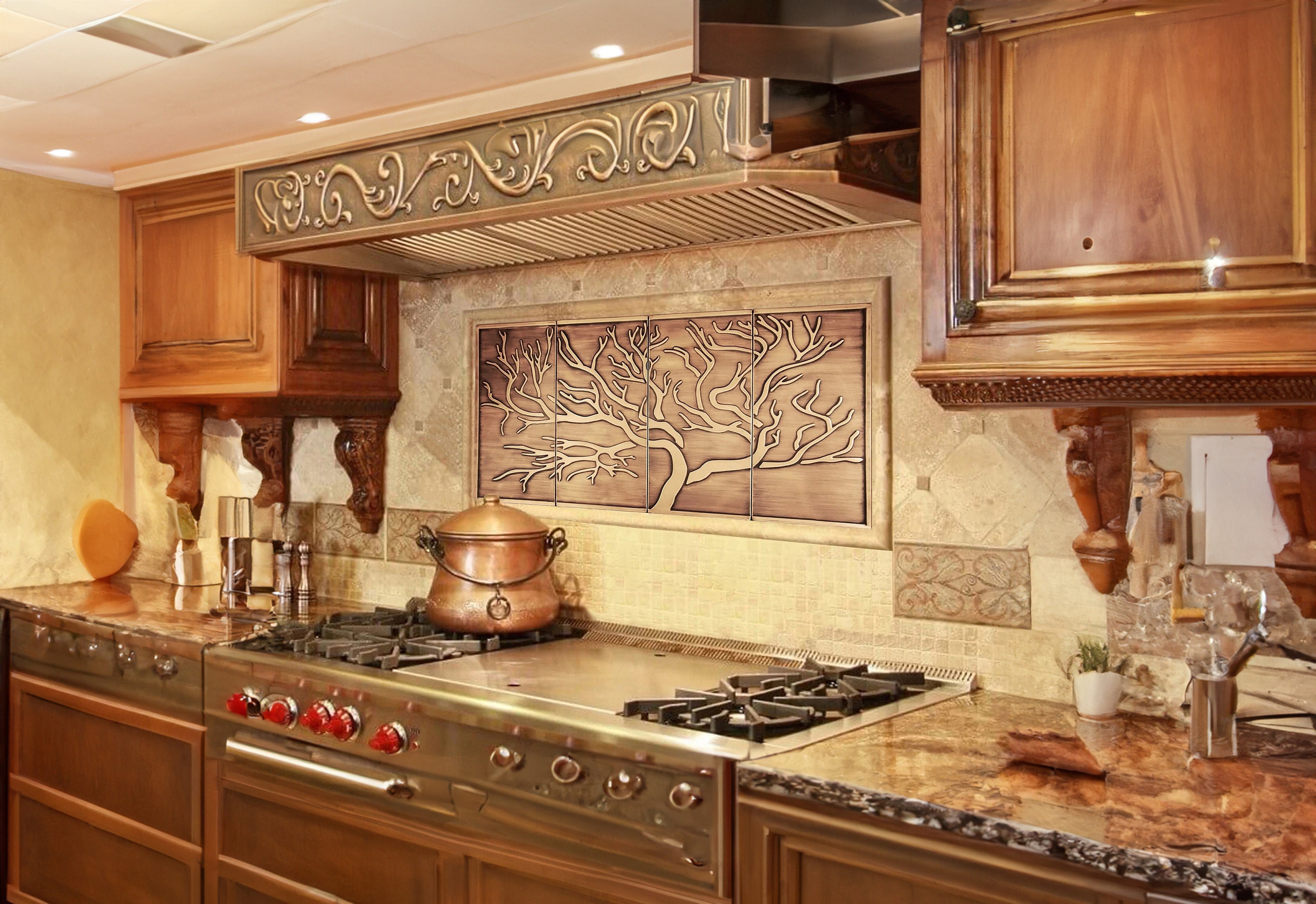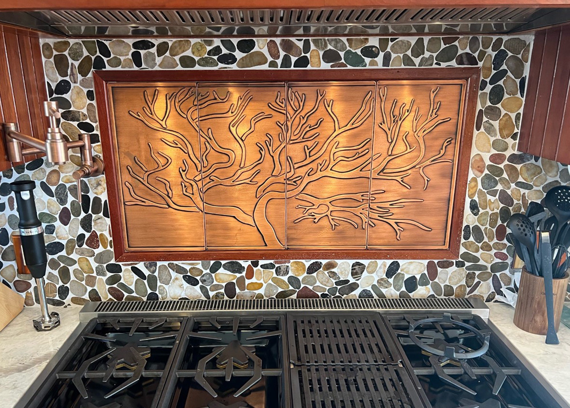 Tree of Life Copper Tile Wall Art – Set of 4 Handmade Tiles – Luxury Kitchen Backsplash for California Homes and Rustic Interiors
