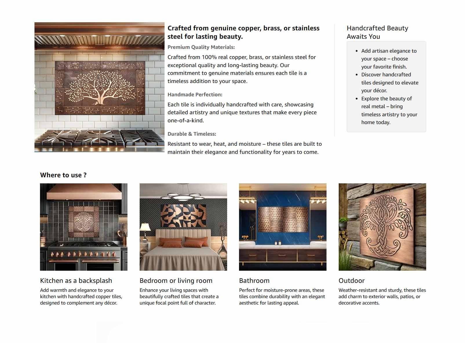 Turn your kitchen into a timeless masterpiece with our best-selling Tree of Life backsplash – handcrafted from real copper, stainless steel, or brass, and adored by 1000+ customers across the USA.