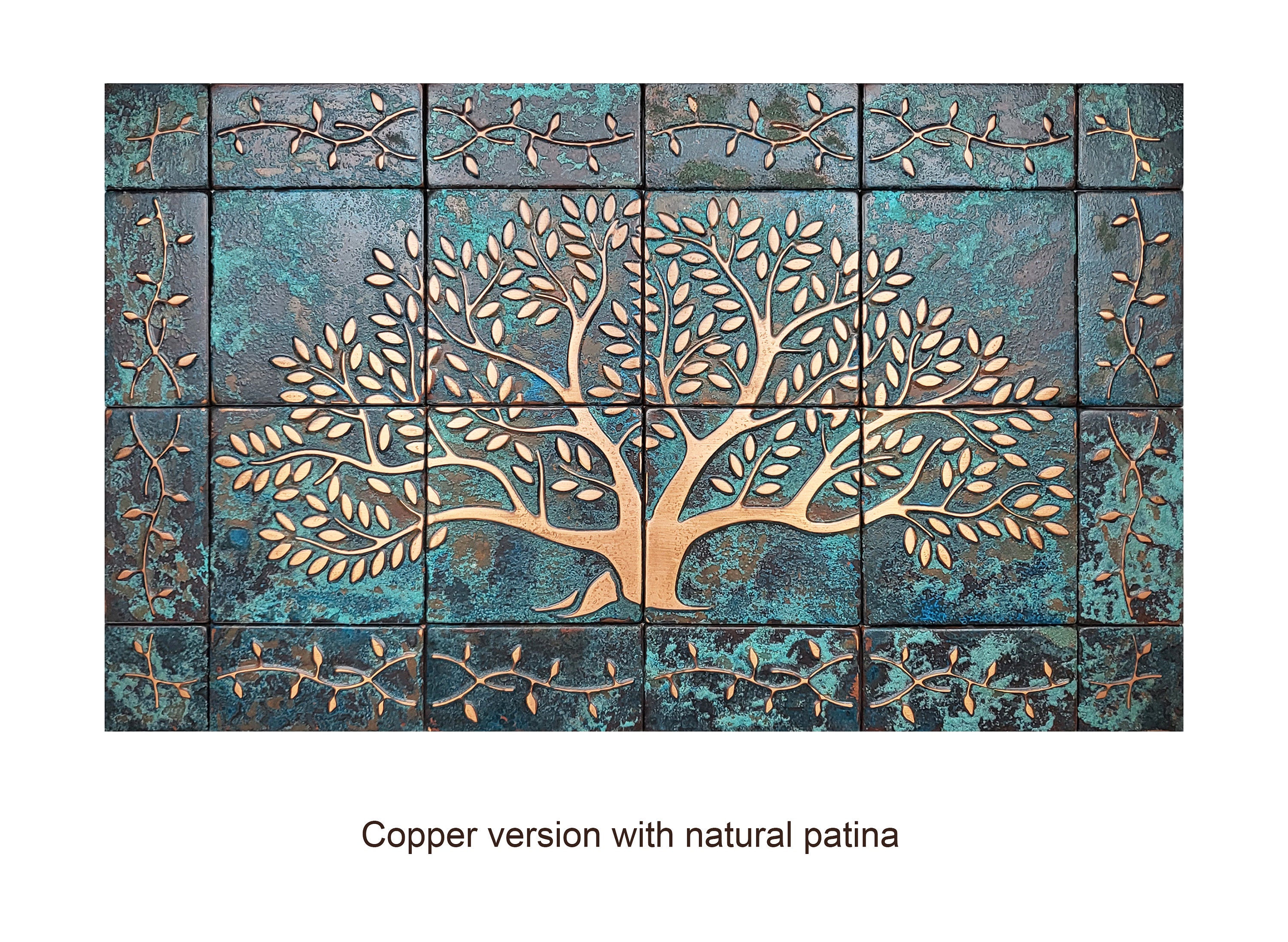 Most Loved Copper Tree of Life Backsplash in the USA – Handmade Real Metal Wall Art | Patina Tile Set for Kitchen Decor