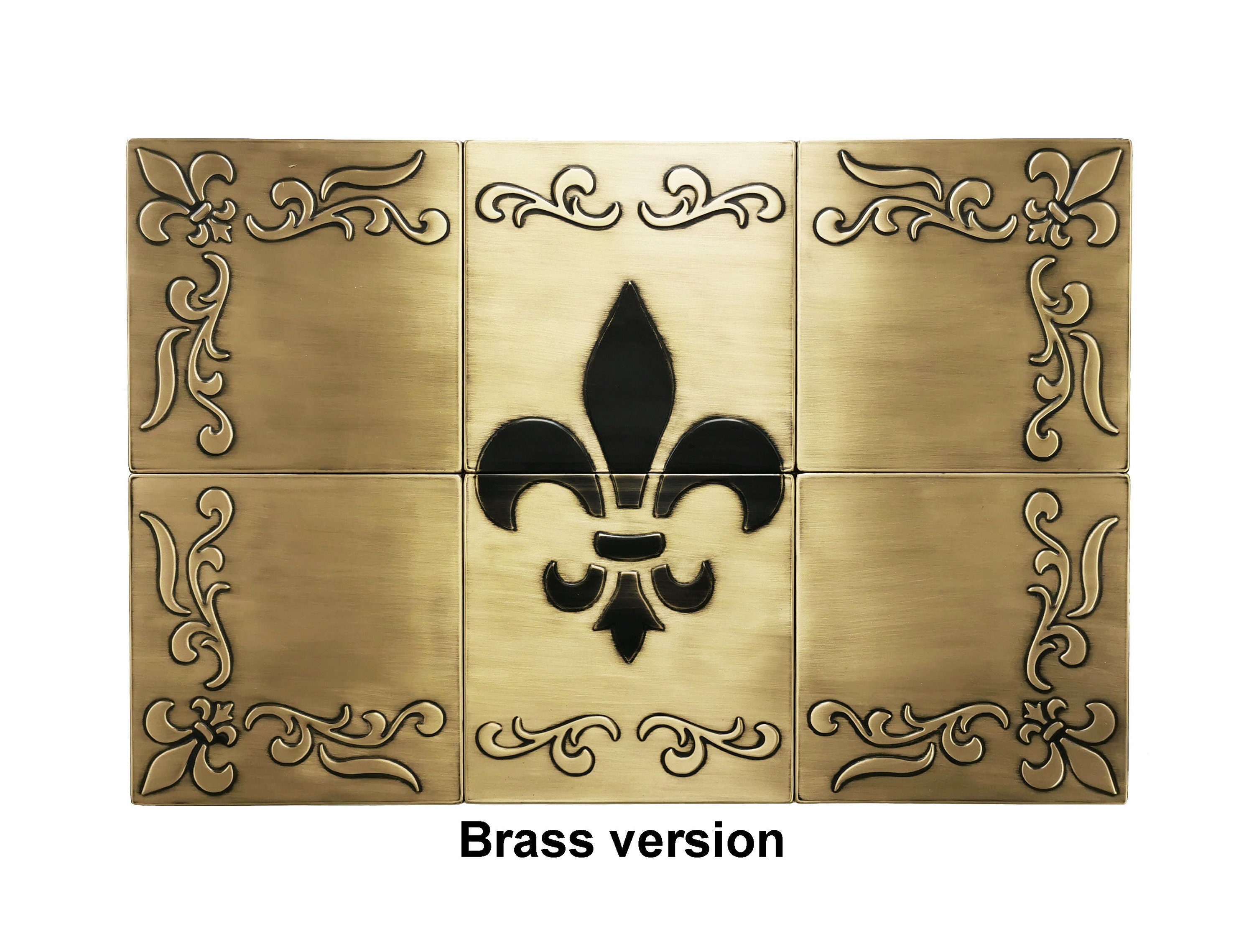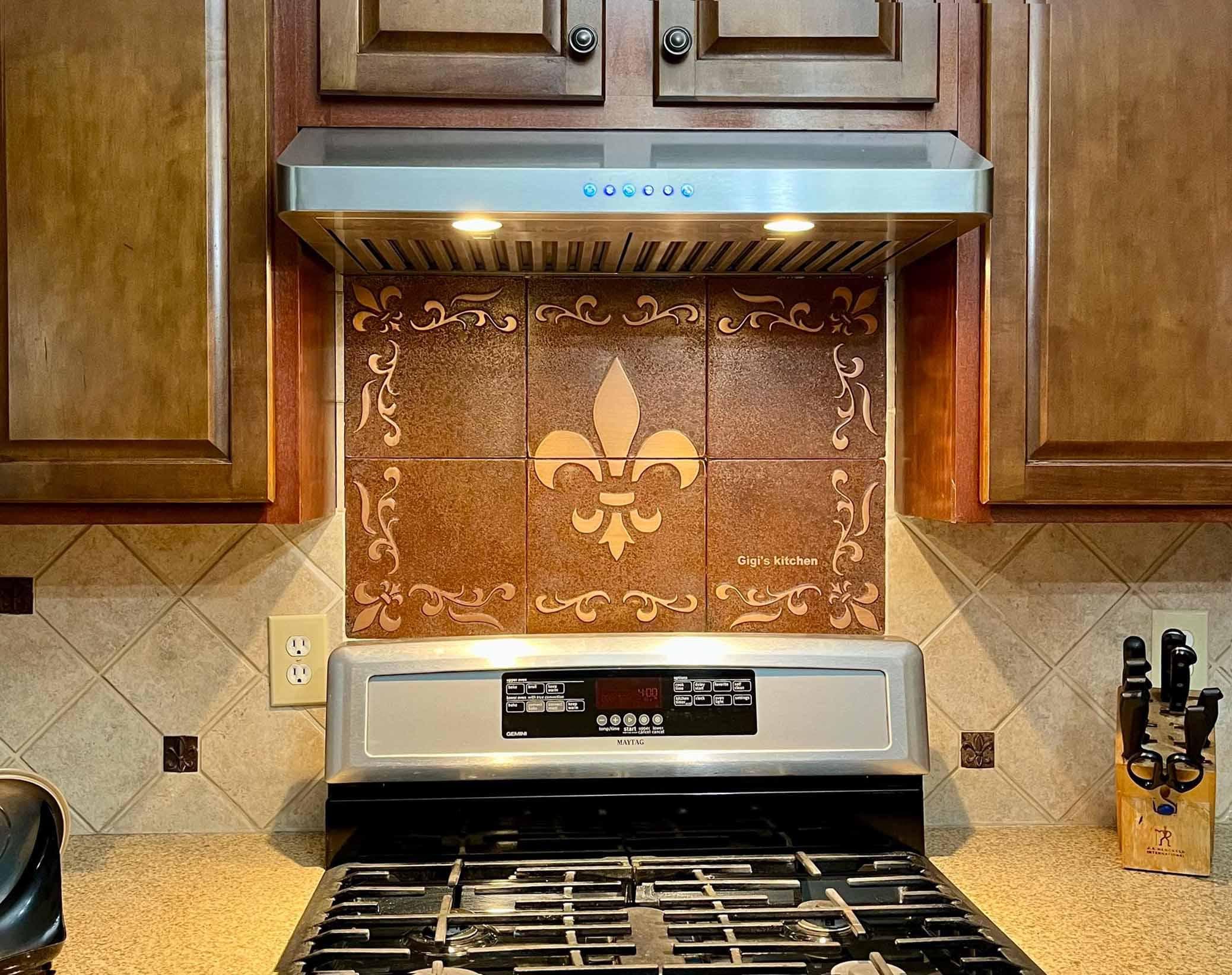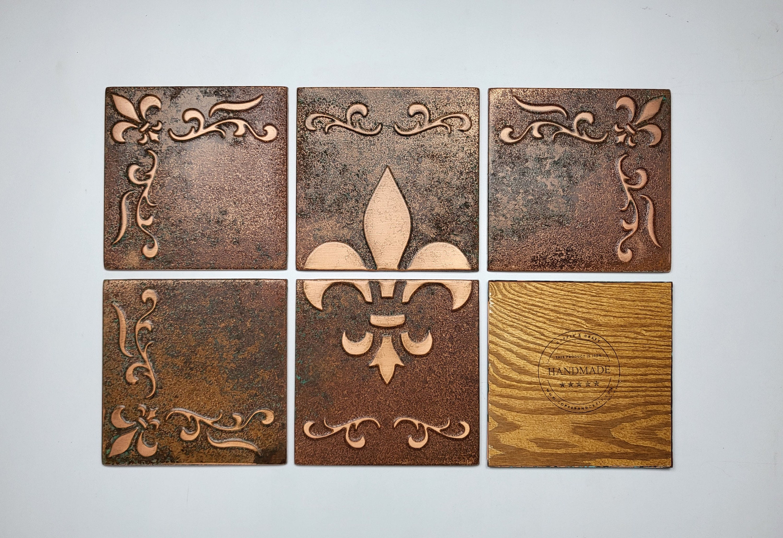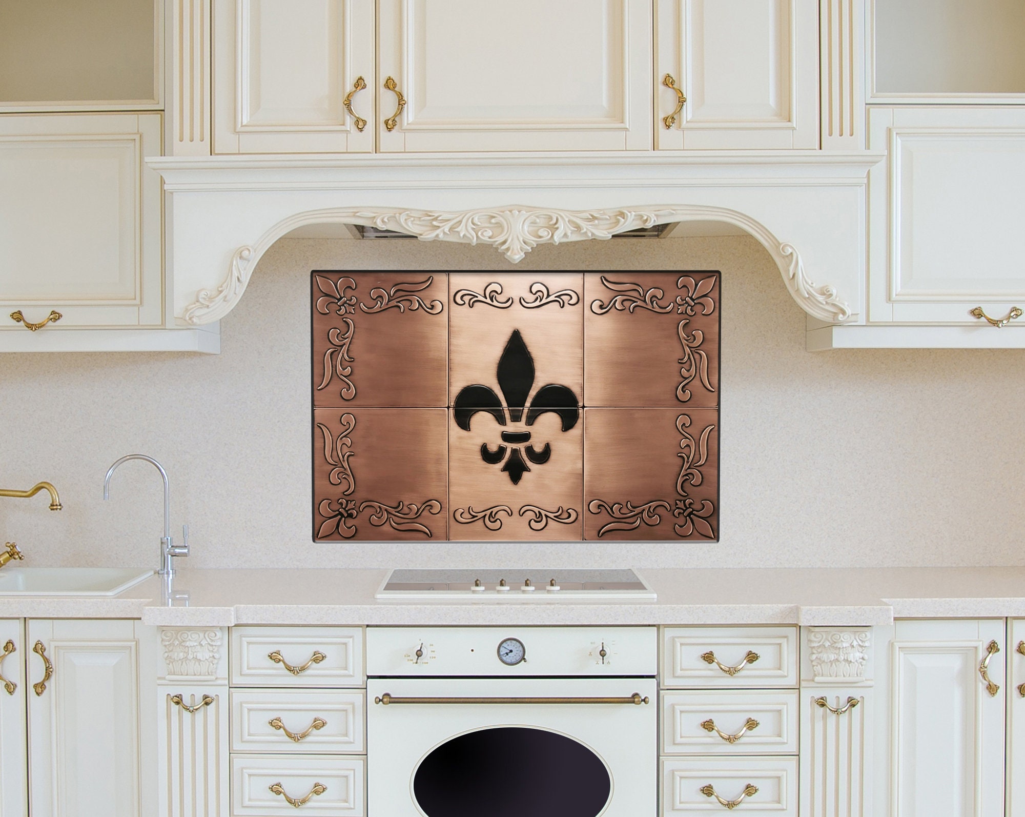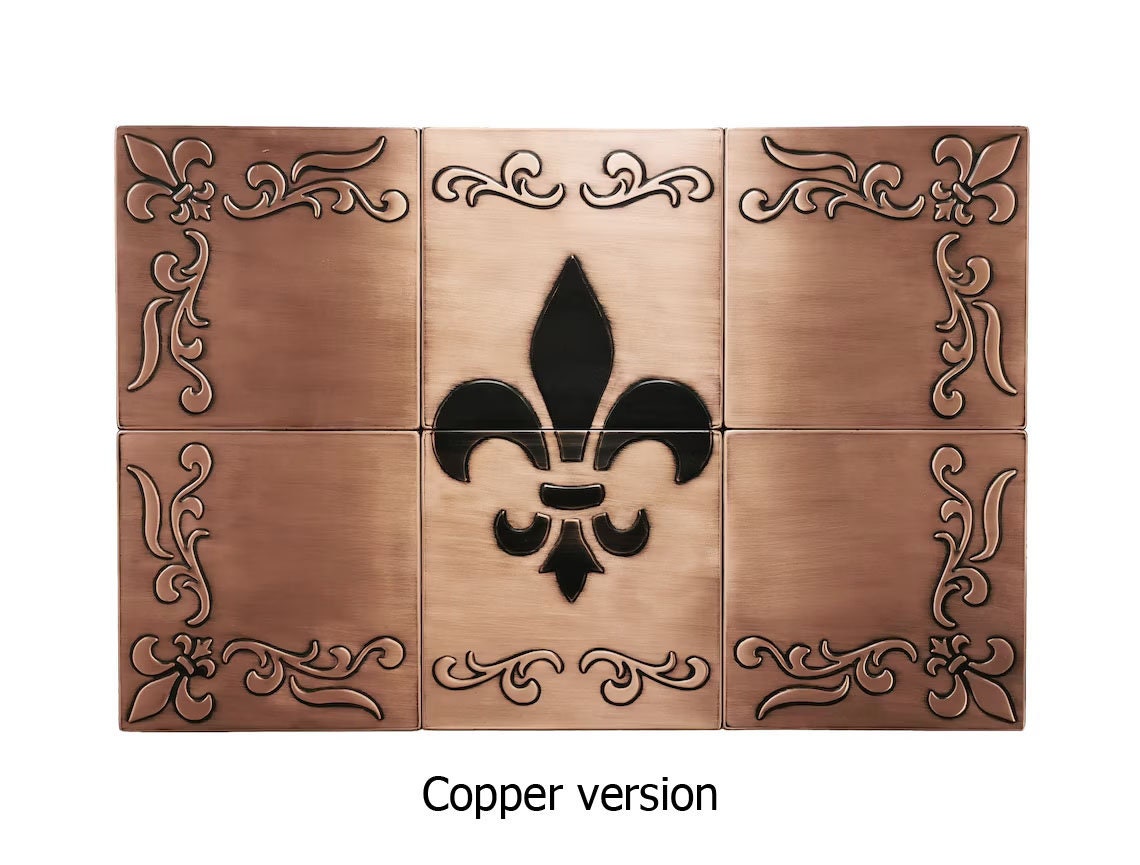 Fleur-de-Lis Copper Backsplash โ Handmade Real Metal Tile Set | French Style Kitchen Wall Art | Brass, Steel or Copper | USA Bestseller