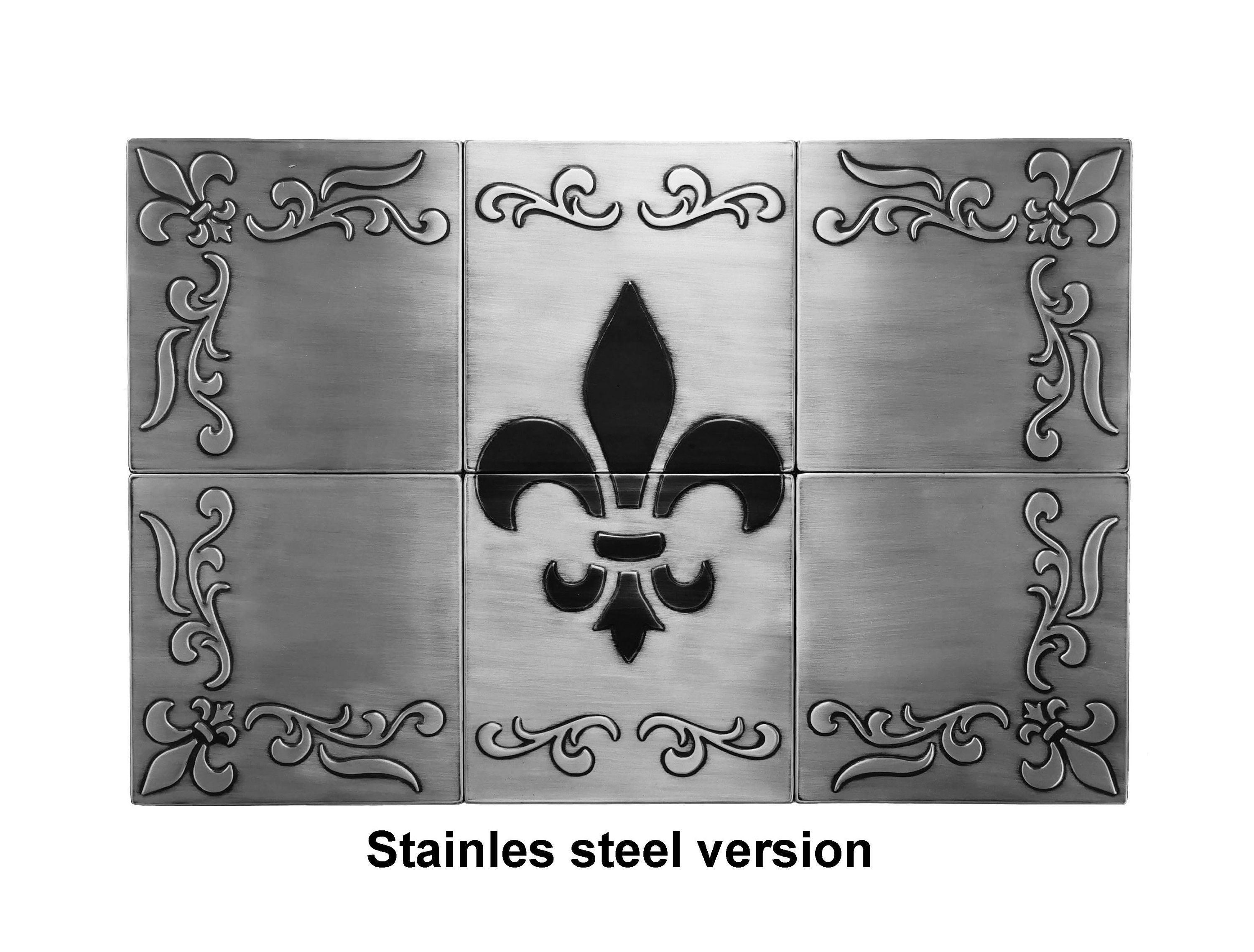 Celebrate classic beauty with this handmade Fleur-de-Lis backsplash โ crafted from real metal in your choice of copper, stainless steel, or brass. Inspired by European artistry, this wall tile set brings refined luxury to your kitchen.