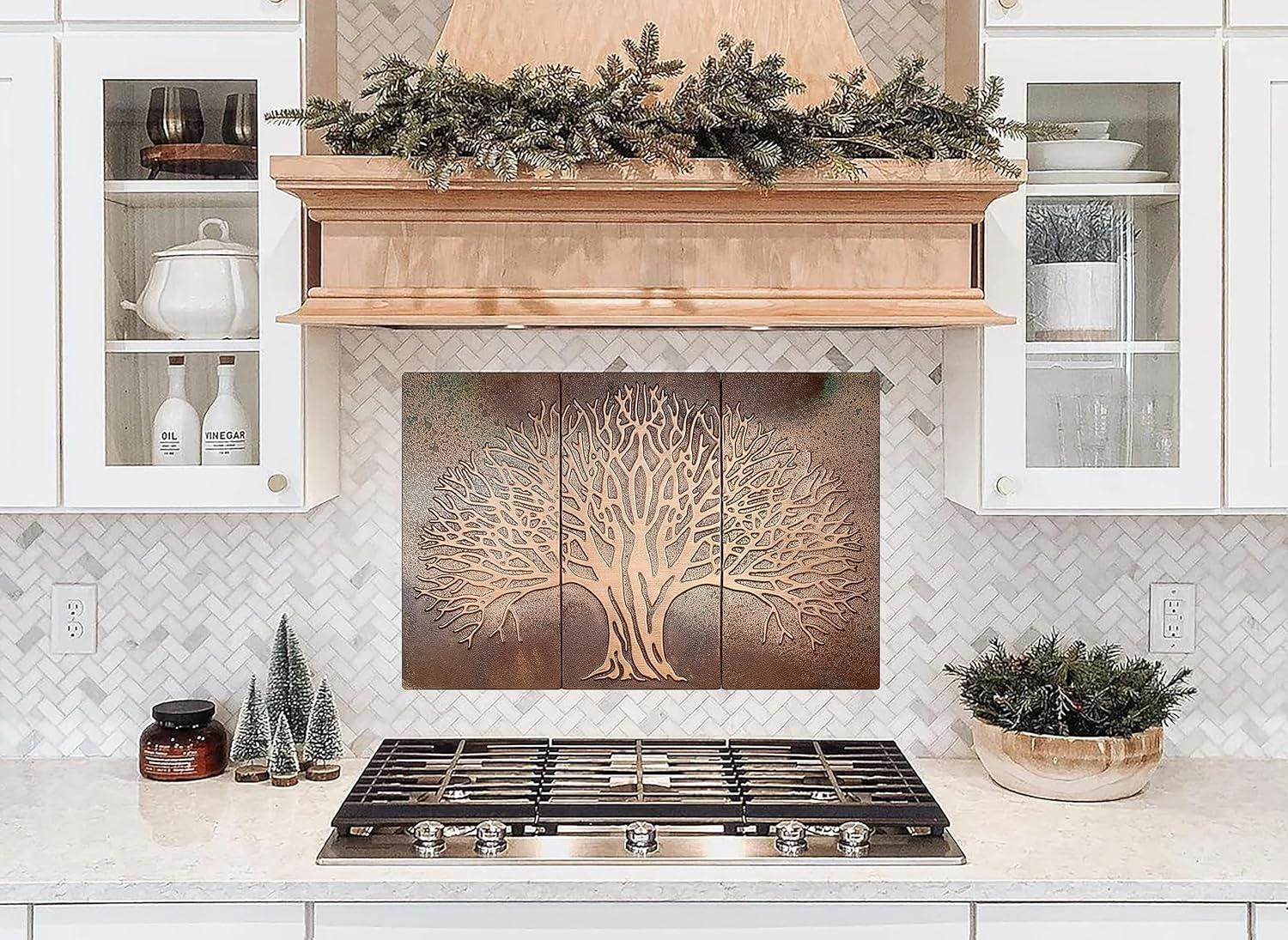 Most Loved Copper Tree of Life Backsplash β 3 Handmade Tiles | Artisan Wall Panel for Kitchen or Fireplace | Real Metal Β· Natural Patina